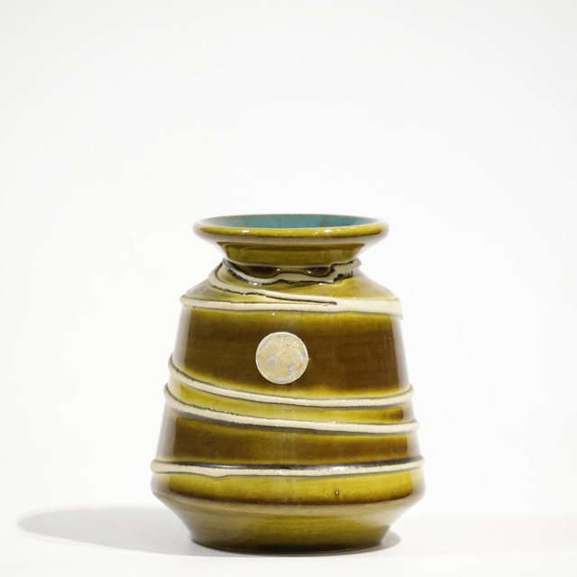 Ilkra 製。 口縁は外側にわずかに開き、短いネックから胴部へと段階的に広がっています。胴は中腹で最大径を取り、その下で再び絞られる安定したプロポーションになっています。 また、横方向に明確な段差とラインが設けられており、装飾との連動を前提にした設計になっています。 釉薬は黄味を帯びたオリーブブラウンを基調に、段ごとに濃淡のグラデーションがかかる構成で、流下による自然な境界ができています。 内側の深みのあるブルーグリーンがアクセントになっています。 サイズ:H;10cm, Top;φ5.9cm, Body;φ8.8cm, Bottom;φ5.9cm ————Ilkra について———— 1892 年にランスバッハ・バウムバッハの町でJacob Leo Knödgen によって設立されました。 これまでクレメンス氏とヒューン氏によるものとされていた品物は、実際には Jlkra 氏によるものであり、諸説では社名もJlkraと呼ばれています。 Ilkra は後に JLKnödgen となり、1995 年に Wilhelm Söndgen に売却され、「Knödgen Keramik」に改名された可能性があります。Ilkra (Jlkra) の名前は 1965 年以降使用されなくなりました。 ~~~~~購入の前に以下お読みください~~~~~ ※Bodyの寸法はハンドル部を含めない最大径で採寸しています。 ※ヴィンテージ品のため汚れや小さな擦り傷などがある場合があります。 ※弊社では総じて鑑賞用としてのご利用をオススメしています。取扱詳細は以下のURLをご参照下さい。 https://www.fatlava.net/p/00001 ※ご覧になられているメディア(スマートフォン・パソコン・タブレットなど)の環境や設定により、色調が実際とは多少異なる可能性がございます。 ※システム上【再入荷についてお問合せをする】というボタンが存在してしまいますが、基本的にお受けしておりません。ヴィンテージ品ということと、型違い・色違いなど相当数のバリエーションがあるので、全く同じものに出会う可能性が高くないことが理由です(もちろん、メーカーによって生産数が多いものについては、ほぼ同じ、というものが存在することもありますが、それも一つ一つで異なるため皆様に平等な対応ができないのです。。。。ごめんなさい。) その分、また新たに「これだ!」と思えるものをたくさん探していきますので、一期一会の出会いをお楽しみいただけたら幸いです。 ※資源の無駄を省くため梱包材の再利用にご協力ください。(ギフトなどの場合は仰せ下さい。) ※商業用でのテキストの無断転載・商品の無断転売はお控え下さい。 ※お客様都合での返品はお受けしておりません。 ※出荷まで約1週間頂戴しています。規定外出荷日のご希望やご相談はご購入の前に仰せ下さい。 ※佐川急便の荷物の保管期間は初回配達日を含む7日間ですのでお受け取りにはどうぞご留意くださいませ。なお、この期間を過ぎると荷物は着払いで弊社に返却されることになります。そういった場合には別途往復分(弊社戻り分+再度お送りする分)の送料をお支払いいただいた上で出荷させて頂きます。 ※発送手続き完了後のキャンセルにつきましては上記諸経費を差し引いた金額をご返金させていただきます。 ※複数購入の際、できる限り梱包をおまとめして配送致します。 その際送料に差分が生じた場合、クレジットでのお支払いの場合はこちらで減額させて頂きます。その他のお支払い方法をご選択の場合には、次回ご利用頂けるクーポンを発行しています。ご不明な点などございましたらご購入前にお問合せ下さい。 上記ご理解頂きました上でのご購入をお願いします。