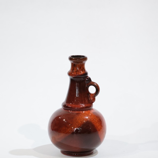 313で同じみのKurt Tschörnerがデザインを手がけたこちら。 こちらはマットなブロンズブラウンの釉薬で仕上げられた一品で、プリミティブな釉薬が特徴的です。 シンプルながらも凛とした存在感を放ち、空間の一角に静かに重みを与えてくれるクラシカルな作品です。 サイズ:H;18.5cm, Top;φ5.3cm, Body;φ12.3cm, Bottom;φ8.1cm ----------------------Ruschaについて------------------------- 大きな影響力のあるRuschaは、Georg Schardtによってラ インバッハに創設され、最初はKlein & Schardt、その後はSchardt&Söhne(シャルト&ズーネ)として知られていました。 Georgの次男であるRudolf Schardt(ルドルフ・シャルト)が1948年に同社を継いだ際、自身のファーストネームの最初の2文字を入れた 「R u s c h a」に社名を変更しました。 R u d o l fはイノ ベーターであると同時に実業家でもあり、1950 年代の陶器ブームへの参入も自身で統括しました。 1950年代前半はCilli Wörsdörfer(ツィリ・ ヴェルスデルファー)が 芸術作品部 門の責任者を務め、「Milano(ミラノ)」や「Zebra(ゼブ ラ)」のような手描きのデザインが有名であっ た。1959年には、1951年から生産部門の責任者を務めたOtto Gerharz(オットー・ゲルハル ツ)がVulkano釉薬を考案した。Gerharzは、自 身で起業するべくRuschaを離れるまで、他に も多くの革新的な釉薬を作り出した。とりわけ Vulkano釉薬は形成される際に分水嶺を作り、 直線的なデザインから、滴り落ちるファッショナ ブルな釉薬のスタイルへと変化させる画期的 なものであった。 形状の多くはKurt Tschörner(クルト・チェル ナー/1912-1987)がデザインしたもので、有 名な「313」の水差しも、1954年に発表された 革新的な新シリーズに含まれていた。その他の 著名デザイナーとしては、1958~61年にErnst Borens(エルンスト・ボレンス)、1950年代半ば にHans Welling(ハンス・ヴェリンク)、Adele Bolz(アディーレ・ボルツ)などがいた。このう ちBolzは、1959~60年にかけて「Filigran(線 条細工)」シリーズと壁掛け用の飾り板のデザ インを手掛け、1950年代の典型的なスタイル からの脱却に寄与した。またHeinz Siery(ハ インツ・ジーリー)は1967~96年までデザイン の責任者を務め、1970年代にはJutta Johanni (ユッタ・ヨハンニ)もいくつかのデザインを制作した。 本体部分には赤または白の粘土が使用され、 マークには3桁の型番に続き、時にスラッシュを 挟んでサイズ表記が型押しされている。サイズ には1(最小)から6(最大)までの段階がある。Ruschaが閉鎖した後、社名と多くのデザイ ナーはScheurich(シューリッヒ)に買収されたが、 Scheurichは今でも「Ruscha Art」というブランド名で、ヴィンテージに着想を得たデザイ ンを制作しています。 ~~~~~購入の前に以下お読みください~~~~~ ※Bodyの寸法はハンドル部を含めない最大径で採寸しています。 ※ヴィンテージ品のため汚れや小さな擦り傷などがある場合があります。 ※弊社では総じて鑑賞用としてのご利用をオススメしています。取扱詳細は以下のURLをご参照下さい。 https://www.fatlava.net/p/00001 ※ご覧になられているメディア(スマートフォン・パソコン・タブレットなど)の環境や設定により、色調が実際とは多少異なる可能性がございます。 ※システム上【再入荷についてお問合せをする】というボタンが存在してしまいますが、基本的にお受けしておりません。ヴィンテージ品ということと、型違い・色違いなど相当数のバリエーションがあるので、全く同じものに出会う可能性が高くないことが理由です(もちろん、メーカーによって生産数が多いものについては、ほぼ同じ、というものが存在することもありますが、それも一つ一つで異なるため皆様に平等な対応ができないのです。。。。ごめんなさい。) その分、また新たに「これだ!」と思えるものをたくさん探していきますので、一期一会の出会いをお楽しみいただけたら幸いです。 ※資源の無駄を省くため梱包材の再利用にご協力ください。(ギフトなどの場合は仰せ下さい。) ※商業用でのテキストの無断転載・商品の無断転売はお控え下さい。 ※お客様都合での返品はお受けしておりません。 ※出荷まで約1週間頂戴しています。規定外出荷日のご希望やご相談はご購入の前に仰せ下さい。 ※佐川急便の荷物の保管期間は初回配達日を含む7日間ですのでお受け取りにはどうぞご留意くださいませ。なお、この期間を過ぎると荷物は着払いで弊社に返却されることになります。そういった場合には別途往復分(弊社戻り分+再度お送りする分)の送料をお支払いいただいた上で出荷させて頂きます。 ※発送手続き完了後のキャンセルにつきましては上記諸経費を差し引いた金額をご返金させていただきます。 ※複数購入の際、できる限り梱包をおまとめして配送致します。 その際送料に差分が生じた場合、クレジットでのお支払いの場合はこちらで減額させて頂きます。その他のお支払い方法をご選択の場合には、次回ご利用頂けるクーポンを発行しています。ご不明な点などございましたらご購入前にお問