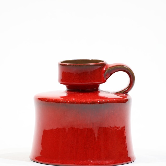 Graflich Ortenburgsche社製。 深みのある赤い釉薬が全面に施されており、シンプルでありながらも存在感のあるデザインが魅力です。モダンでスタイリッシュな雰囲気を持ち、お部屋のアクセントとして最適な一品です。 サイズ:H;18.5cm,Top;W6.8cm×D4.3cm+Handle,Body;W13.7cm×D11.1cm,Bottom;W12.8cm×D9.9cm ————Graflich Ortenburgscheについて———— コブルグ近郊のオルテンブルク伯爵の領地では、1939年に大規模な粘土質の堆積物が開発されました。これにより、Alram Graf zu Ortenburgは1946年にKeramische Werkstätten Graf Ortenburgを設立しました。工房はタンバッハ城の横の棟を拠点にしていました。 花器、フィギュア、実用陶器を製作しました。装飾は隣接する絵画工房で手作業で行われました。 1949年、工房はGräflich Ortenburgsche Steingutmanufakturと改名され、生産は花瓶や壁のプレートだけでなく、コーヒーや紅茶のサービスに切り替えられました。コストの都合上、手描きの作品は数点のみでした。 10年後、総じて現代的な形や装飾を一層重視するようになりました。 国際的に成功するために、チュニジアの彫刻家セバスティアーノ・ブチェッタやアメリカのデザイナー、アイリーン・パシンスキーなどの外国人デザイナーが採用されました。 にもかかわらず、1960年代の売り上げの落ち込みは免れなかった。遅くとも1968年までには自社生産を中止し、それ以降は海外メーカーの陶磁器製品(イタリアのエルネスティーヌ陶磁器を含む)のみを販売するようになりました。 ~~~~~購入の前に以下お読みください~~~~~ ※Bodyの寸法はハンドル部を含めない最大径で採寸しています。 ※ヴィンテージ品のため汚れや小さな擦り傷などがある場合があります。 ※弊社では総じて鑑賞用としてのご利用をオススメしています。取扱詳細は以下のURLをご参照下さい。 https://www.fatlava.net/p/00001 ※ご覧になられているメディア(スマートフォン・パソコン・タブレットなど)の環境や設定により、色調が実際とは多少異なる可能性がございます。 ※システム上【再入荷についてお問合せをする】というボタンが存在してしまいますが、基本的にお受けしておりません。ヴィンテージ品ということと、型違い・色違いなど相当数のバリエーションがあるので、全く同じものに出会う可能性が高くないことが理由です(もちろん、メーカーによって生産数が多いものについては、ほぼ同じ、というものが存在することもありますが、それも一つ一つで異なるため皆様に平等な対応ができないのです。。。。ごめんなさい。) その分、また新たに「これだ!」と思えるものをたくさん探していきますので、一期一会の出会いをお楽しみいただけたら幸いです。 ※資源の無駄を省くため梱包材の再利用にご協力ください。(ギフトなどの場合は仰せ下さい。) ※商業用でのテキストの無断転載・商品の無断転売はお控え下さい。 ※お客様都合での返品はお受けしておりません。 ※出荷まで約1週間頂戴しています。規定外出荷日のご希望やご相談はご購入の前に仰せ下さい。 上記ご理解頂きました上でのご購入をお願いします。