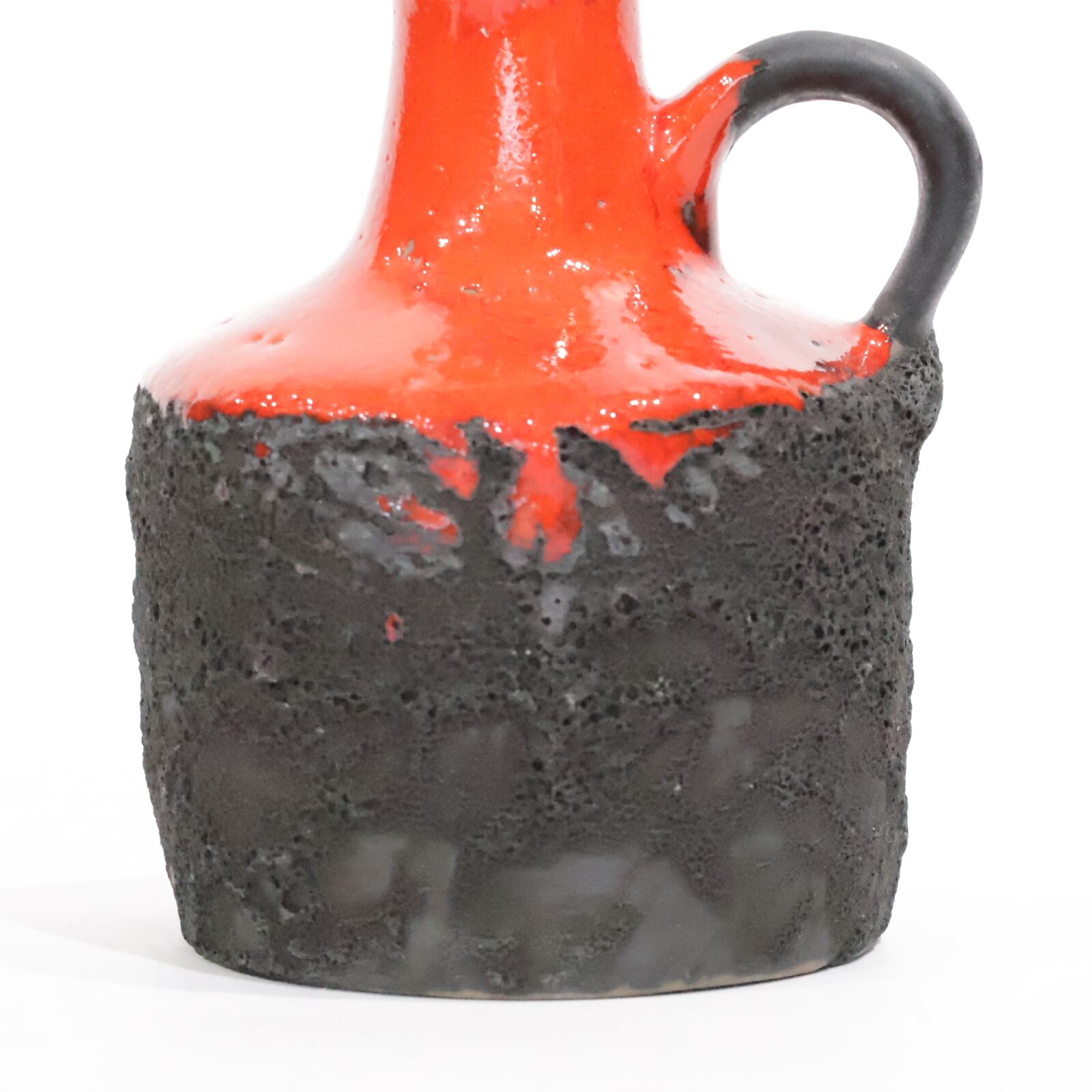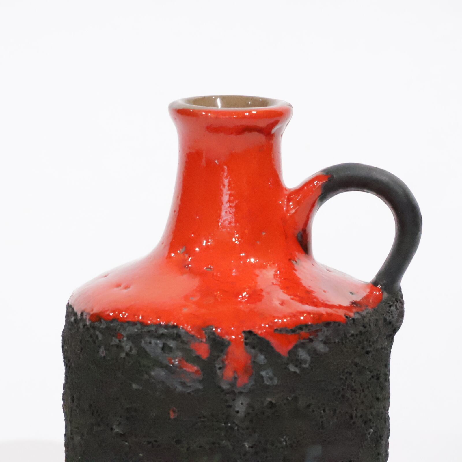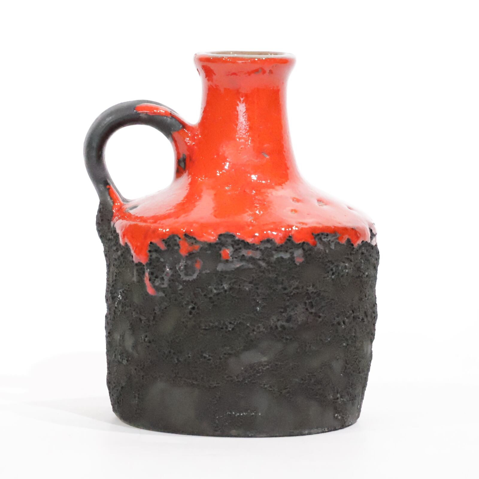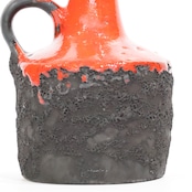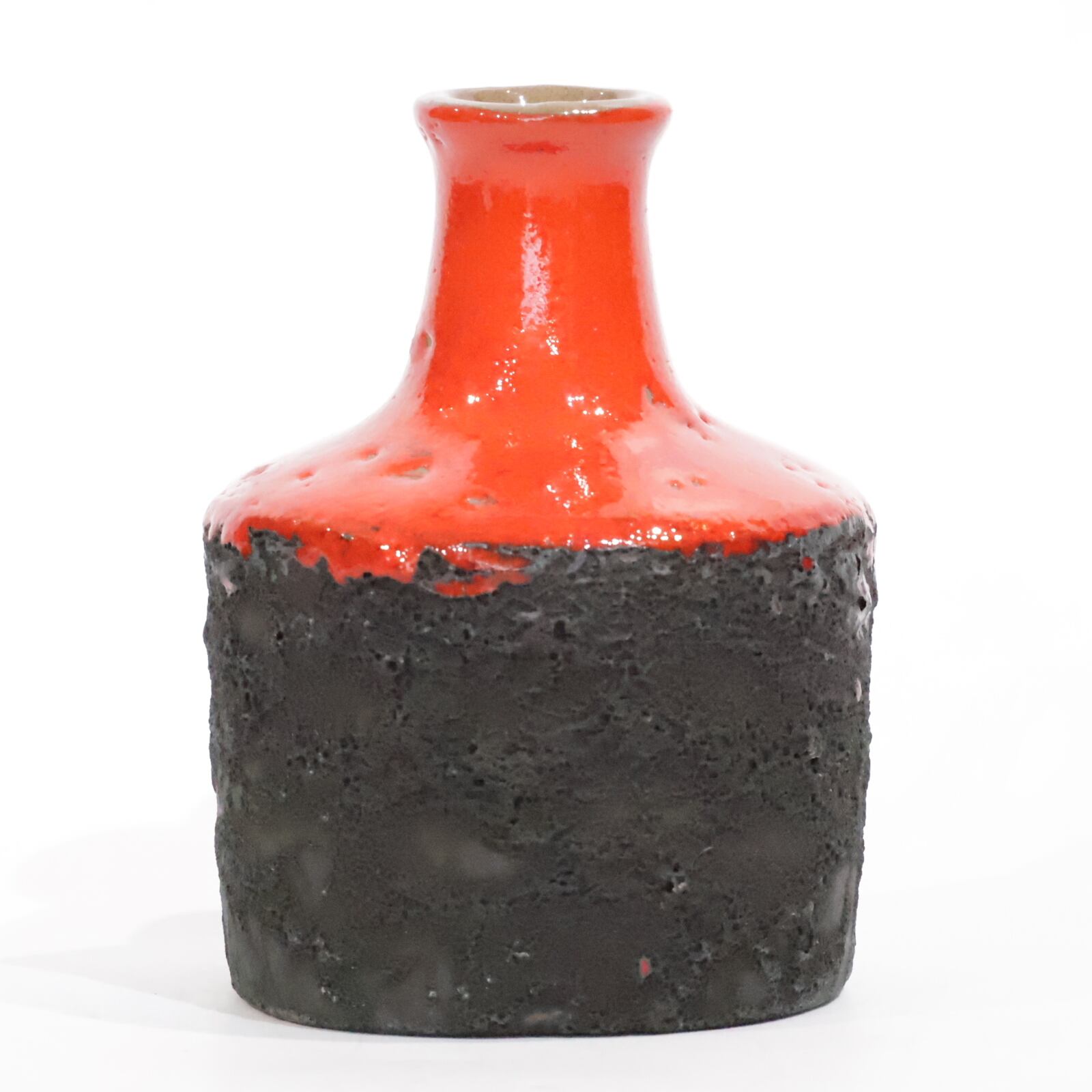 エナメルレッドの上に施された釉薬が冷えて固まった溶岩石のような質感を持ち、そのデザインと鮮やかな色合いが特徴的な花器が入荷しました。Mareiの代表的な釉薬を用いていますが、今回のように上下でこの釉薬を使い分けているのは少し珍しく、ユニークな表情をしていると思います。