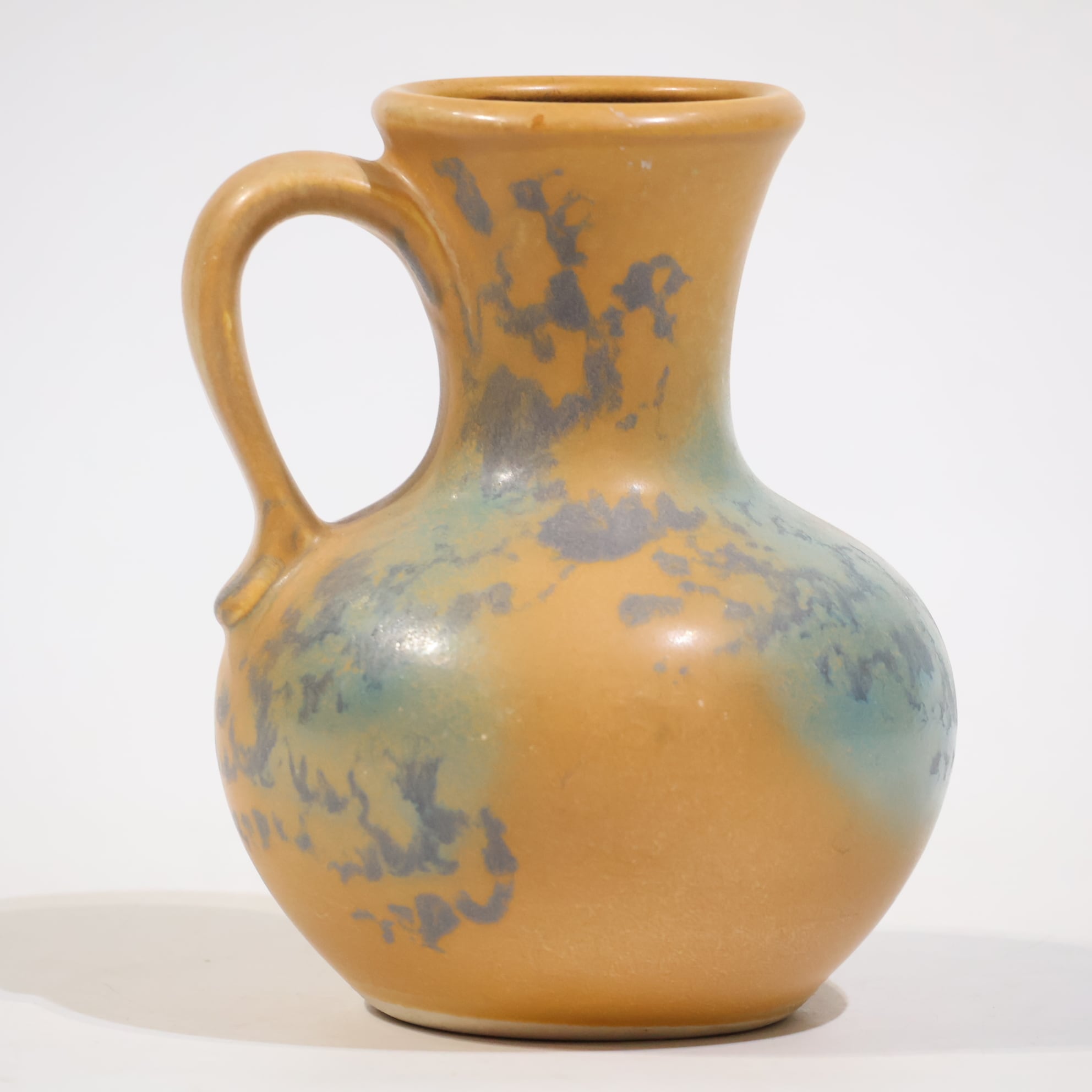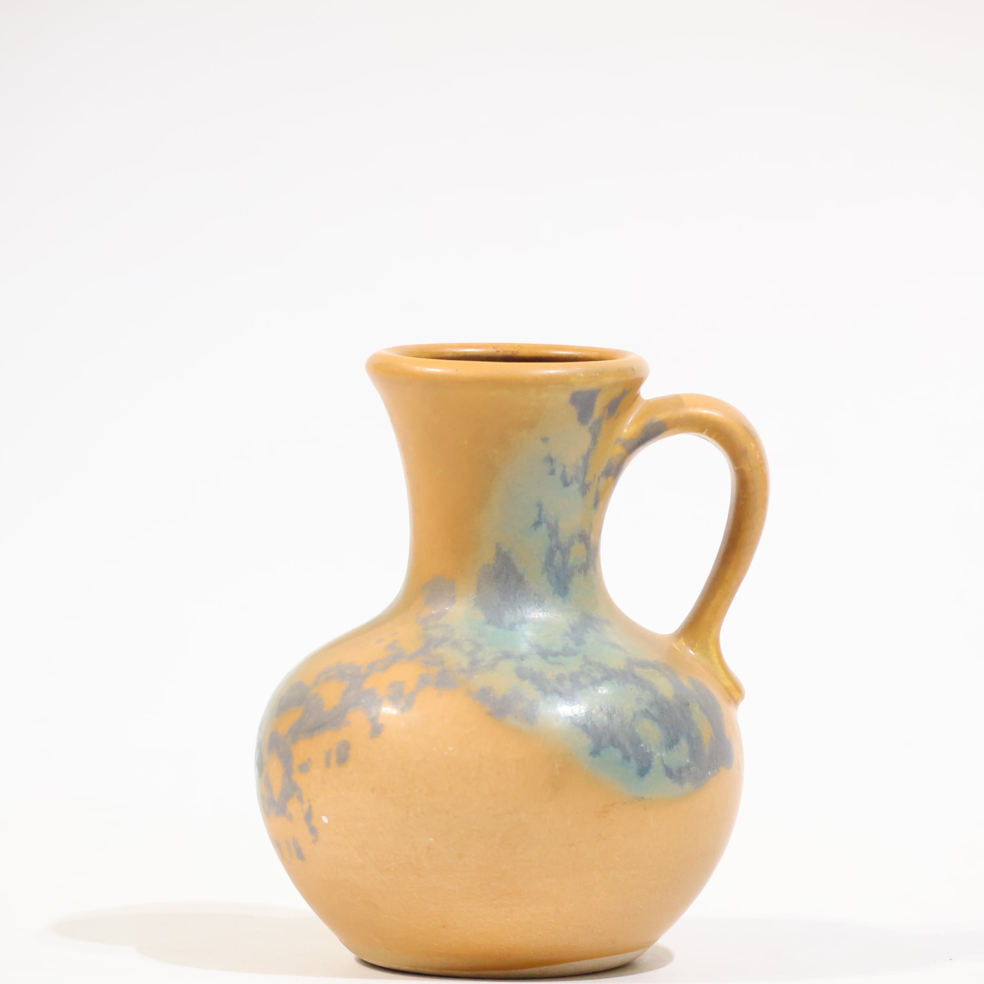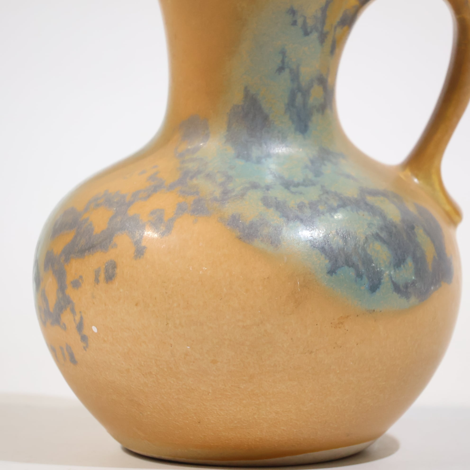 丸みのある胴から細く立ち上がるネック。口元はわずかに外へ開き、肩から繋がるハンドルは無理のない角度で収まっています。