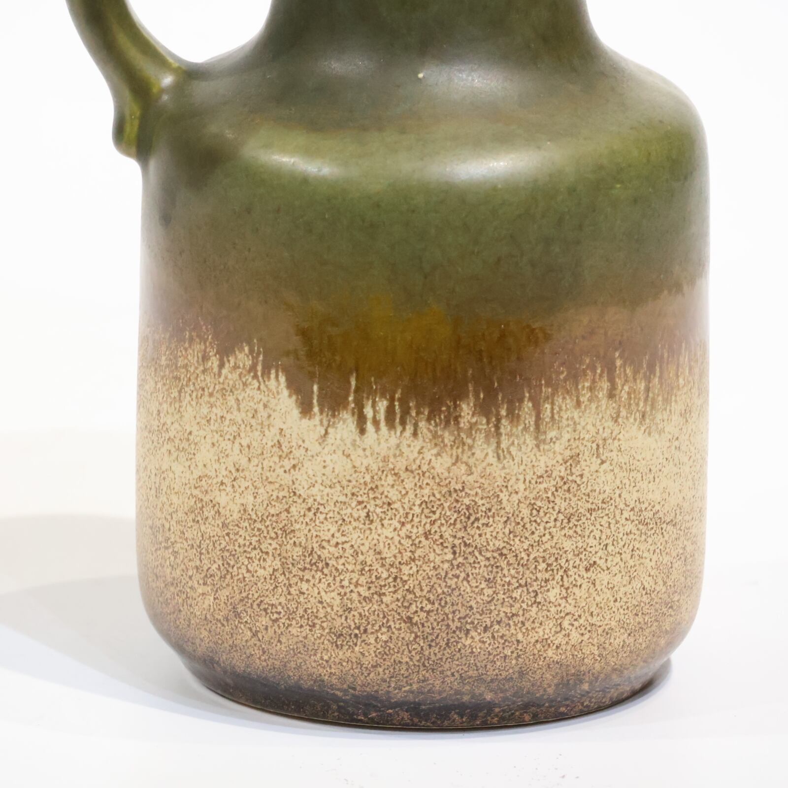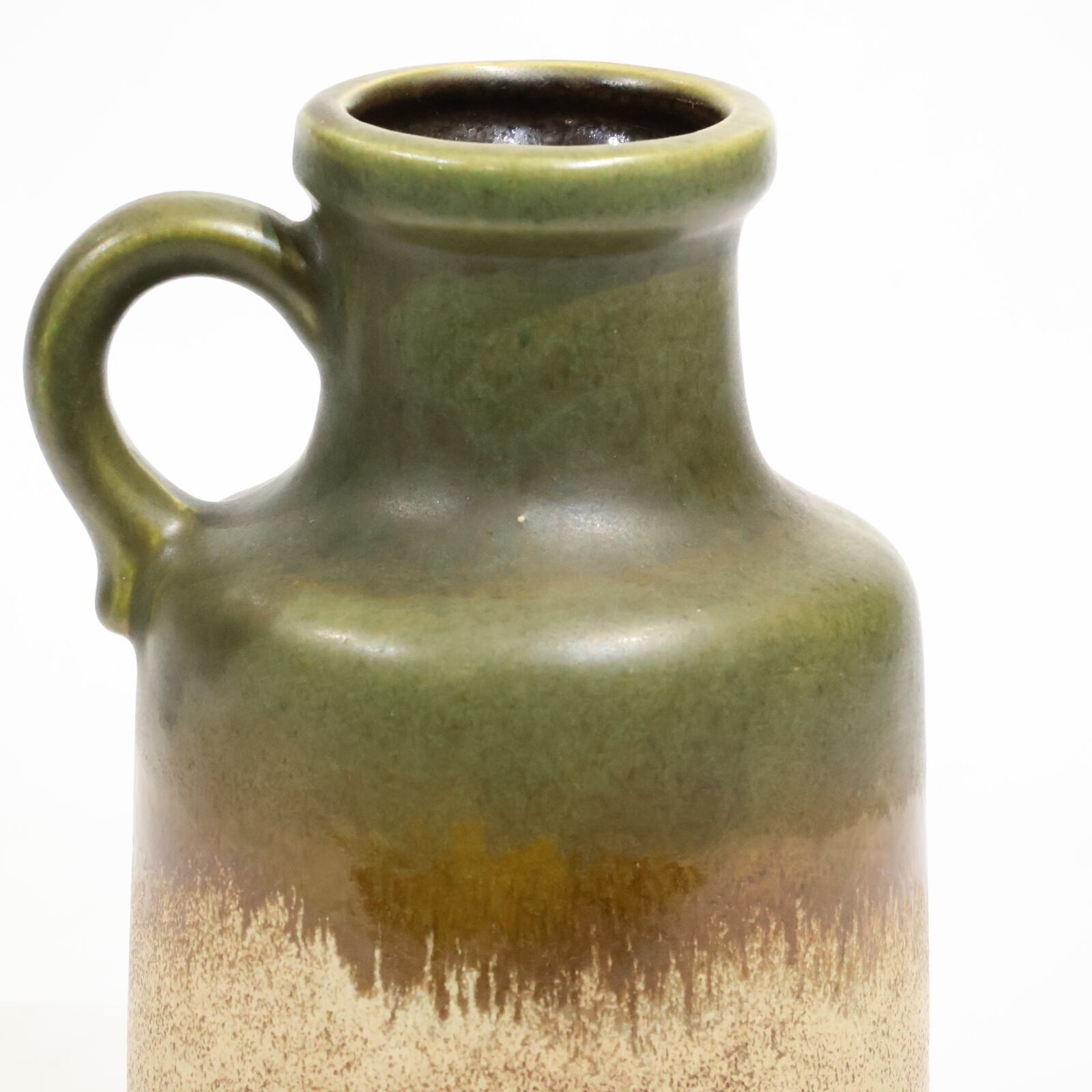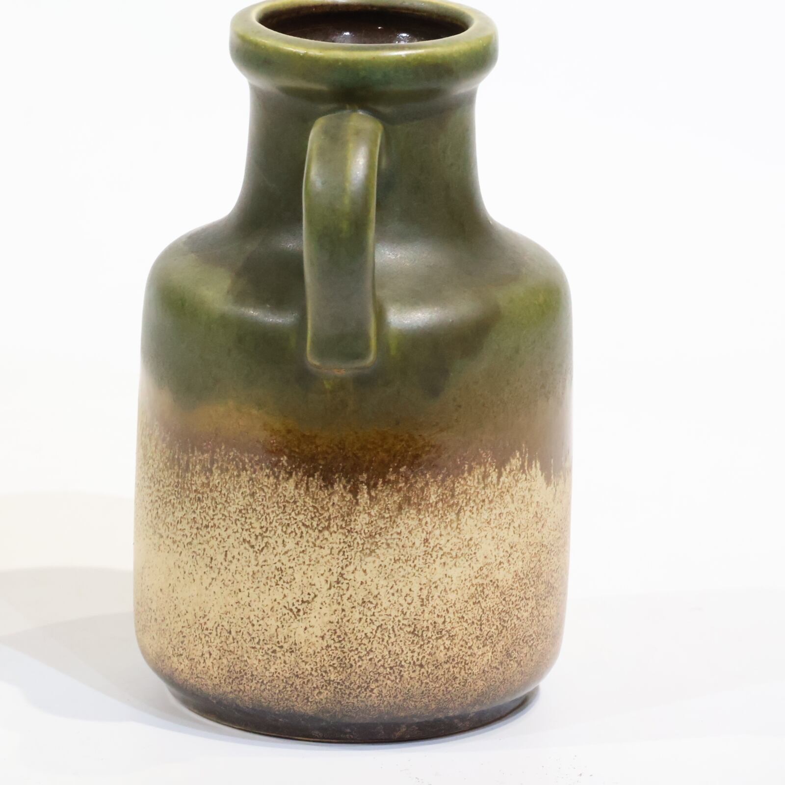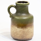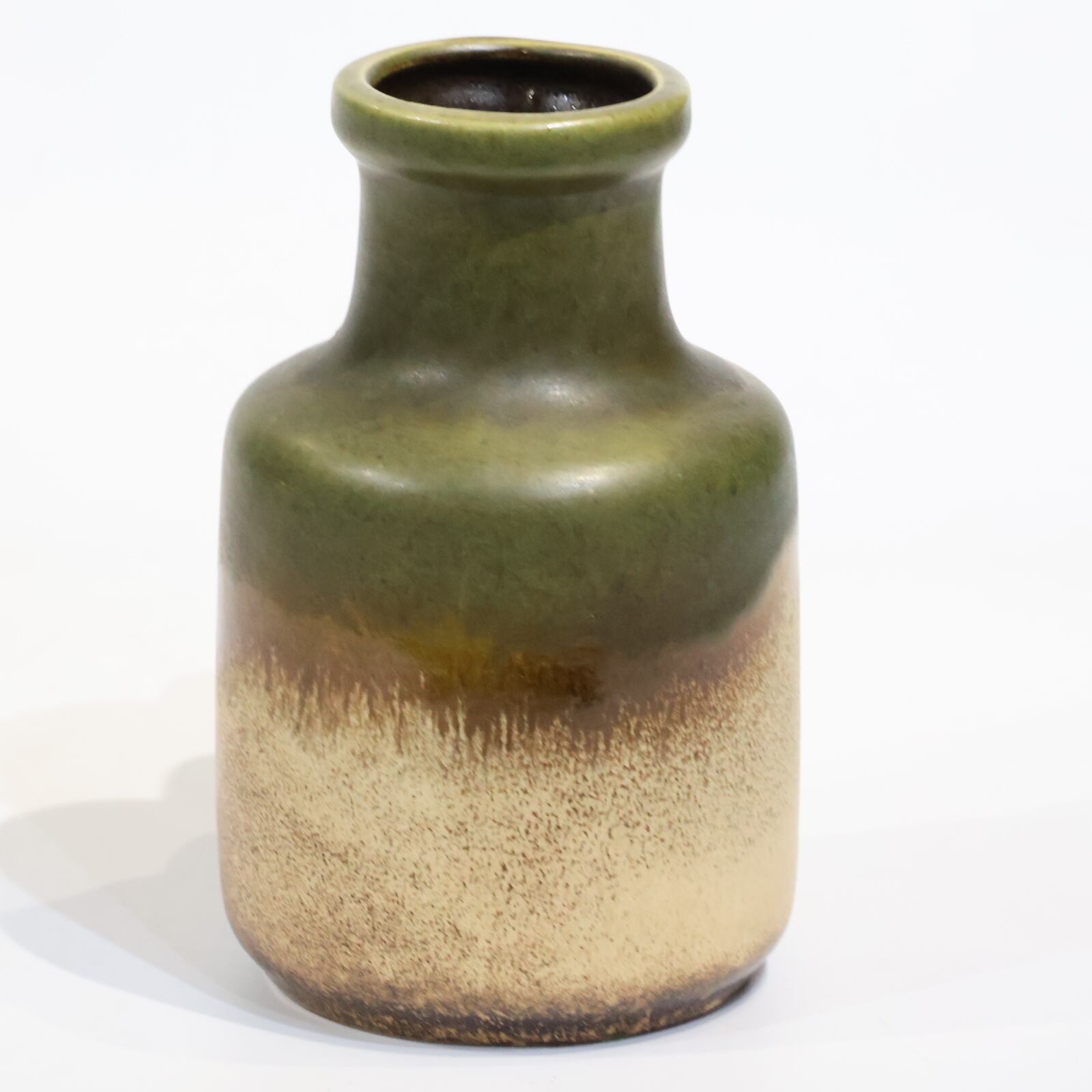 同社は急速に成長し、1950~80年代には陶 器製造の分野でドイツ最大のメーカーとなり、今日も確固たる地位を維持しています。形状に加えて釉薬でも、当時は最も幅広い品揃えを誇った他、輸出量も最大だったため、現在でも同社の製品はよく見られます。特に円筒形を基調にし たシンプルな形状で、型押し模様のある床置き 花瓶が代表的。色彩については当時主流だっ た赤やオレンジから、クリーム、ベージュ、茶色 などが多くを占めています。
