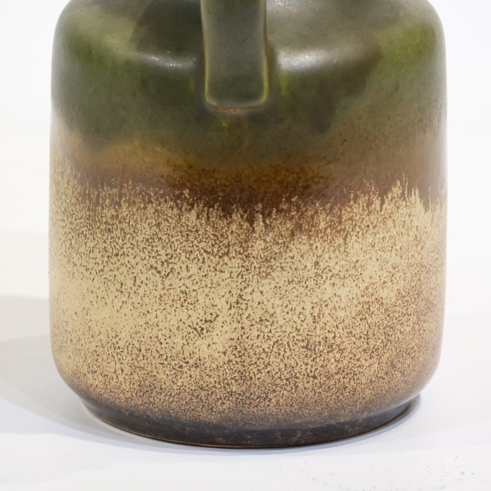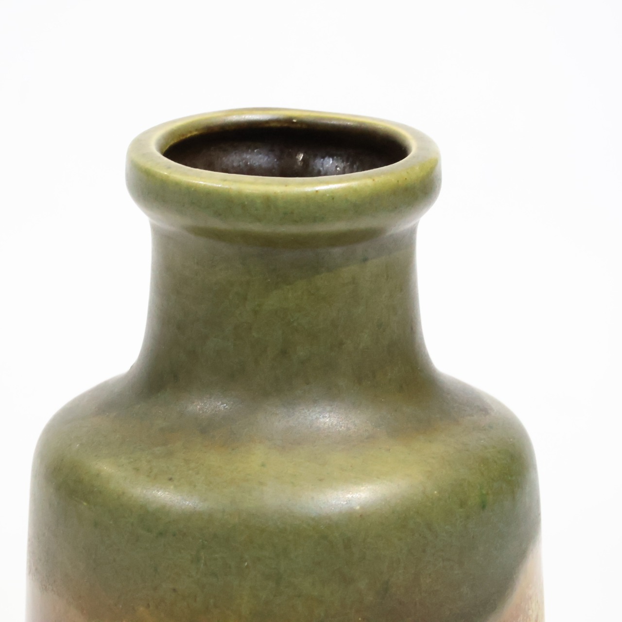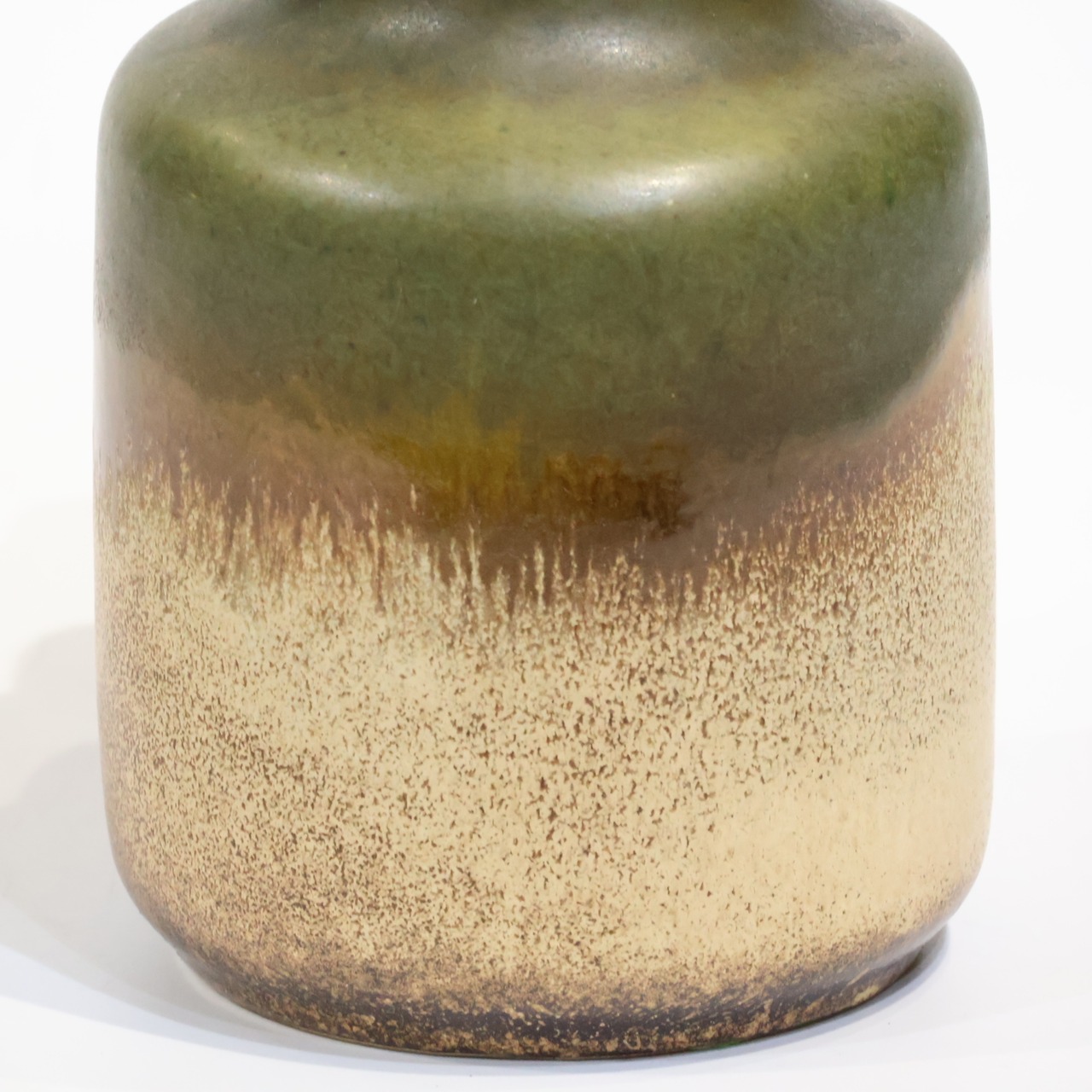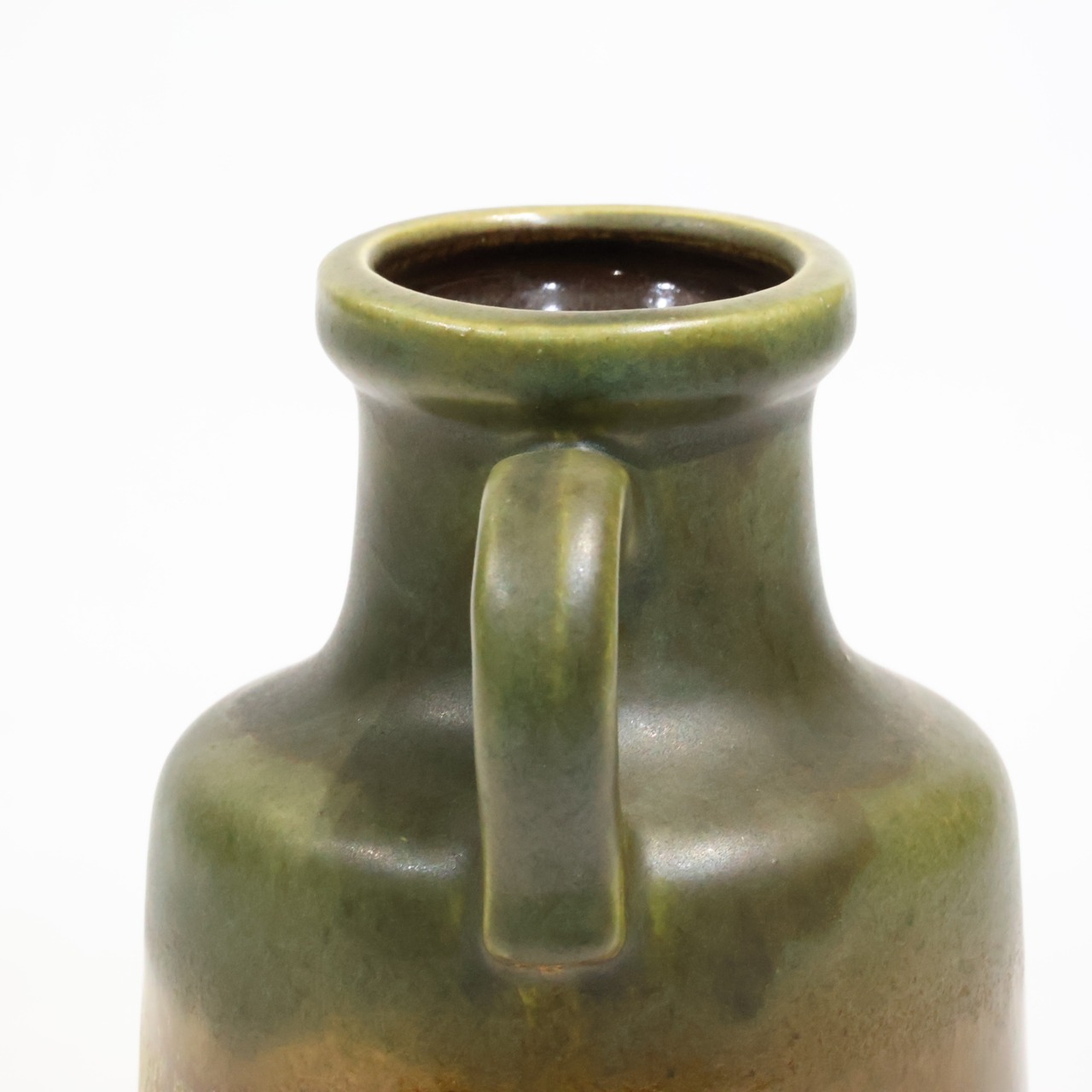 同社は急速に成長し、1950~80年代には陶 器製造の分野でドイツ最大のメーカーとなり、今日も確固たる地位を維持しています。形状に加えて釉薬でも、当時は最も幅広い品揃えを誇った他、輸出量も最大だったため、現在でも同社の製品はよく見られます。特に円筒形を基調にし たシンプルな形状で、型押し模様のある床置き 花瓶が代表的。色彩については当時主流だっ た赤やオレンジから、クリーム、ベージュ、茶色 などが多くを占めています。