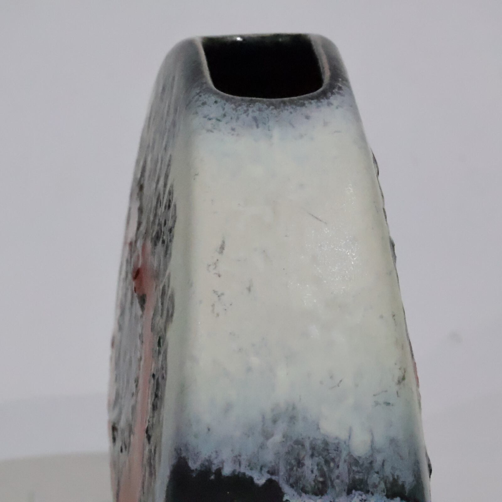 1960年代後半には一目で見分けがつく銅色の釉薬を開発し、ベージュの色調や泡状の滴る溶岩釉との組み合わせがよく用いられていました。