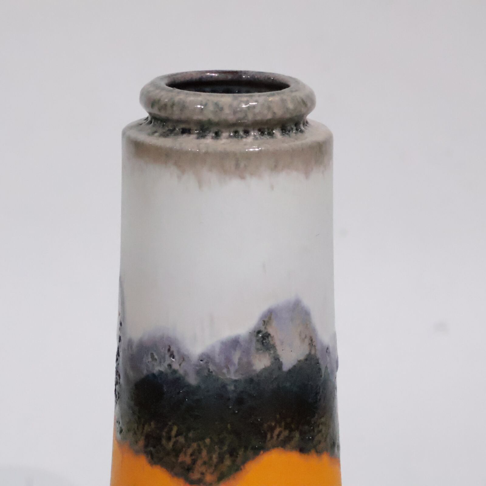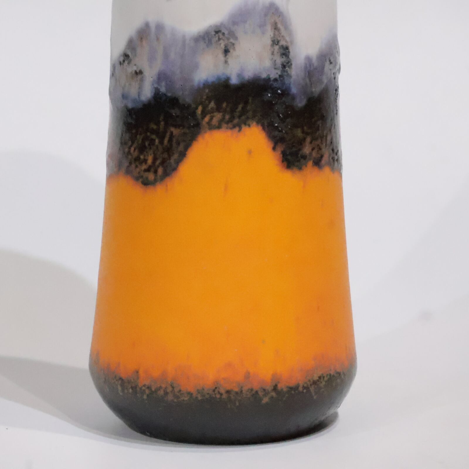 特に中央の黒釉は、溶岩のように溶け出す質感を持ちつつも、上下の釉薬と絶妙なバランスで融合しており、Scheurichが得意としたFat Lava的表現の中でも、静と動を併せ持つ作品です。