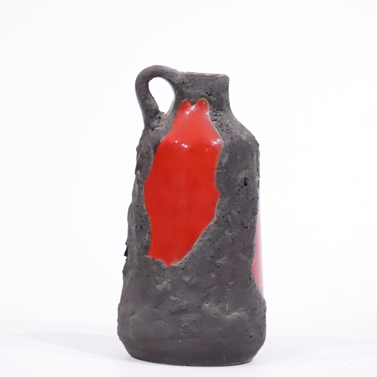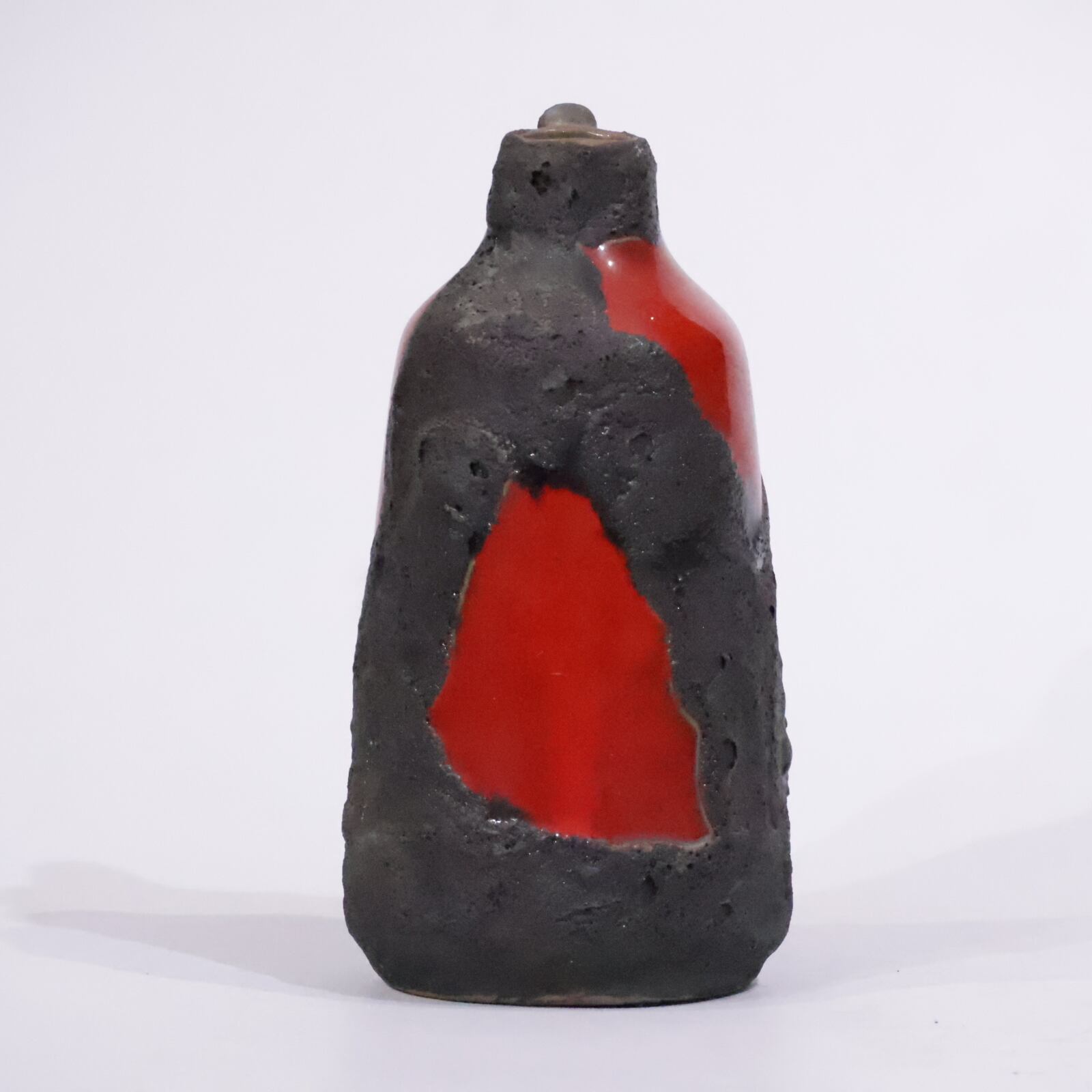 鮮やかなエナメルレッドの上に冷えて固まった溶岩石のような釉薬が施されています。一点ずつ釉薬の施され方に個性が出ていて、型別で集められたりもしているコレクターに人気のシリーズです。
