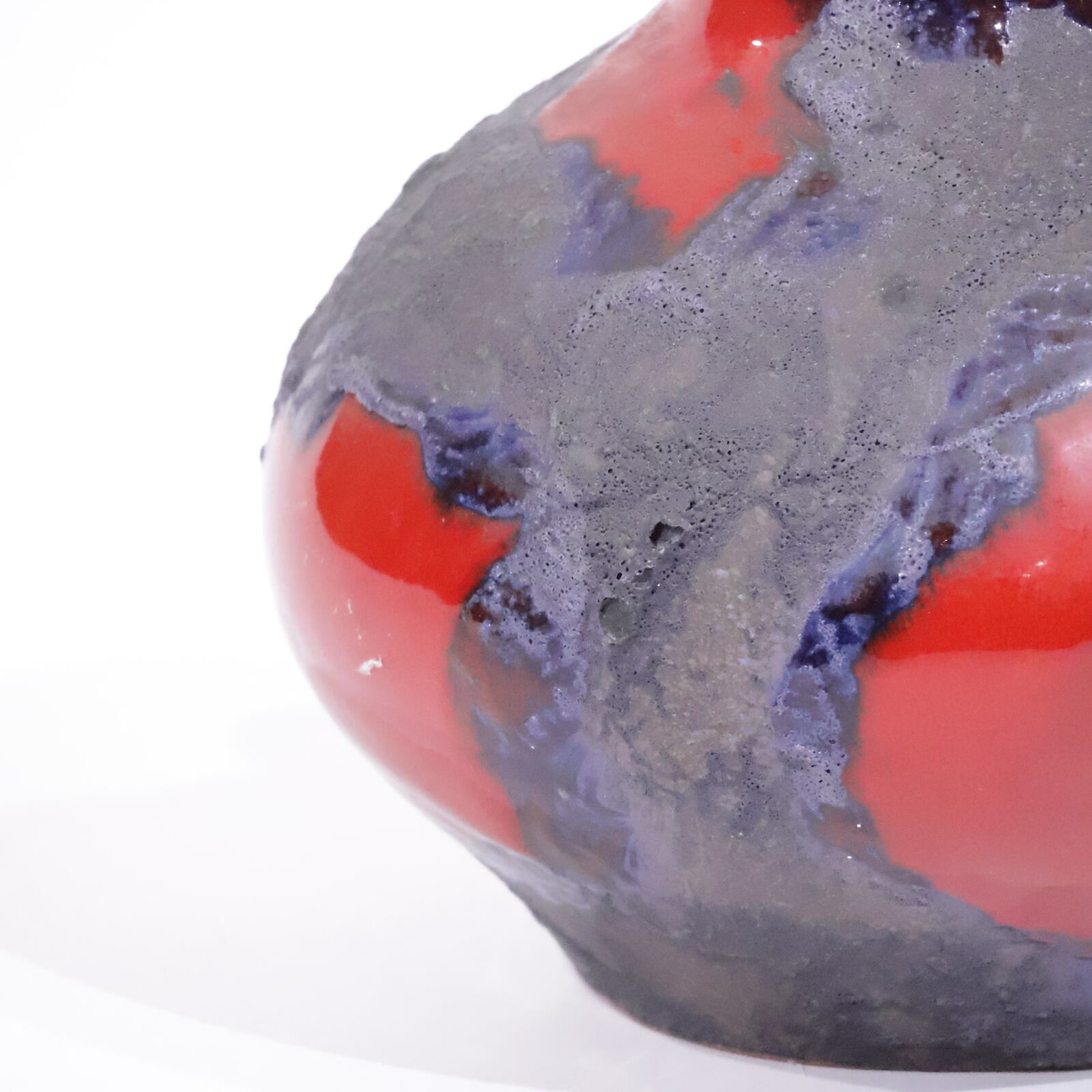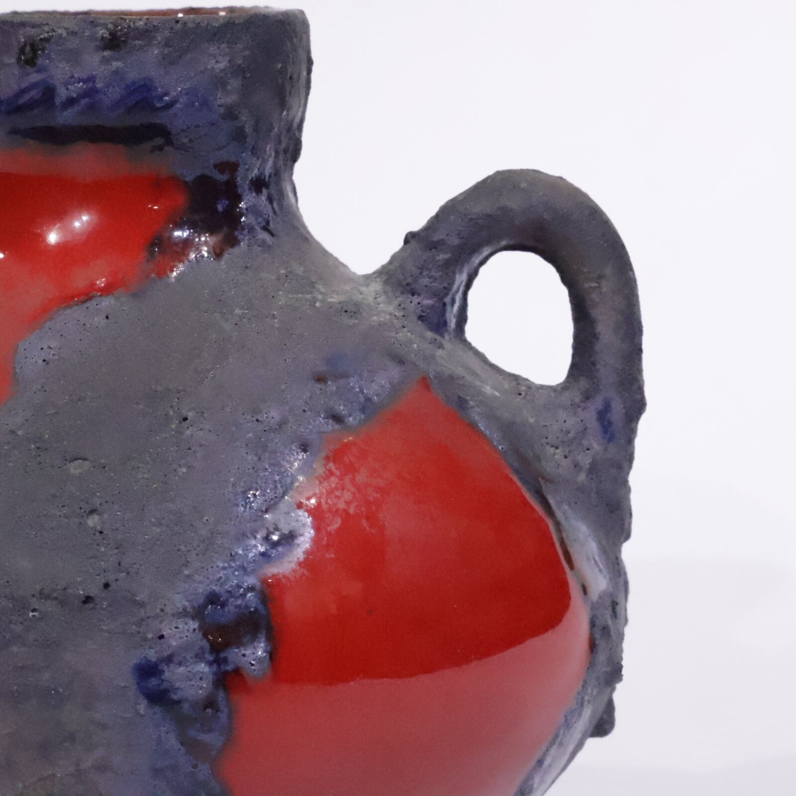 鮮やかなエナメルレッドの上に冷えて固まった溶岩石のような釉薬が施されています。一点ずつ釉薬の施され方に個性が出ていて、型別で集められたりもしているコレクターに人気のシリーズです。