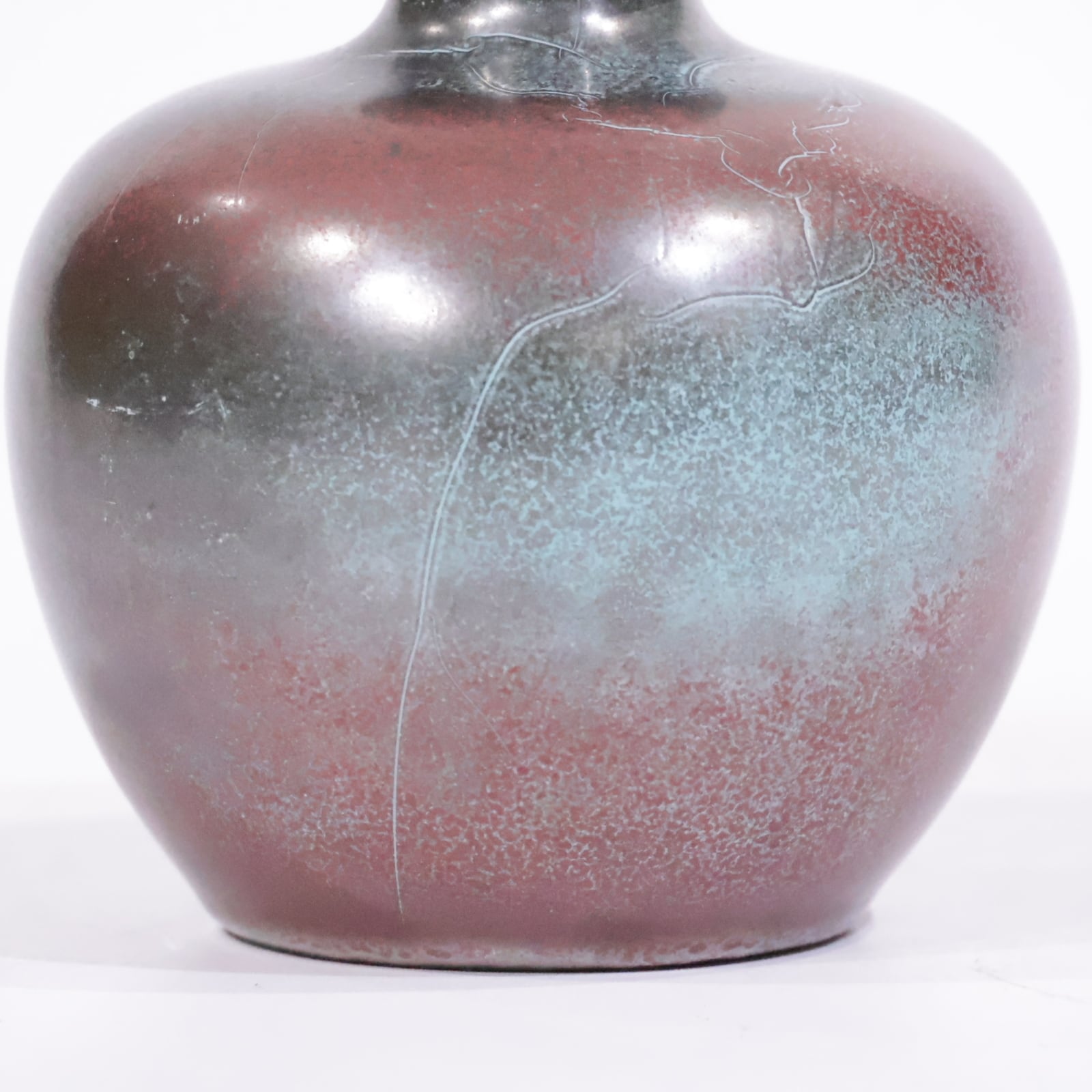 Paul Dresslerは、1940〜50年代に活躍した著名な陶芸家で、彼の作品はGrotenburgというメーカーのもとで制作されました。この作品に見られる貫入のようなひび割れと、金属色が浮き出る独特のカラーリングは、還元焼成という高度な技法によるものです。