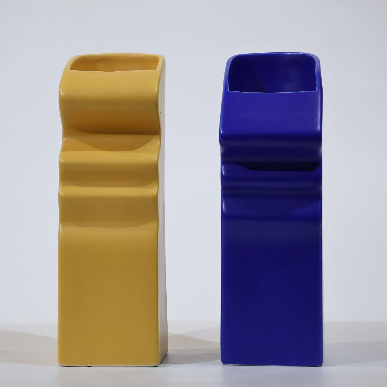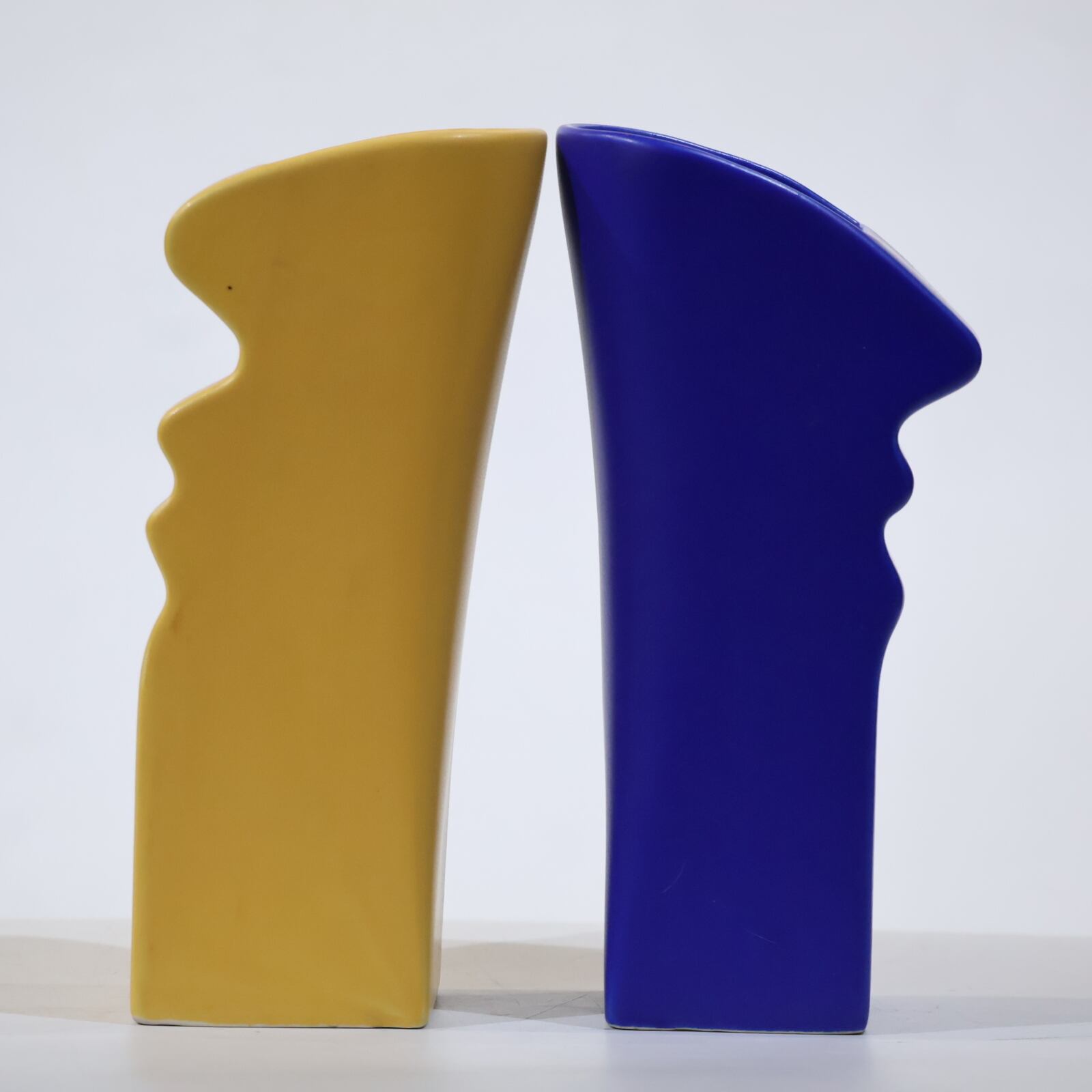 ユニークなフォルムが印象的なASAの2点セット。黄色と青のそれぞれが人の横顔を象ったようなデザインとなっており、並べるとまるで互いに向かい合い、語り合うかのような造形を生み出します。二つを組み合わせることで一つの物語を紡ぎ出す、遊び心あふれる作品です。