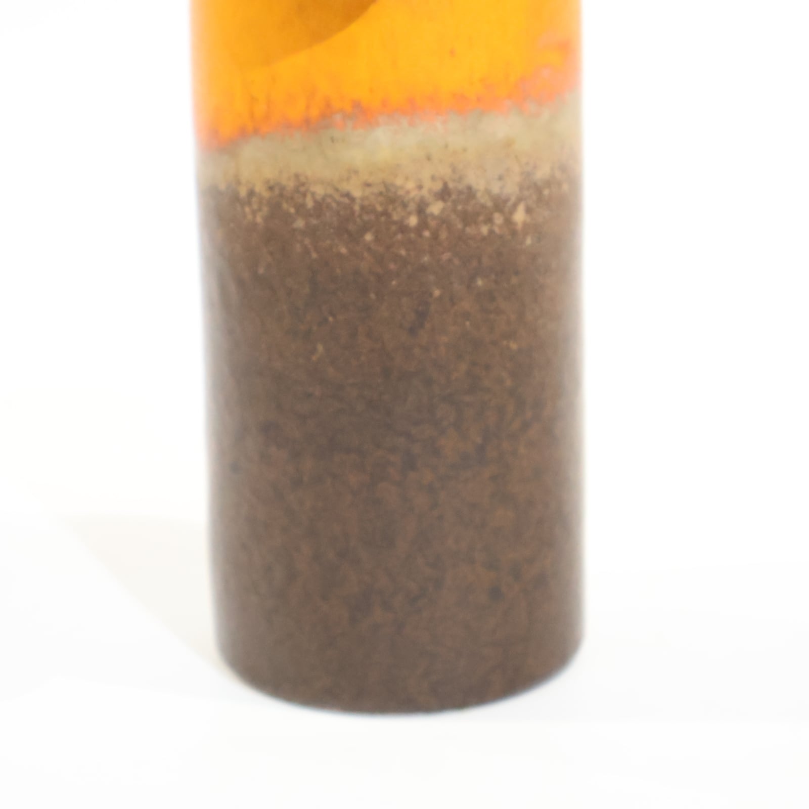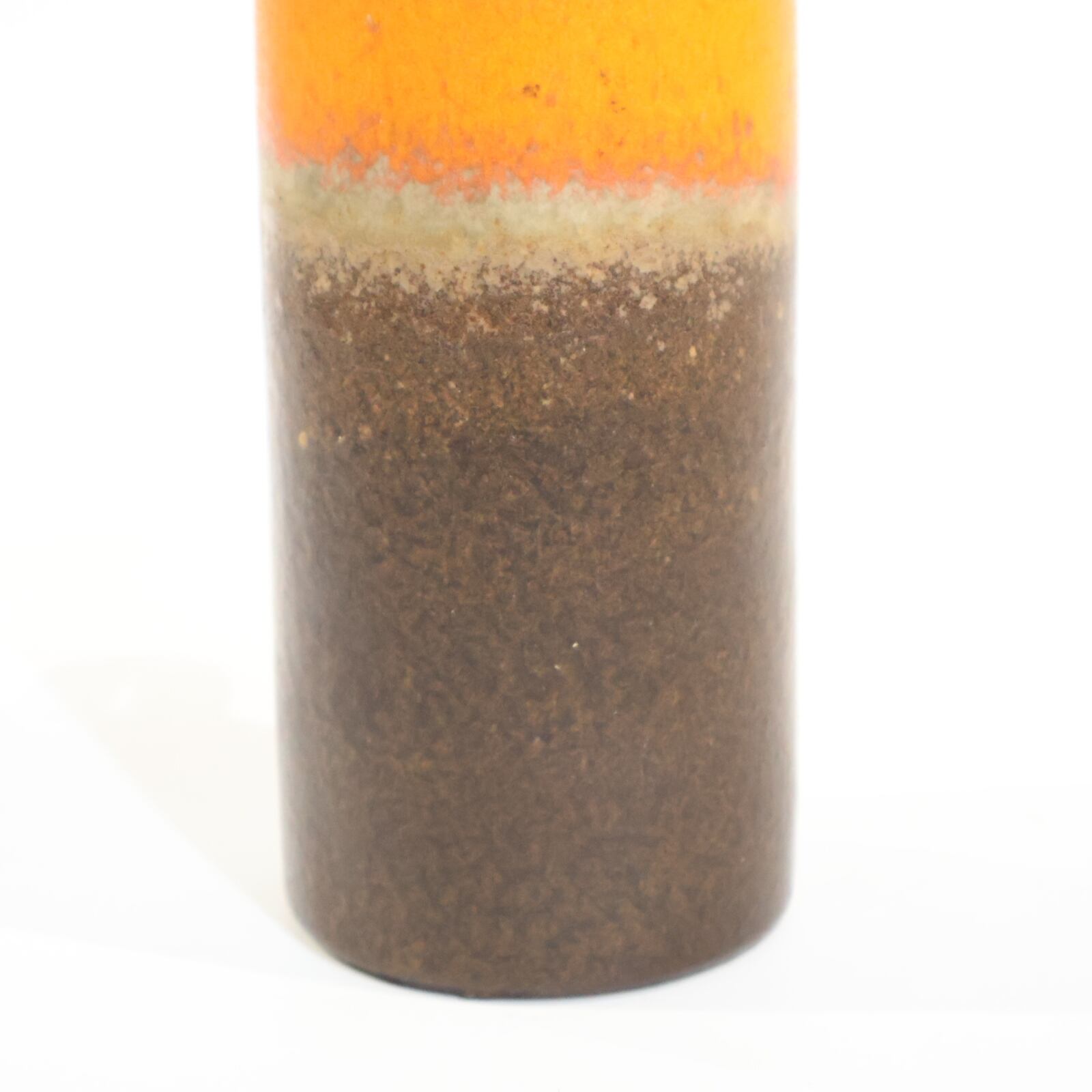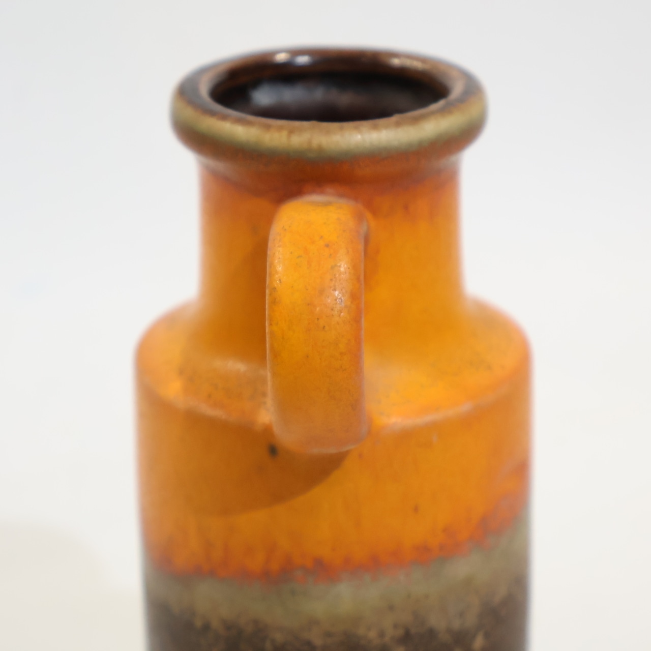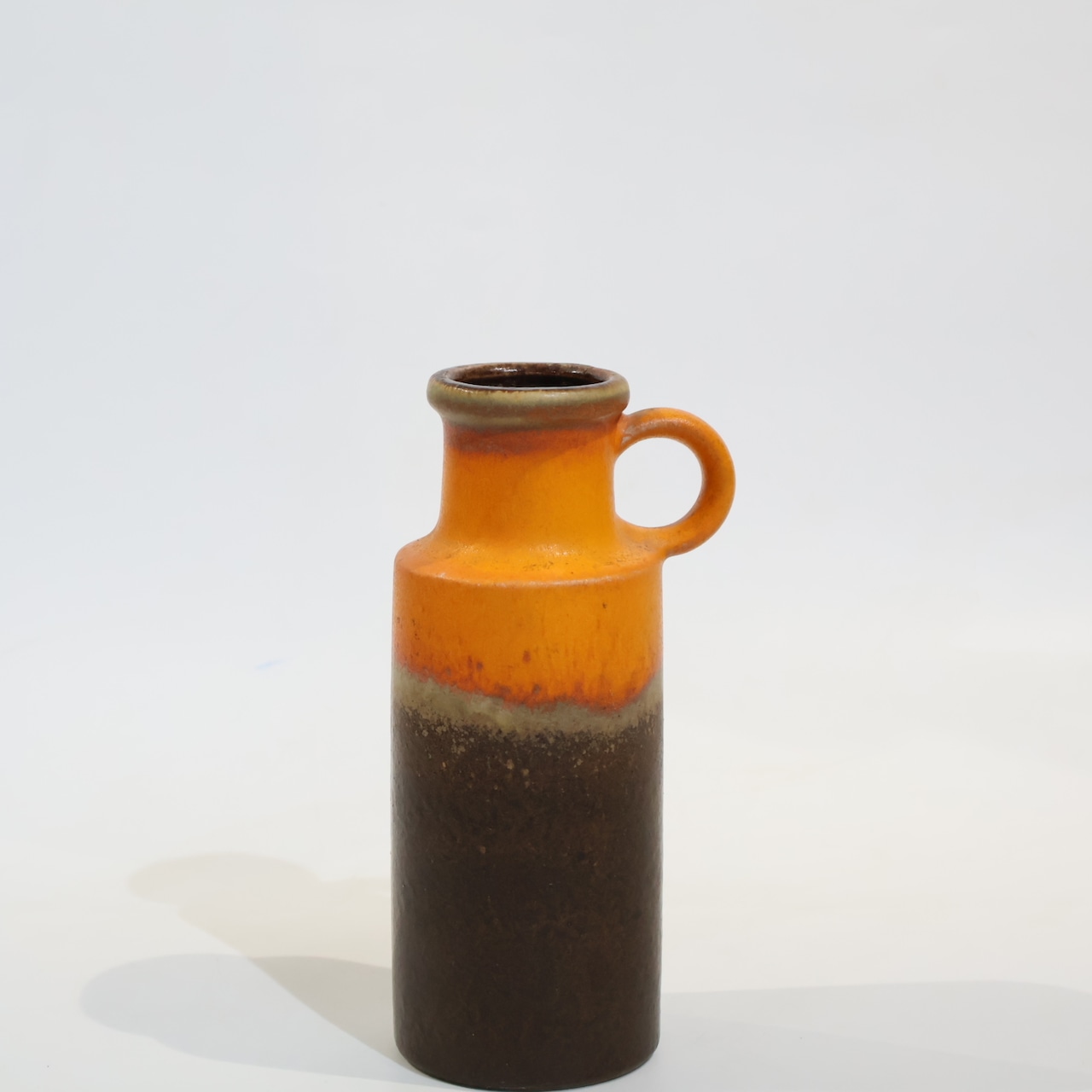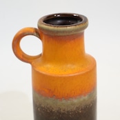 同社は急速に成長し、1950~80年代には陶 器製造の分野でドイツ最大のメーカーとなり、今日も確固たる地位を維持しています。形状に加えて釉薬でも、当時は最も幅広い品揃えを誇った他、輸出量も最大だったため、現在でも同社の製品はよく見られます。特に円筒形を基調にし たシンプルな形状で、型押し模様のある床置き 花瓶が代表的。色彩については当時主流だっ た赤やオレンジから、クリーム、ベージュ、茶色 などが多くを占めています。