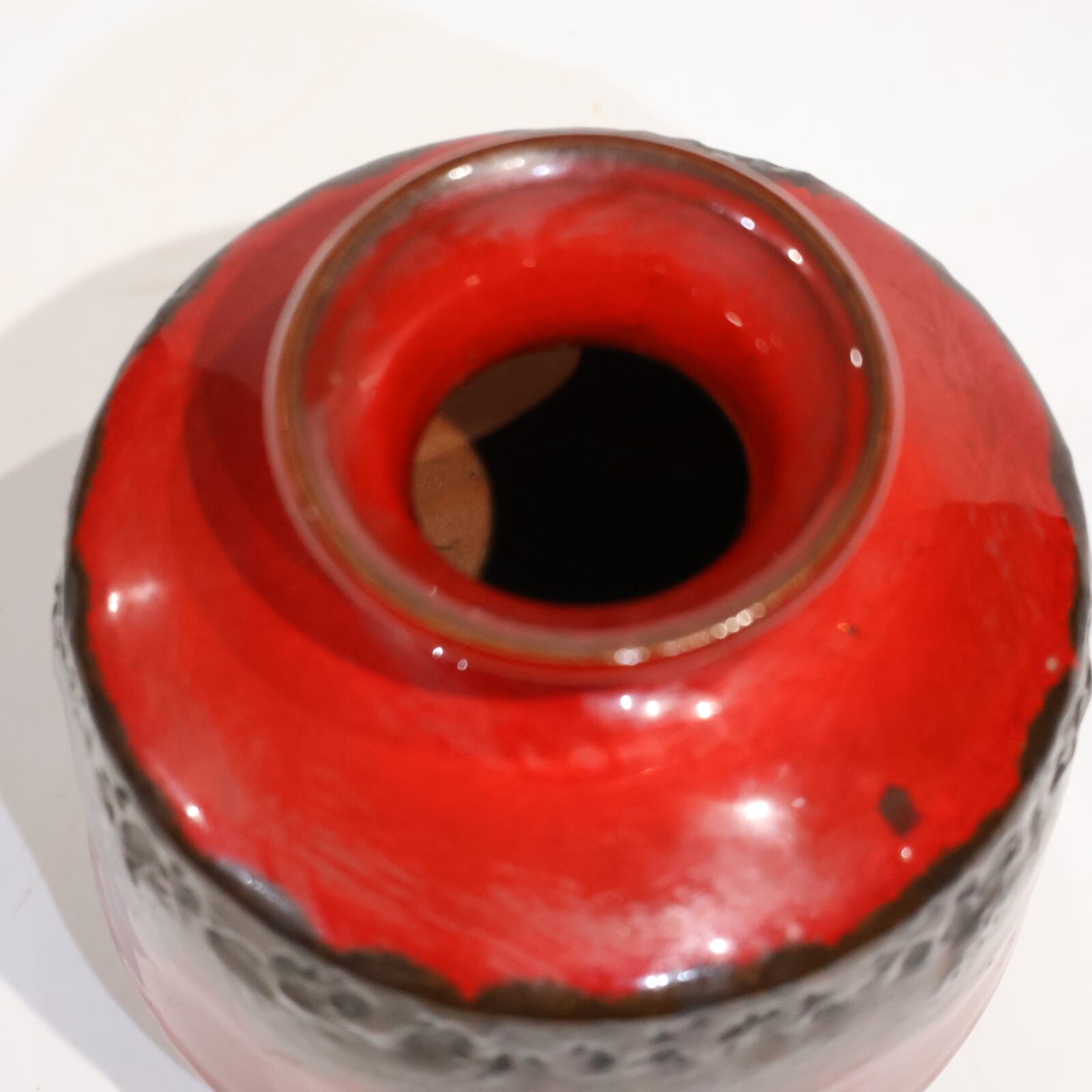 力強い丸みを帯びた胴に、鮮やかな赤と黒が対比する釉薬が印象的です。厚みのあるFat Lava釉が火山の噴出物を思わせ、まさに同社の真骨頂といえる仕上がりになっています。