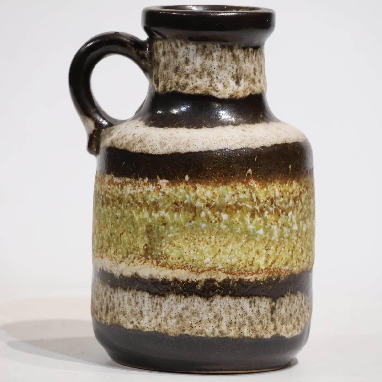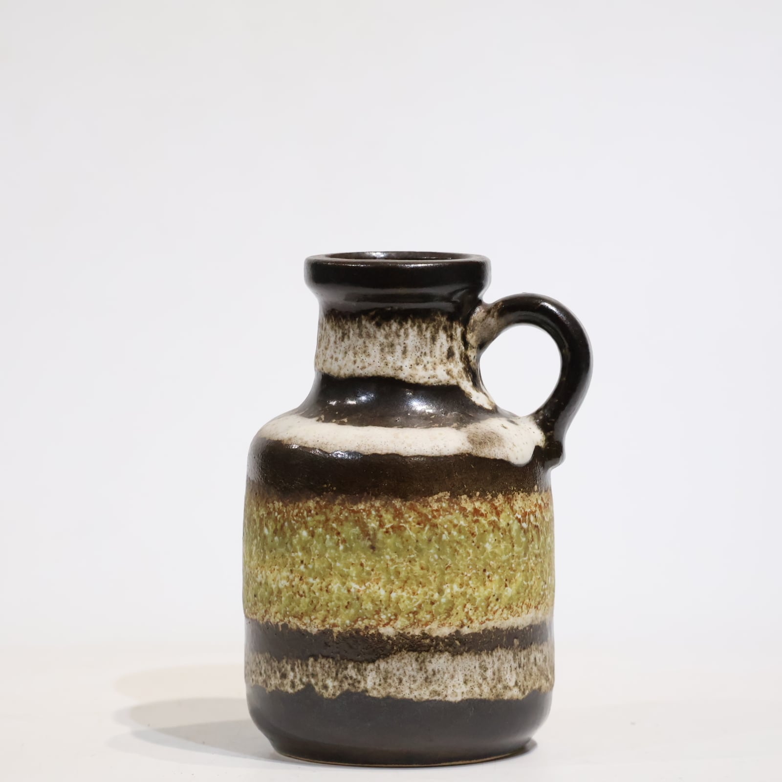 小ぶりながら持ち手が付いていることで存在感が増し、植物や自然の景色を切り取ったような佇まい。1960〜70年代のScheurichらしいカラーブロッキングが楽しめる一点です。