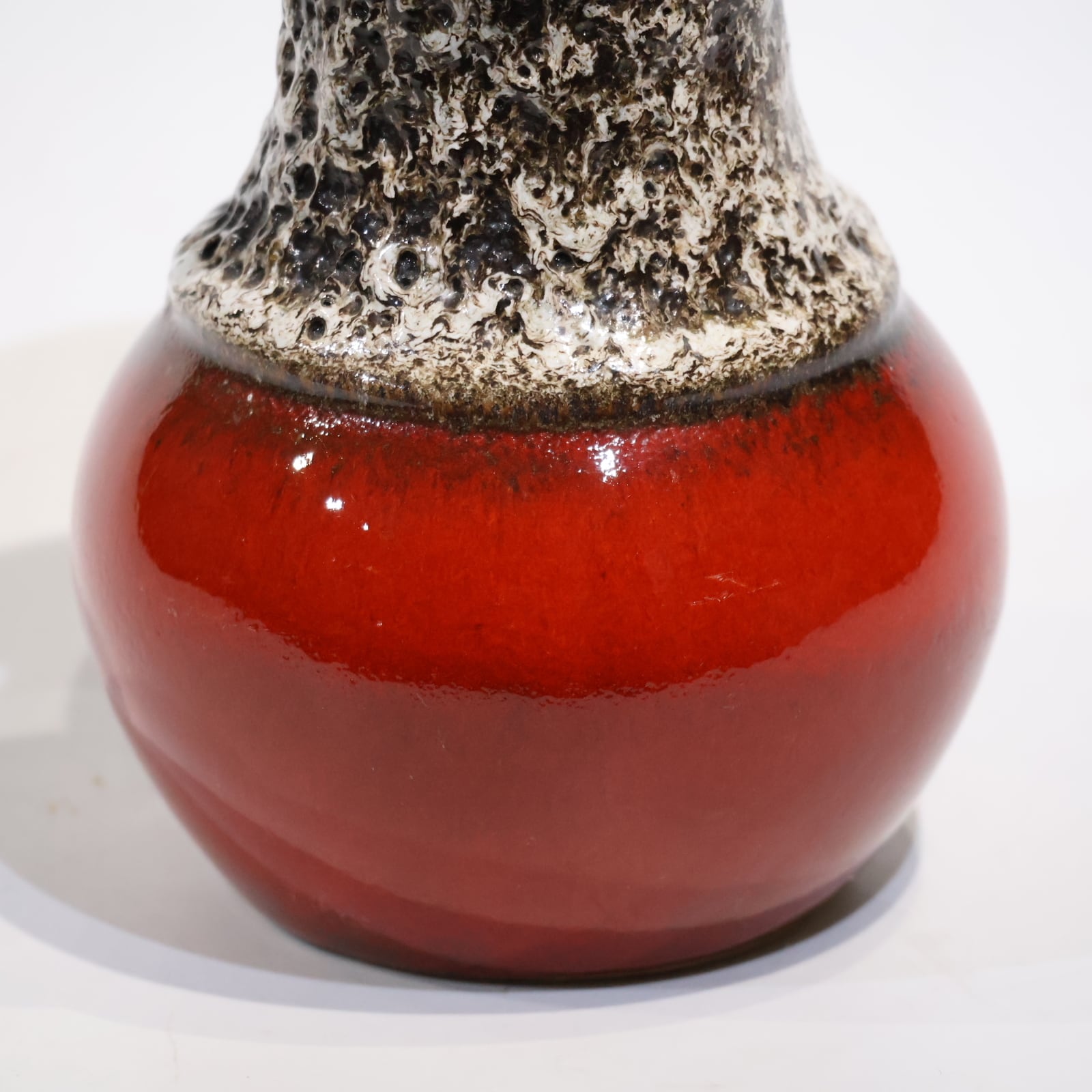 同社は急速に成長し、1950~80年代には陶 器製造の分野でドイツ最大のメーカーとなり、今日も確固たる地位を維持しています。形状に加えて釉薬でも、当時は最も幅広い品揃えを誇った他、輸出量も最大だったため、現在でも同社の製品はよく見られます。特に円筒形を基調にし たシンプルな形状で、型押し模様のある床置き 花瓶が代表的。色彩については当時主流だっ た赤やオレンジから、クリーム、ベージュ、茶色 などが多くを占めています。