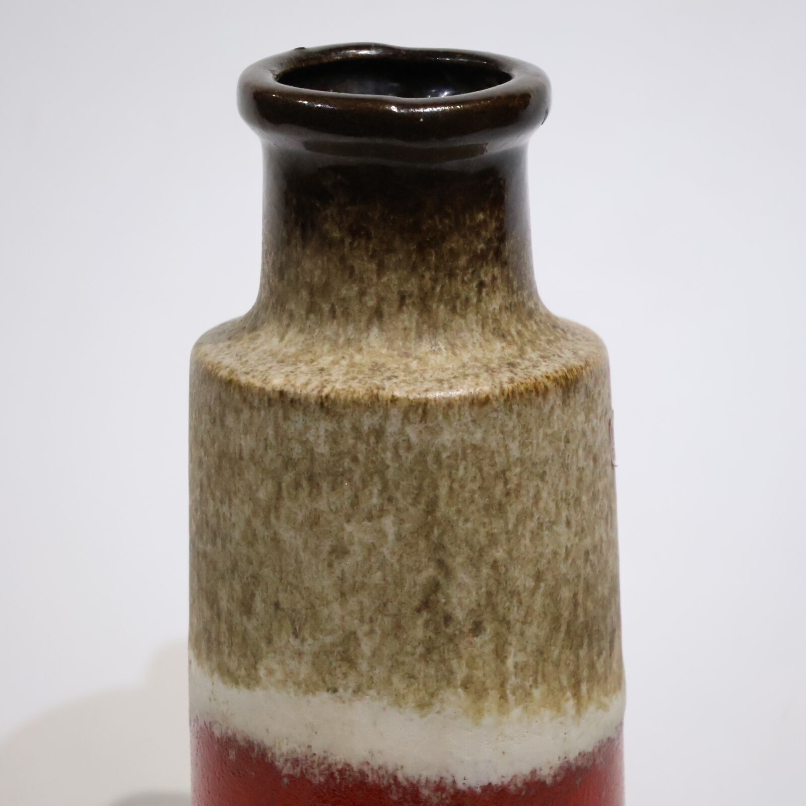 同社は急速に成長し、1950~80年代には陶 器製造の分野でドイツ最大のメーカーとなり、今日も確固たる地位を維持しています。形状に加えて釉薬でも、当時は最も幅広い品揃えを誇った他、輸出量も最大だったため、現在でも同社の製品はよく見られます。特に円筒形を基調にし たシンプルな形状で、型押し模様のある床置き 花瓶が代表的。色彩については当時主流だっ た赤やオレンジから、クリーム、ベージュ、茶色 などが多くを占めています。