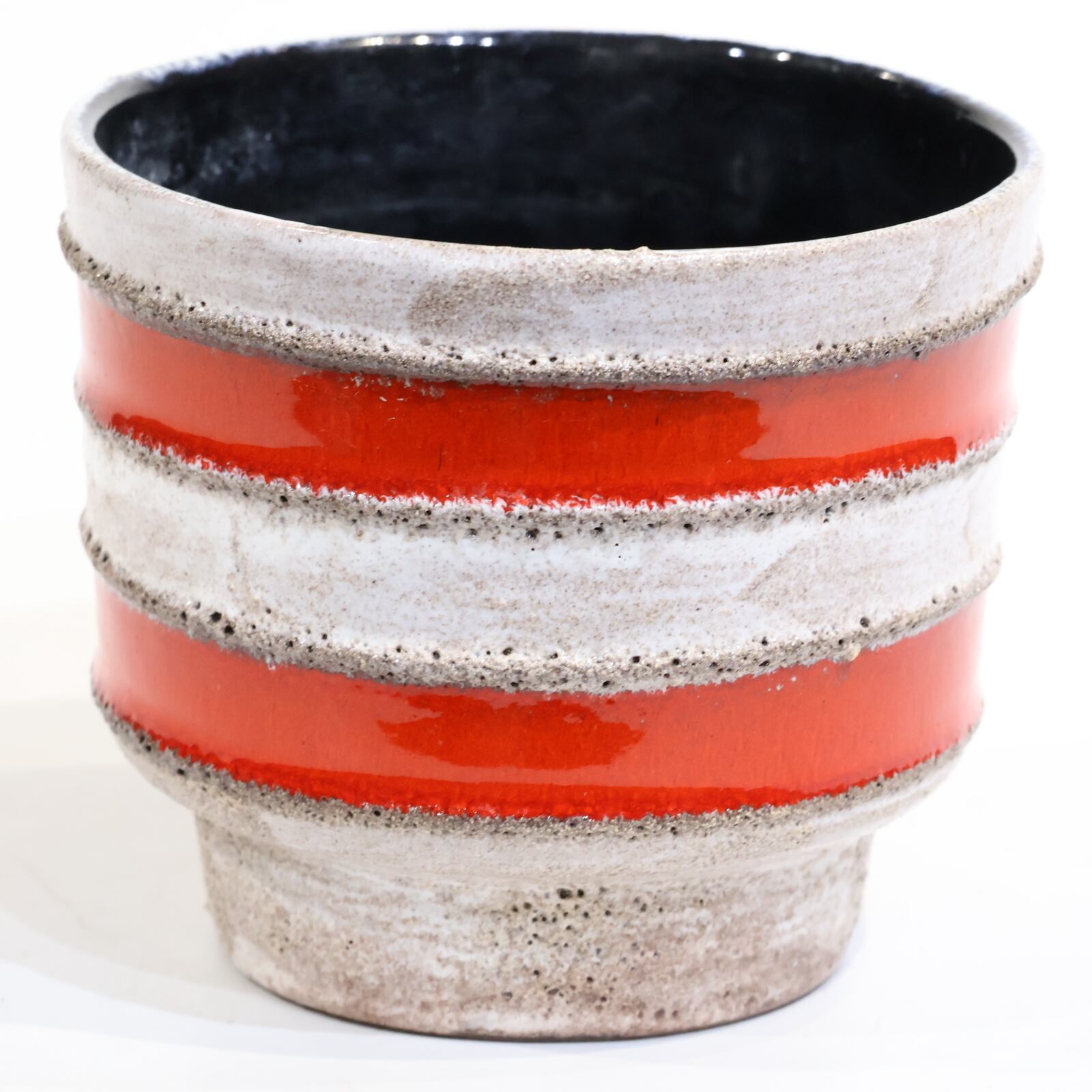 Strehlaの作品は、60年代後半から70年代にかけて、手作業で追加されたチューブで裏打ちされたFat Lava釉薬を使用した装飾によって特徴づけられました。ほとんどの作品には「Strehla」と刻印されたインクが刻印されており、ベースには型番が刻印されています。おそらく生産の多くが輸出されたので、アイテムは西ドイツの商品よりドイツで見つけるのが難しいです。