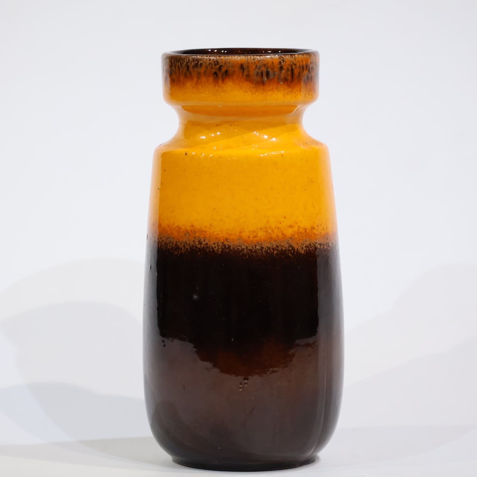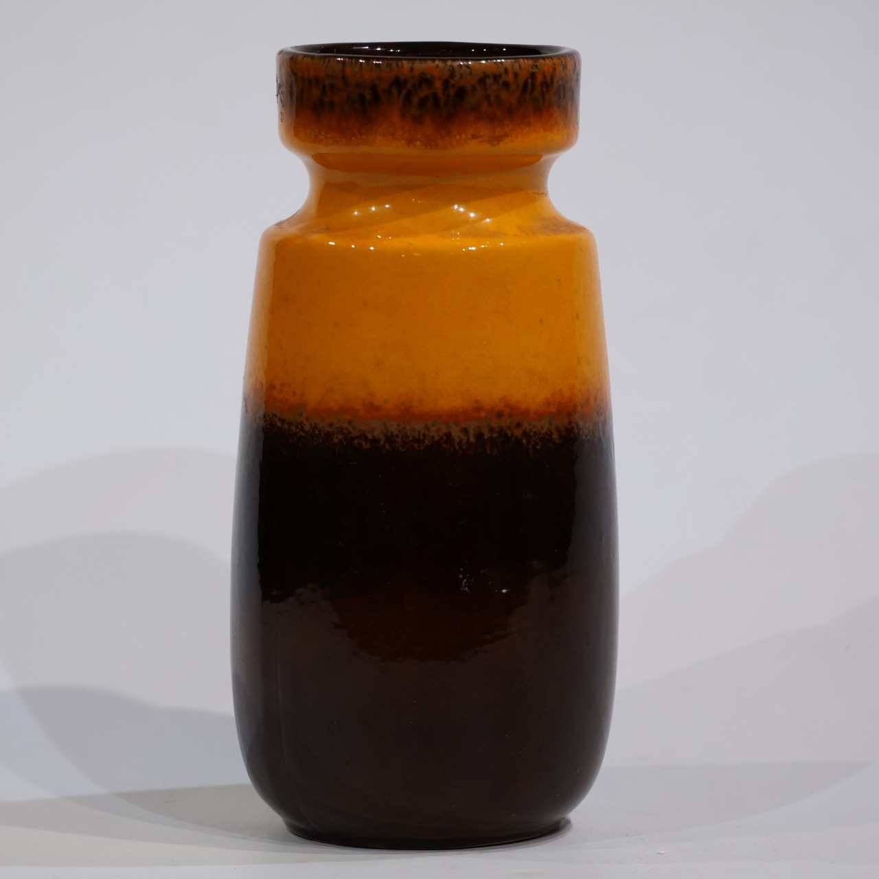 高さ22.3cmと中型サイズで、シンプルながらも印象に残るカラーリングは、インテリアに鮮やかなアクセントを添えてくれる存在感。Scheurichが得意とした工業的フォルムと釉薬表現の融合が見られる好例です。