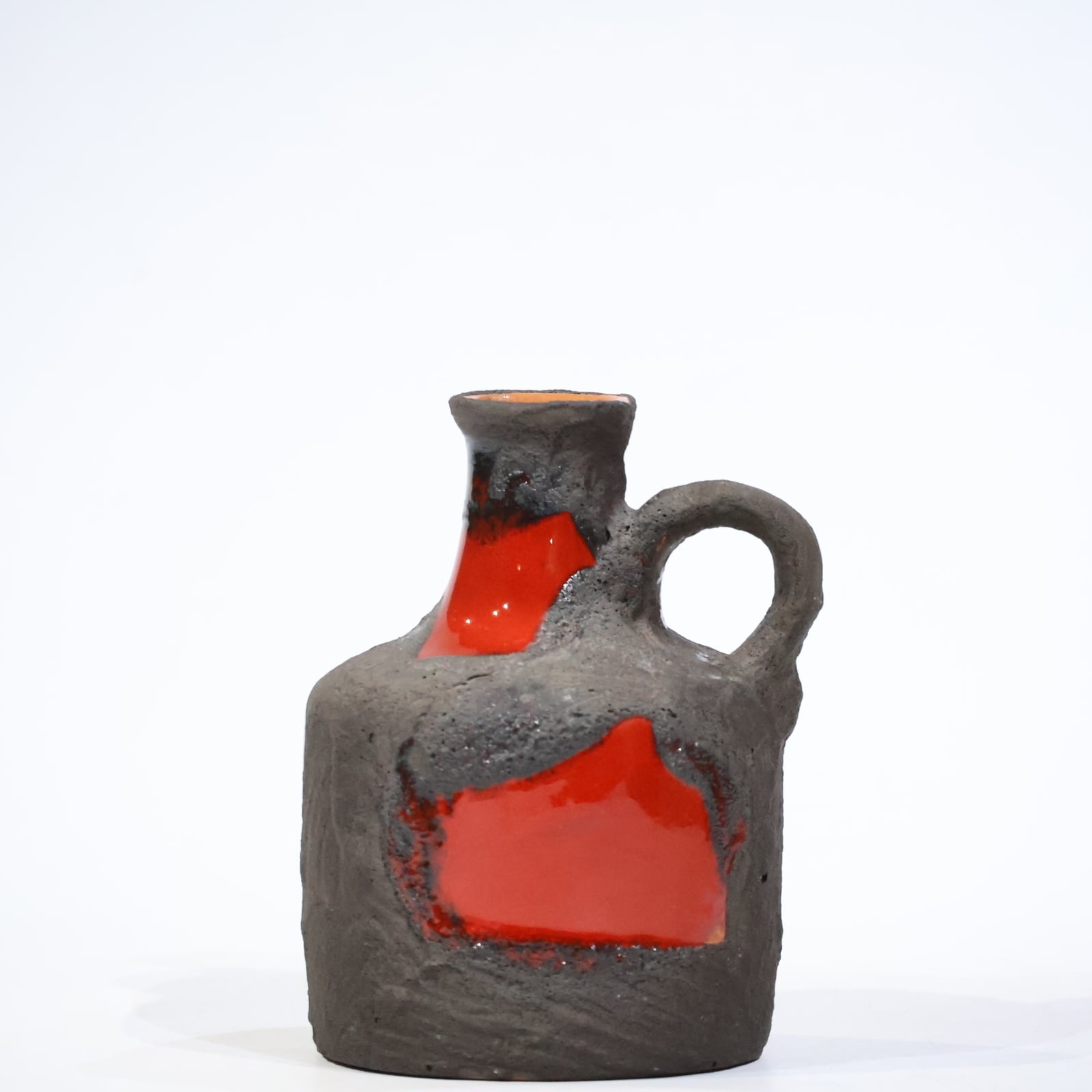 黒色の粗い釉薬と深みのある鮮やかで艶のある赤い釉薬のコントラストが美しい花器が入荷しました。迫力ある一点です。