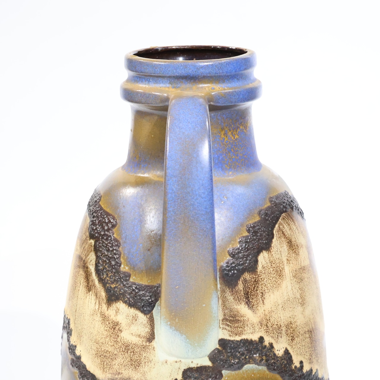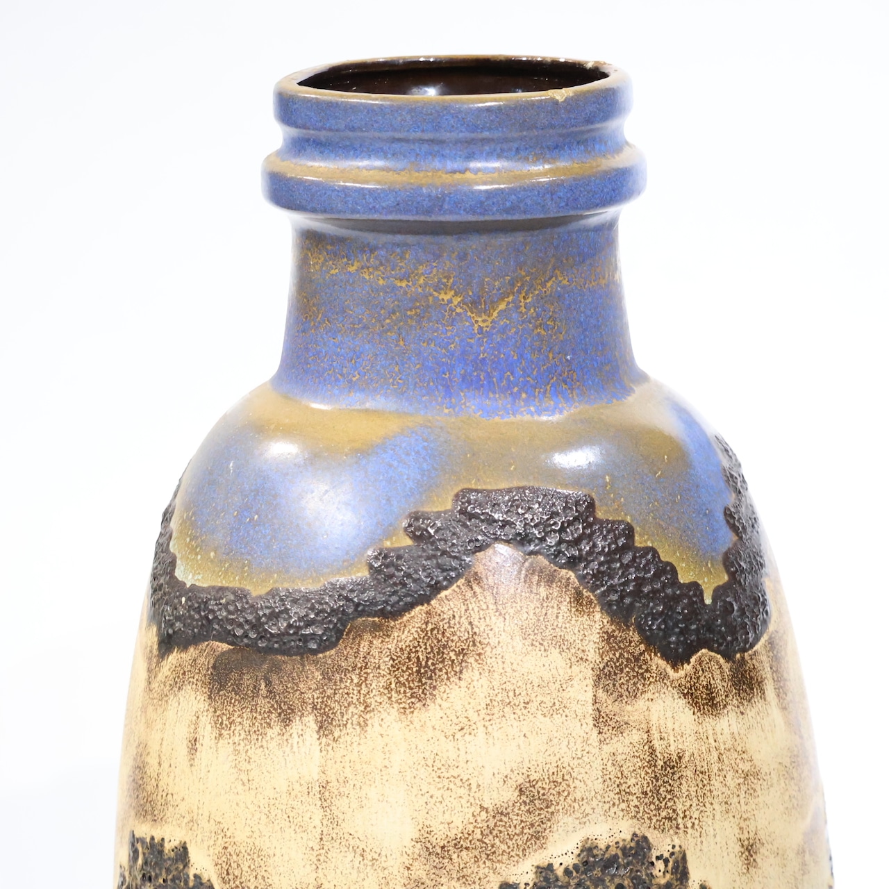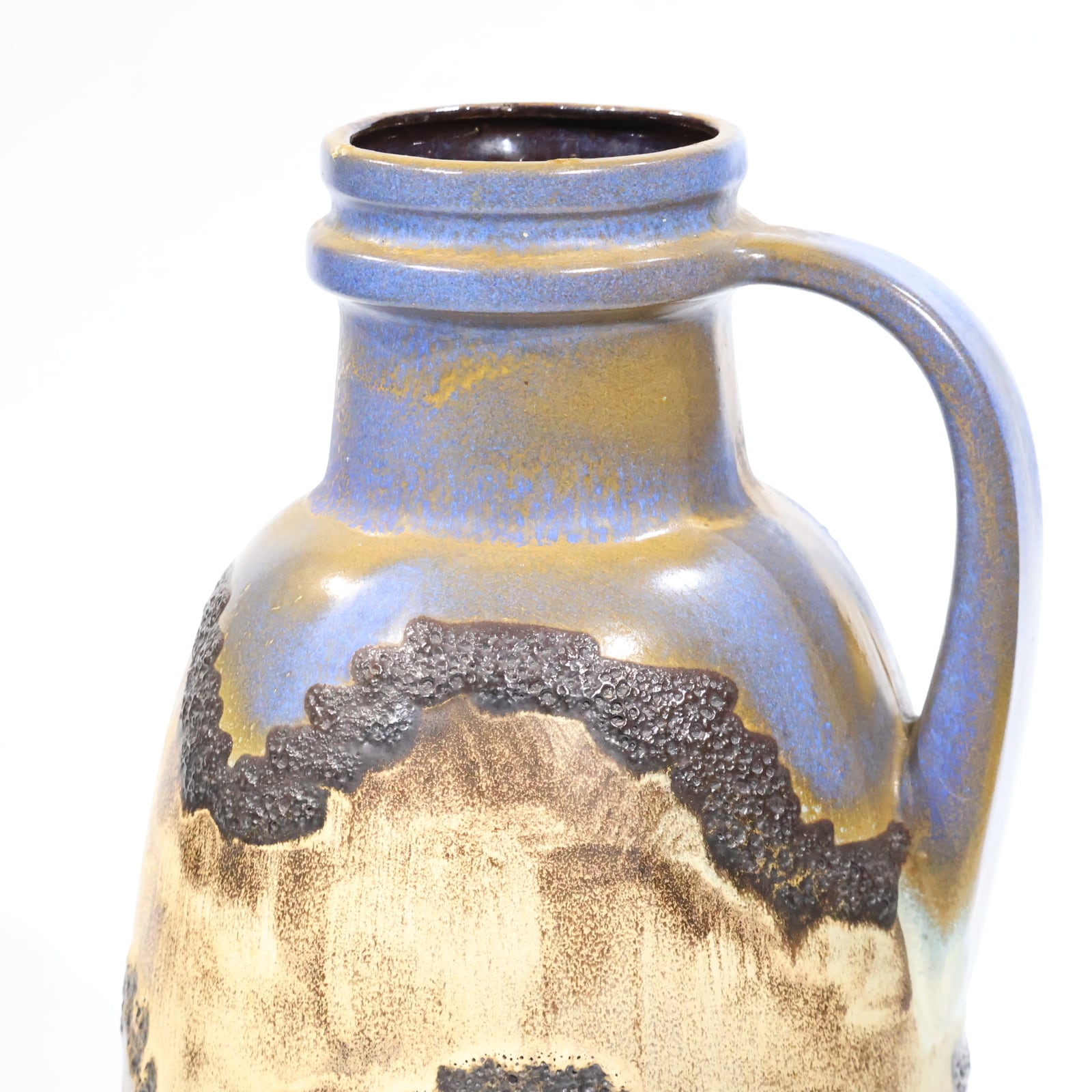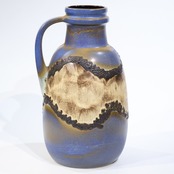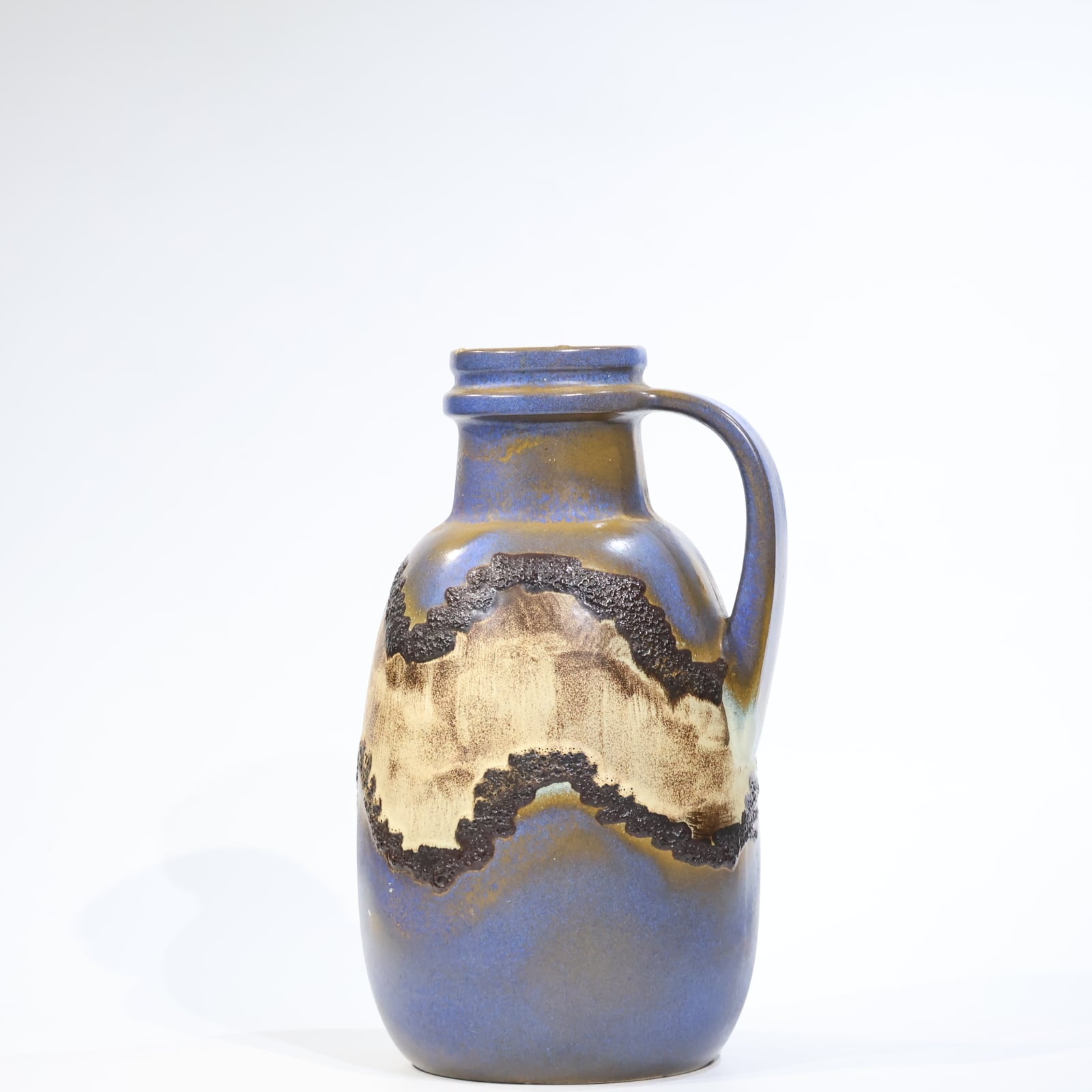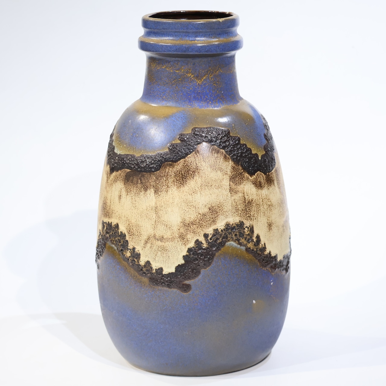 同社は急速に成長し、1950~80年代には陶 器製造の分野でドイツ最大のメーカーとなり、今日も確固たる地位を維持しています。形状に加えて釉薬でも、当時は最も幅広い品揃えを誇った他、輸出量も最大だったため、現在でも同社の製品はよく見られます。特に円筒形を基調にし たシンプルな形状で、型押し模様のある床置き 花瓶が代表的。色彩については当時主流だっ た赤やオレンジから、クリーム、ベージュ、茶色 などが多くを占めています。