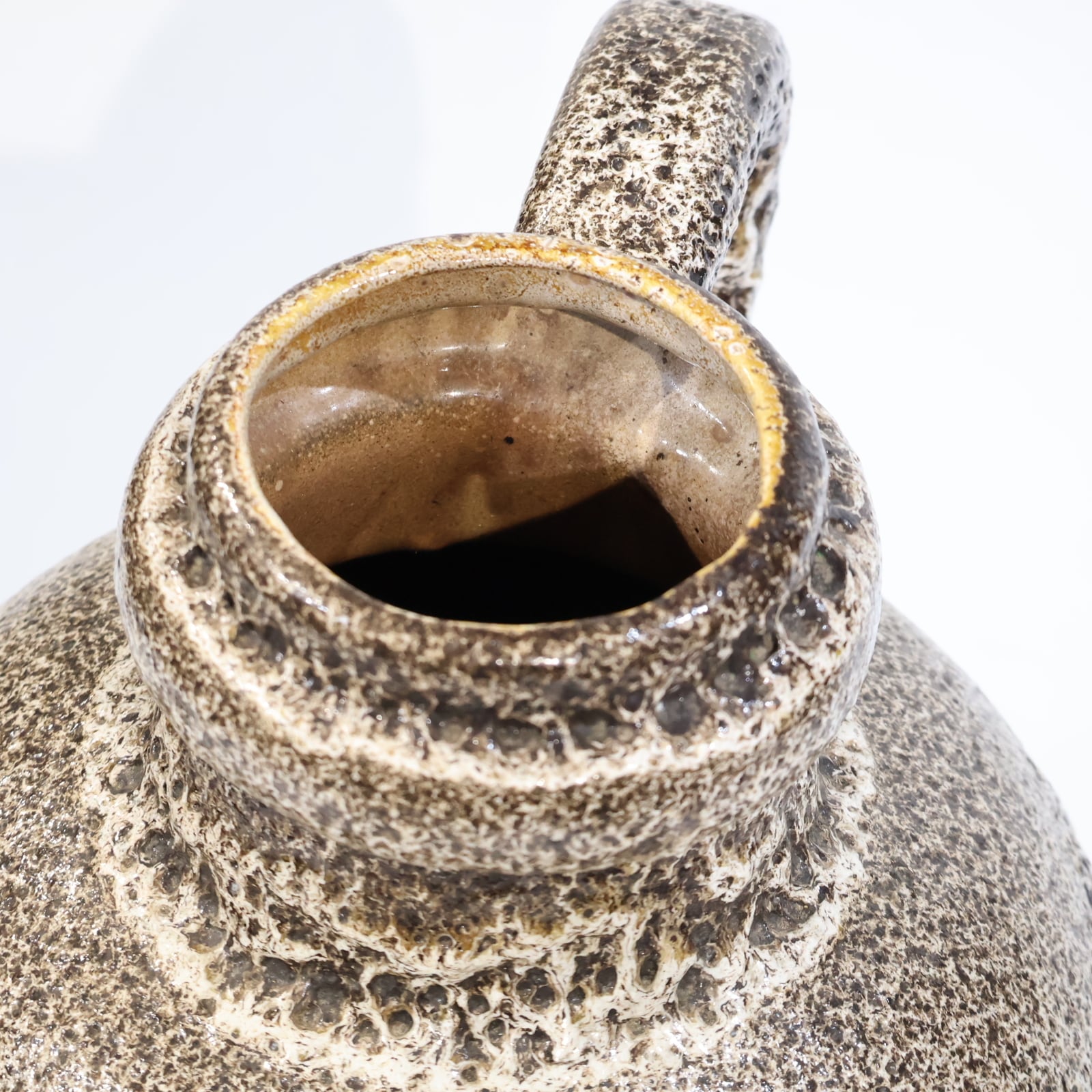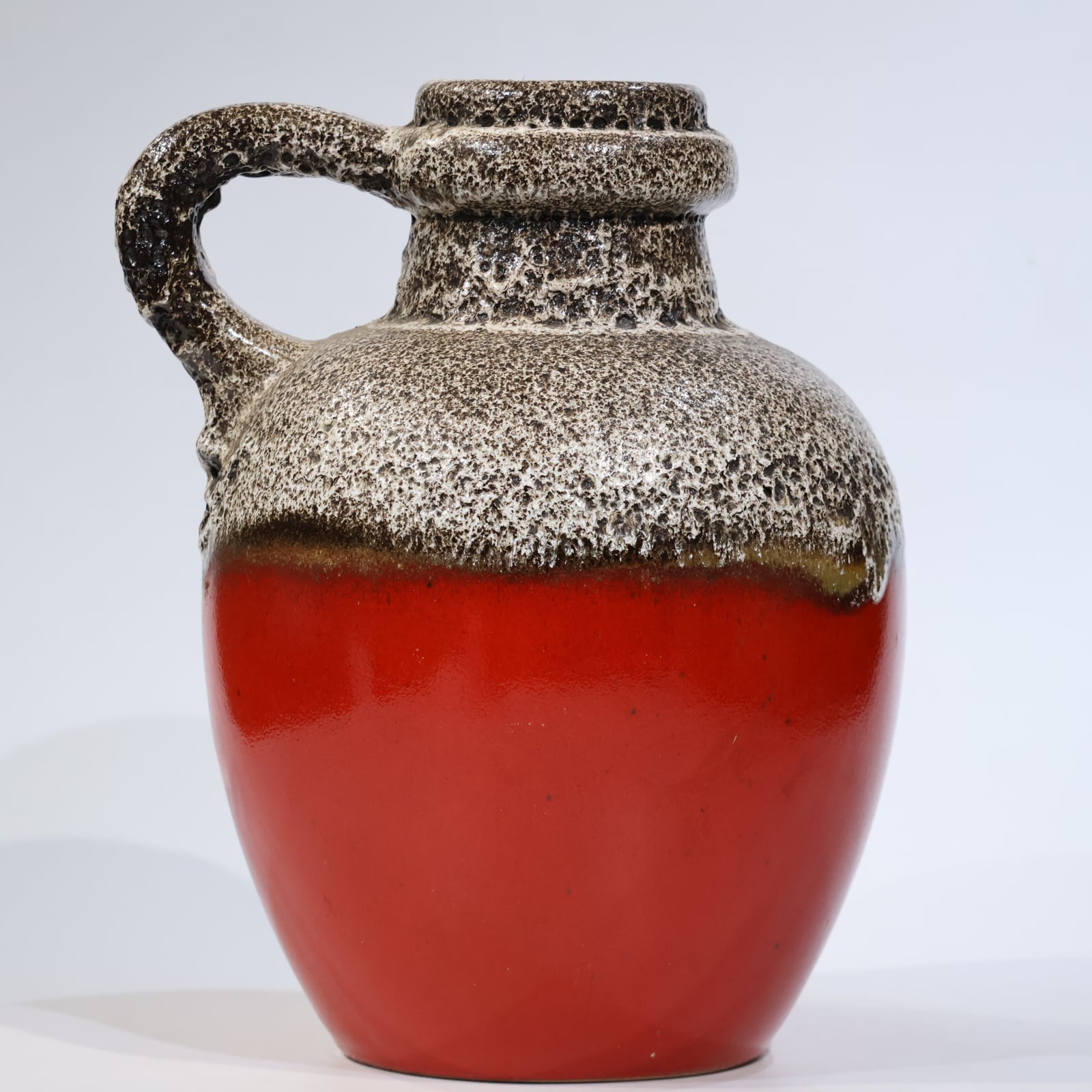 同社は急速に成長し、1950~80年代には陶 器製造の分野でドイツ最大のメーカーとなり、今日も確固たる地位を維持しています。形状に加えて釉薬でも、当時は最も幅広い品揃えを誇った他、輸出量も最大だったため、現在でも同社の製品はよく見られます。特に円筒形を基調にし たシンプルな形状で、型押し模様のある床置き 花瓶が代表的。色彩については当時主流だっ た赤やオレンジから、クリーム、ベージュ、茶色 などが多くを占めています。