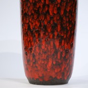 同社は急速に成長し、1950~80年代には陶 器製造の分野でドイツ最大のメーカーとなり、今日も確固たる地位を維持しています。形状に加えて釉薬でも、当時は最も幅広い品揃えを誇った他、輸出量も最大だったため、現在でも同社の製品はよく見られます。特に円筒形を基調にし たシンプルな形状で、型押し模様のある床置き 花瓶が代表的。色彩については当時主流だっ た赤やオレンジから、クリーム、ベージュ、茶色 などが多くを占めています。