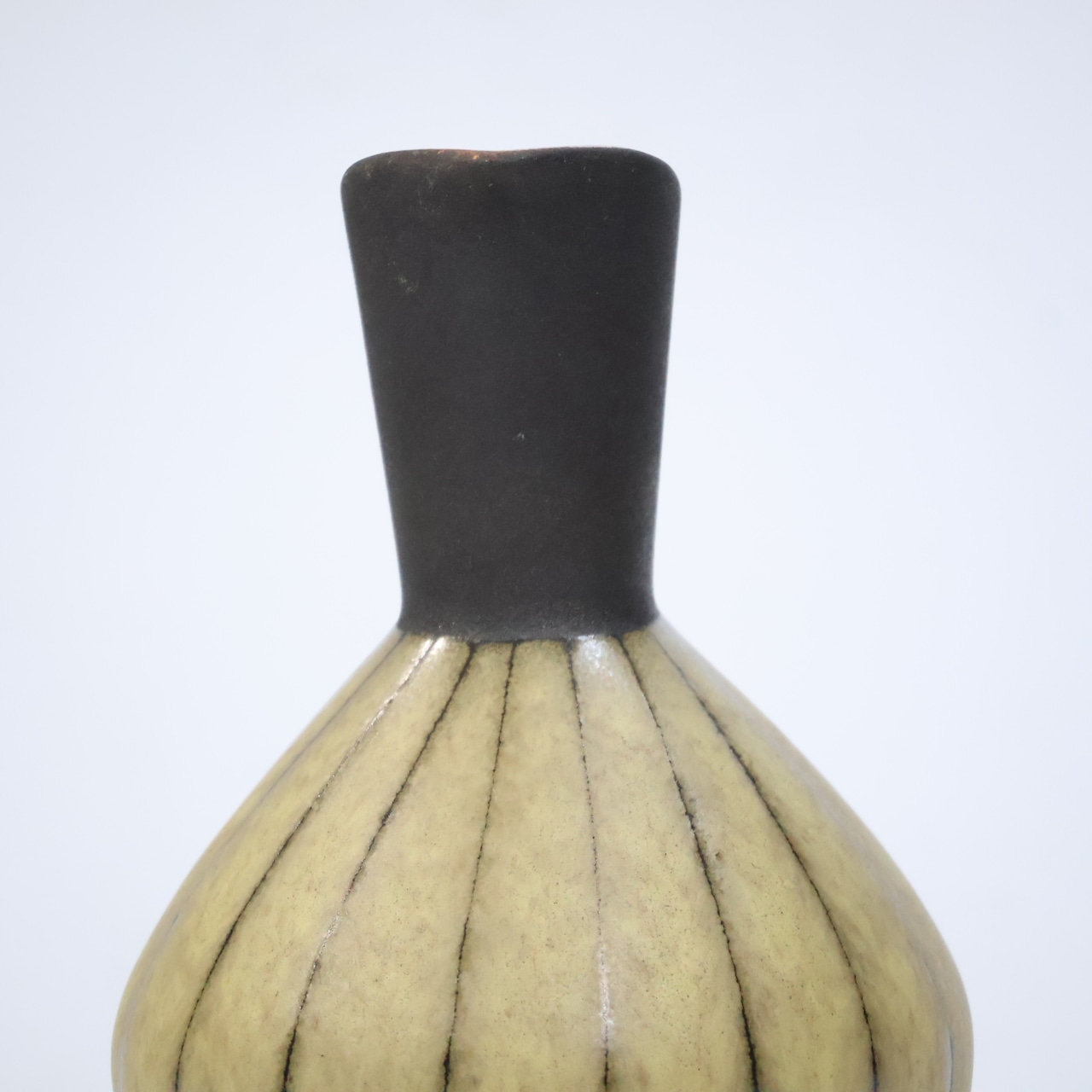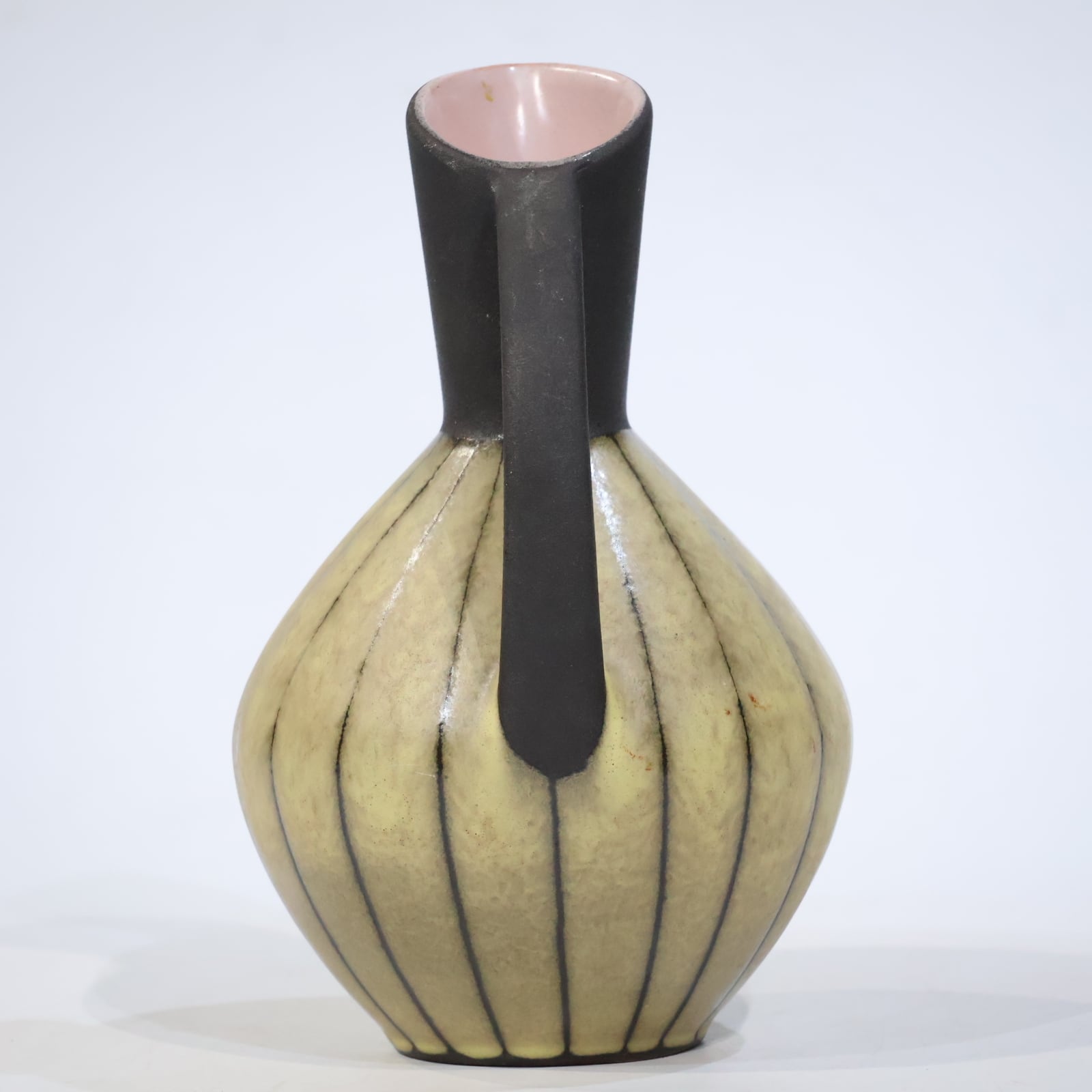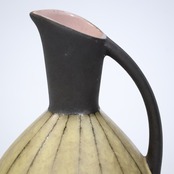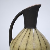 マットブラックの首部と持ち手、淡いベージュの胴部に細いストライプを描いたデザインが特徴で、当時の同社が追求していたモダンデザインのエレガンスを端的に示す一点です。