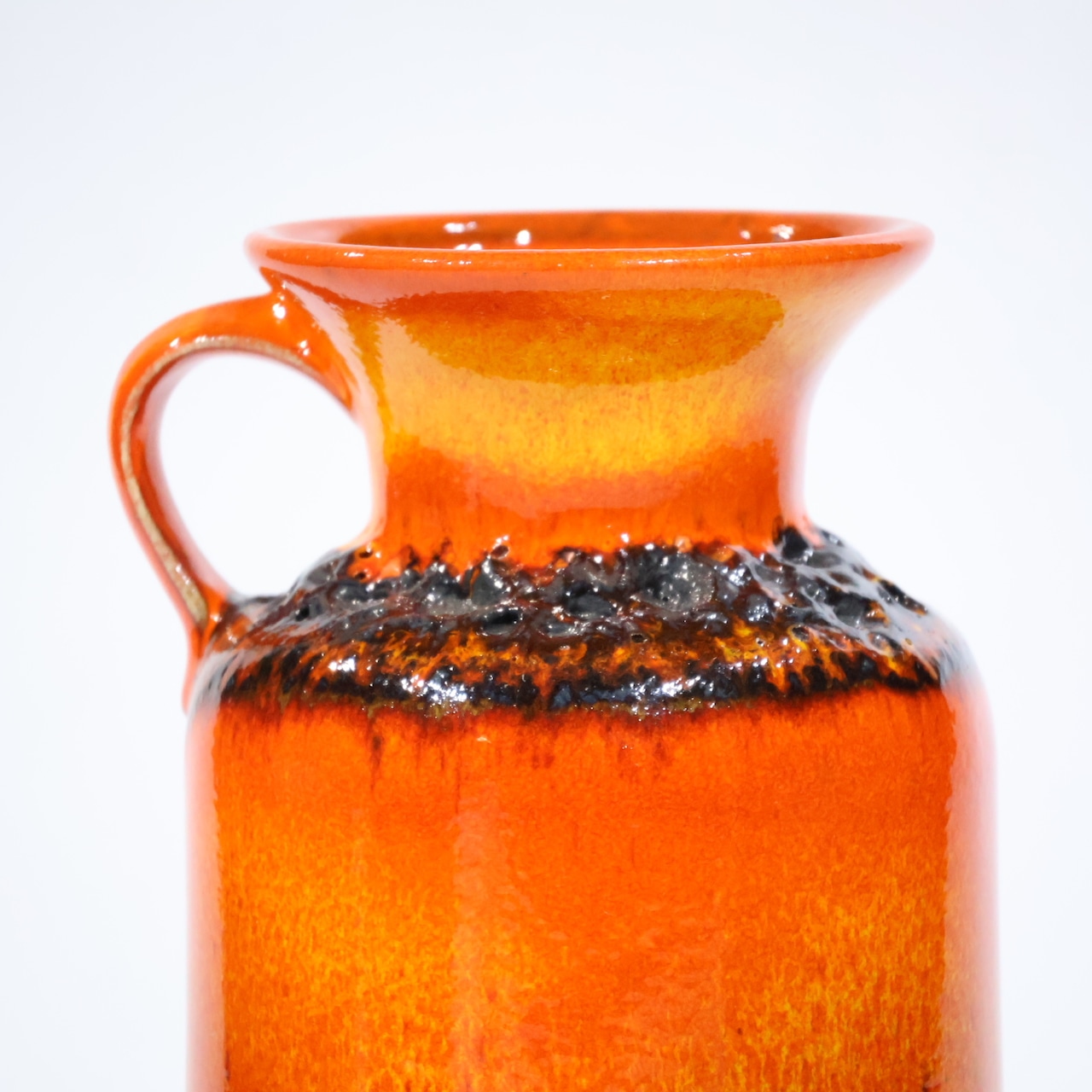 Fat Lava期特有の力強い釉薬表現と、Jasbaらしい造形の美しさが見事に調和した作品。視線を奪う鮮烈な色彩ながら、陰影のある質感が空間に深みを与えます。1970年代ドイツ陶芸のエネルギーをそのまま封じ込めたような一点です。