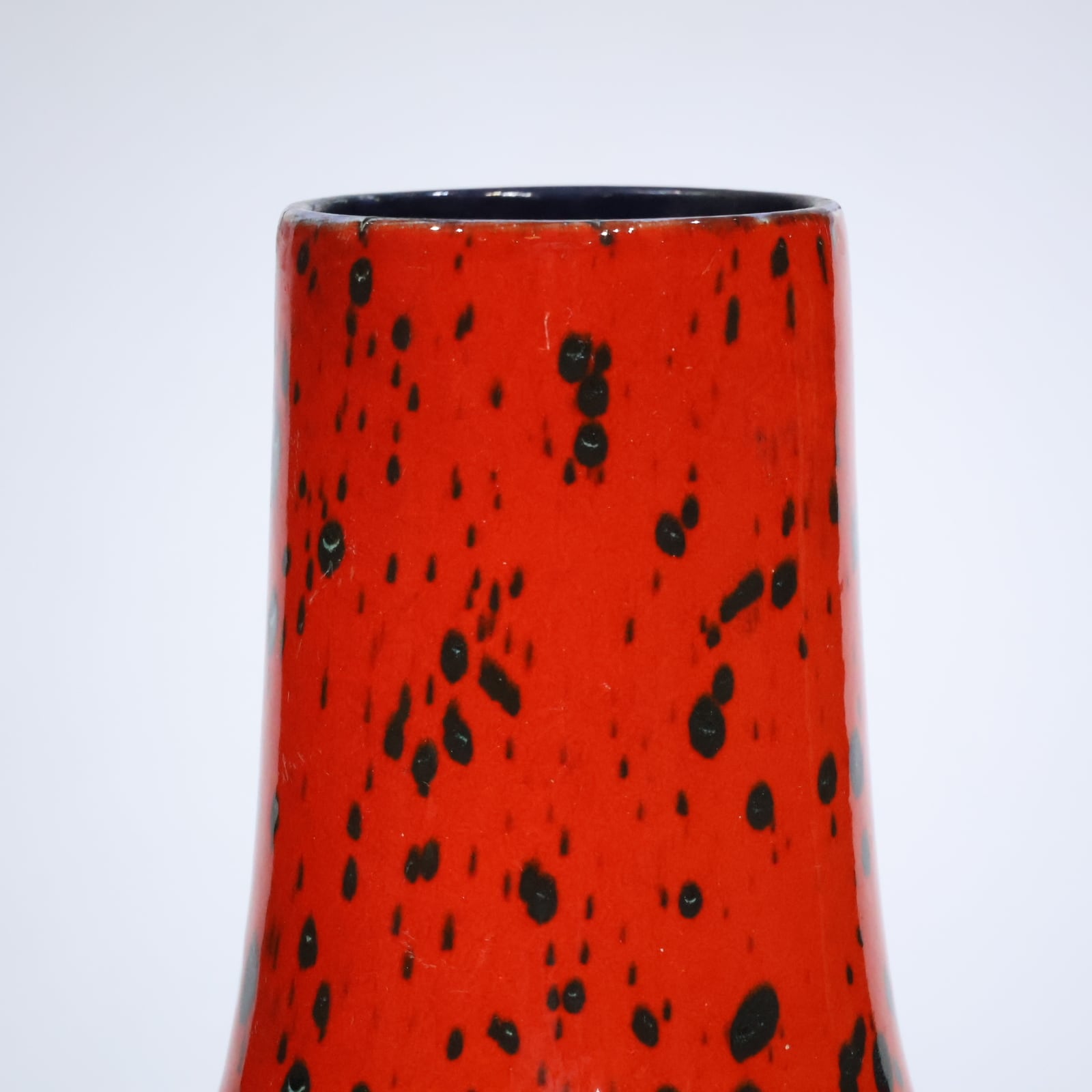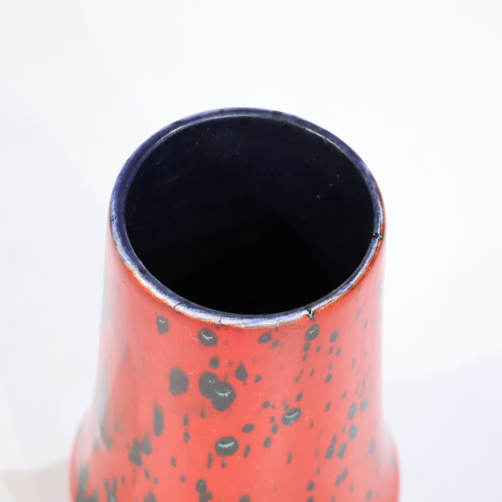 一面に広がる鮮烈なレッドに、黒の釉薬がまるで飛び散った墨のようにランダムにあしらわれたScheurichの一点。
