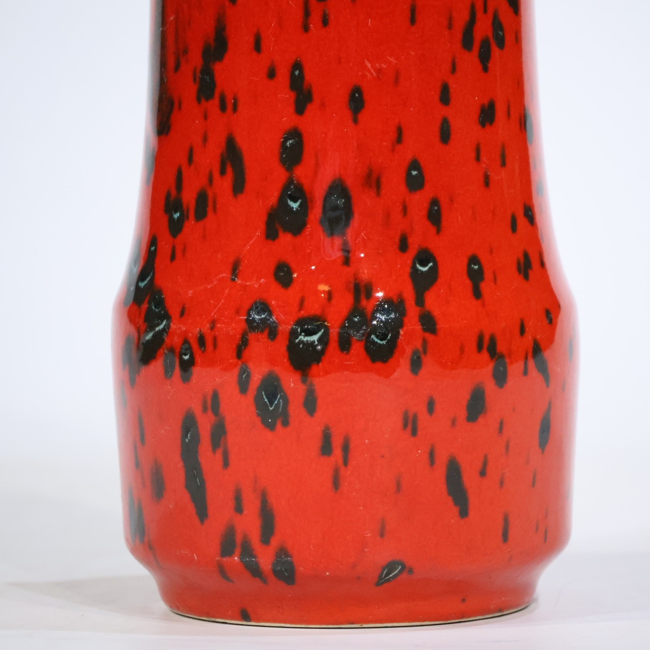 同社は急速に成長し、1950~80年代には陶 器製造の分野でドイツ最大のメーカーとなり、今日も確固たる地位を維持しています。形状に加えて釉薬でも、当時は最も幅広い品揃えを誇った他、輸出量も最大だったため、現在でも同社の製品はよく見られます。特に円筒形を基調にし たシンプルな形状で、型押し模様のある床置き 花瓶が代表的。色彩については当時主流だっ た赤やオレンジから、クリーム、ベージュ、茶色 などが多くを占めています。