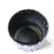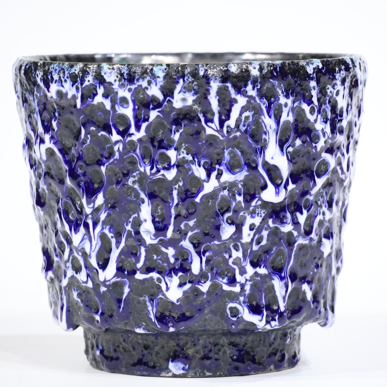 深い藍と白が溶け合うように流れ落ちる、迫力あるFat Lava釉薬が印象的な一点。