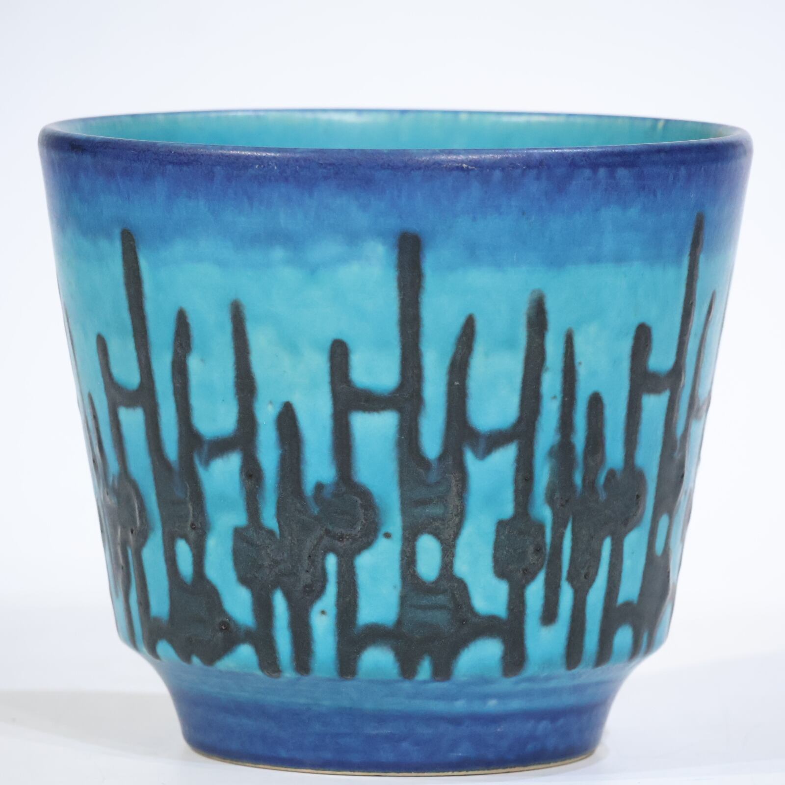 透き通るようなターコイズブルーと深いコバルトブルーのグラデーションが美しいDümler & Breiden社製の鉢カバー。