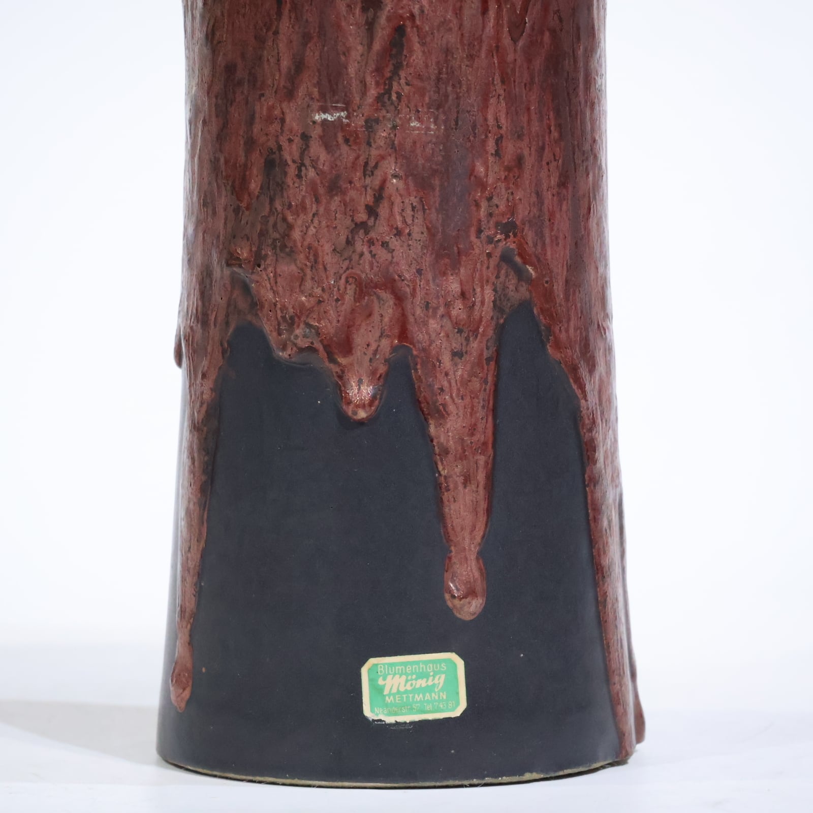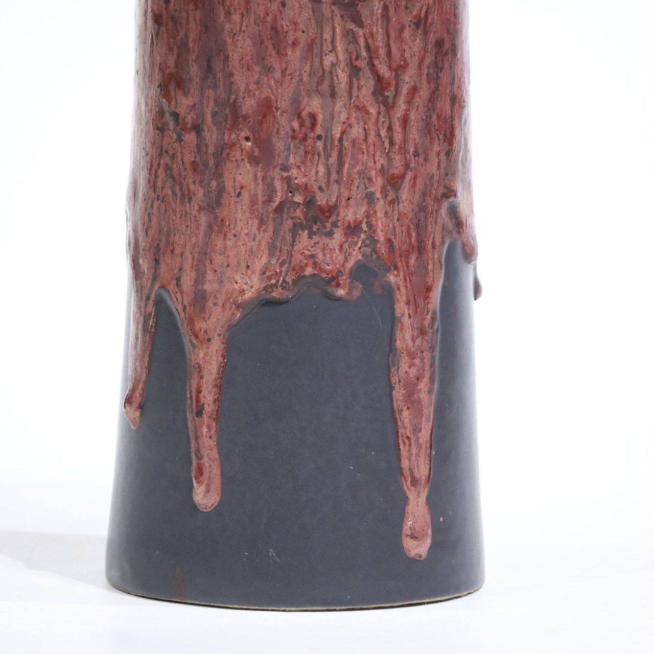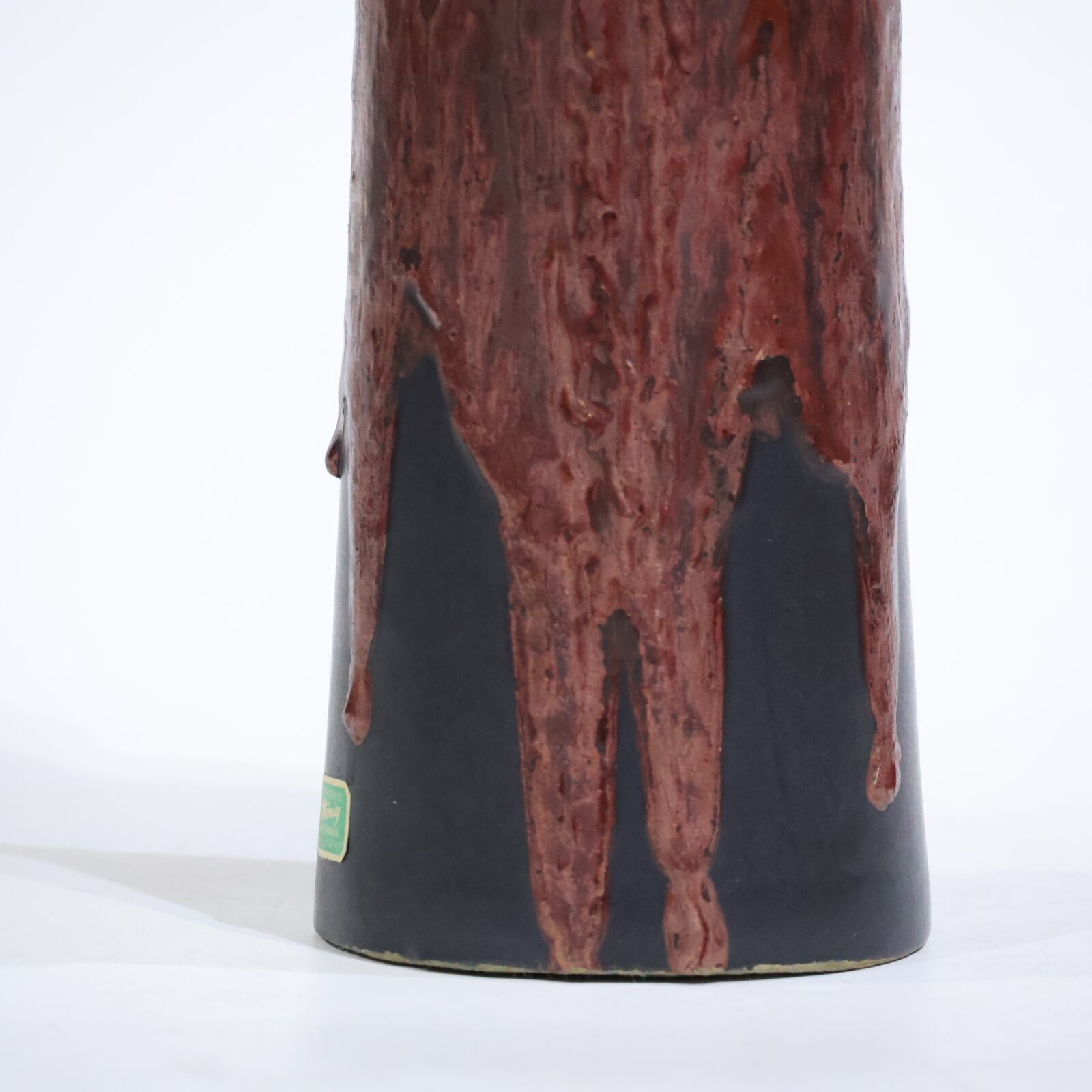 上部から流れ落ちるような赤褐色の釉薬は、Fat Lavaの象徴的な表現技法。光沢のある釉薬がまるで溶岩のように滴り、下部のマットブラックとのコントラストが力強さと奥行きを演出しています。