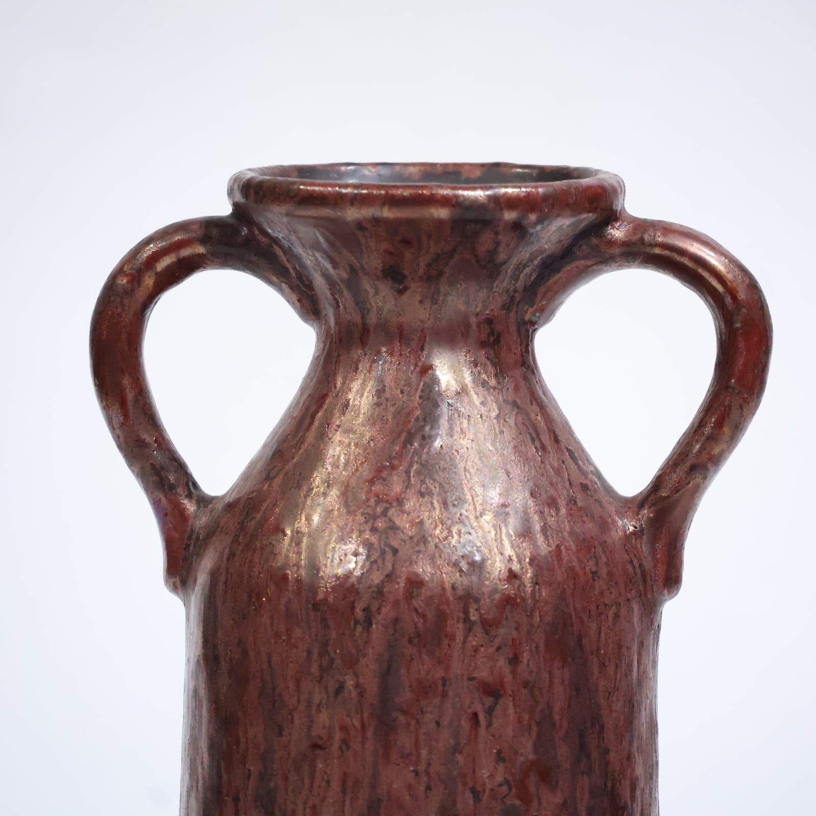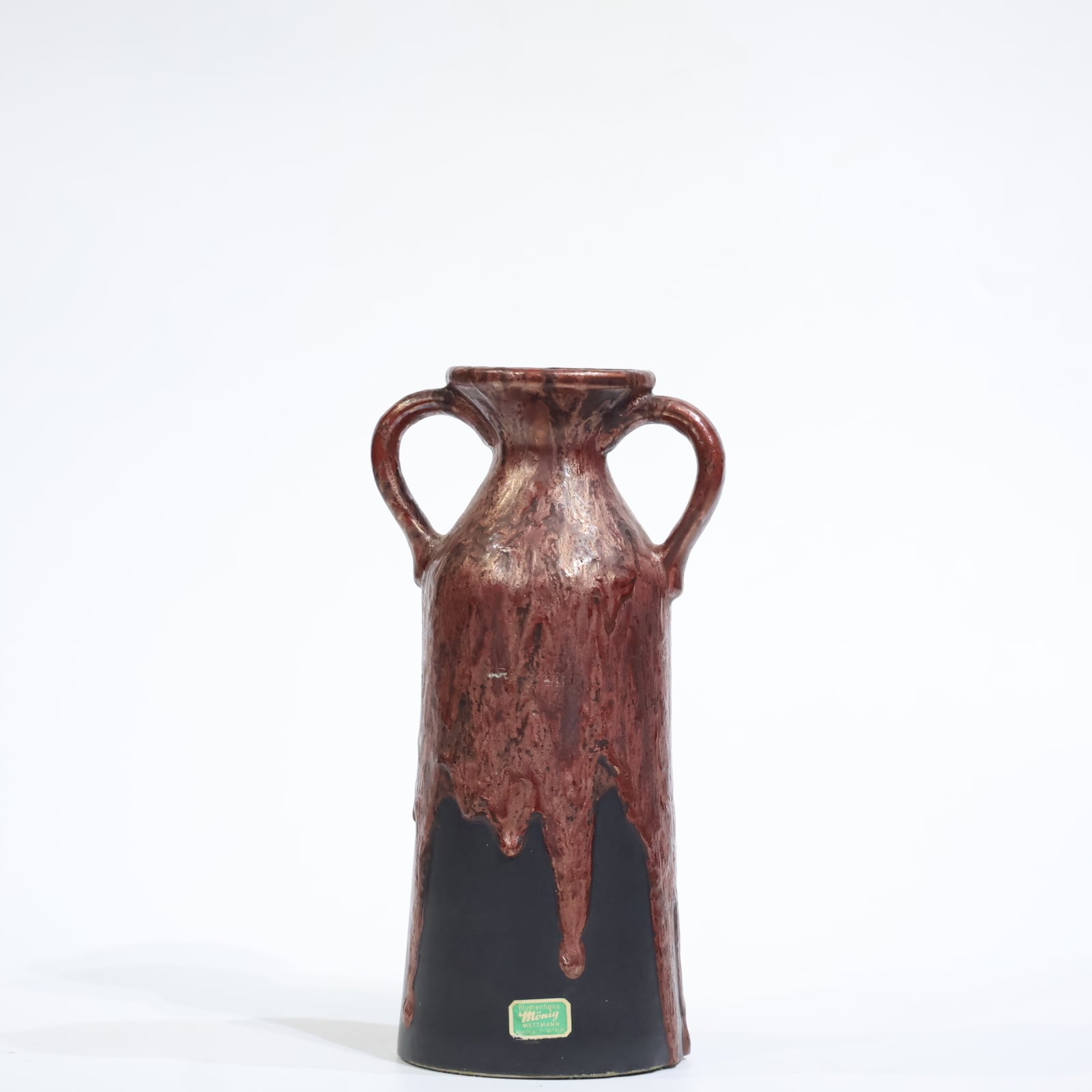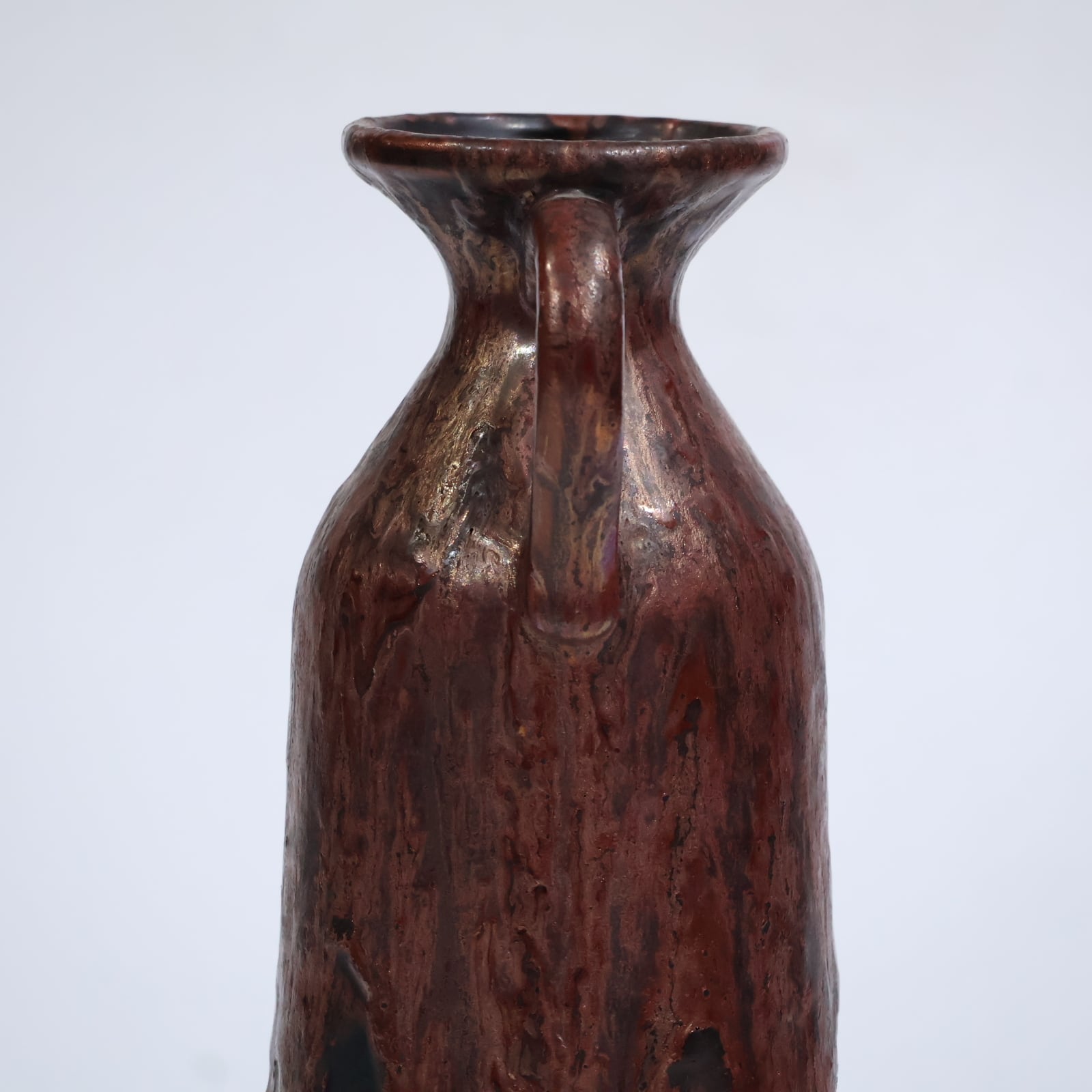 上部から流れ落ちるような赤褐色の釉薬は、Fat Lavaの象徴的な表現技法。光沢のある釉薬がまるで溶岩のように滴り、下部のマットブラックとのコントラストが力強さと奥行きを演出しています。
