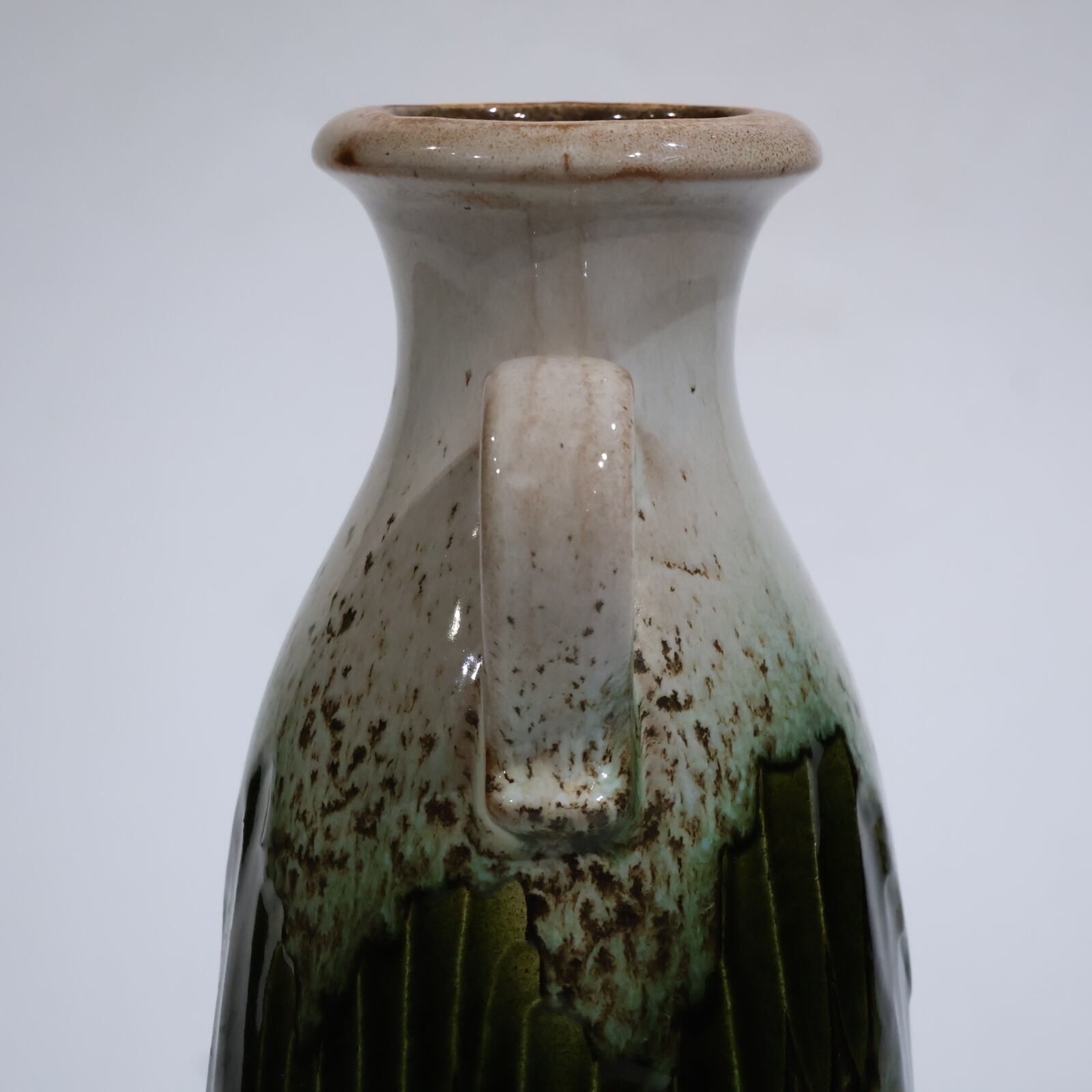 乳白色に近い素地に、滴るような深緑の釉薬が美しいコントラストを描いています。