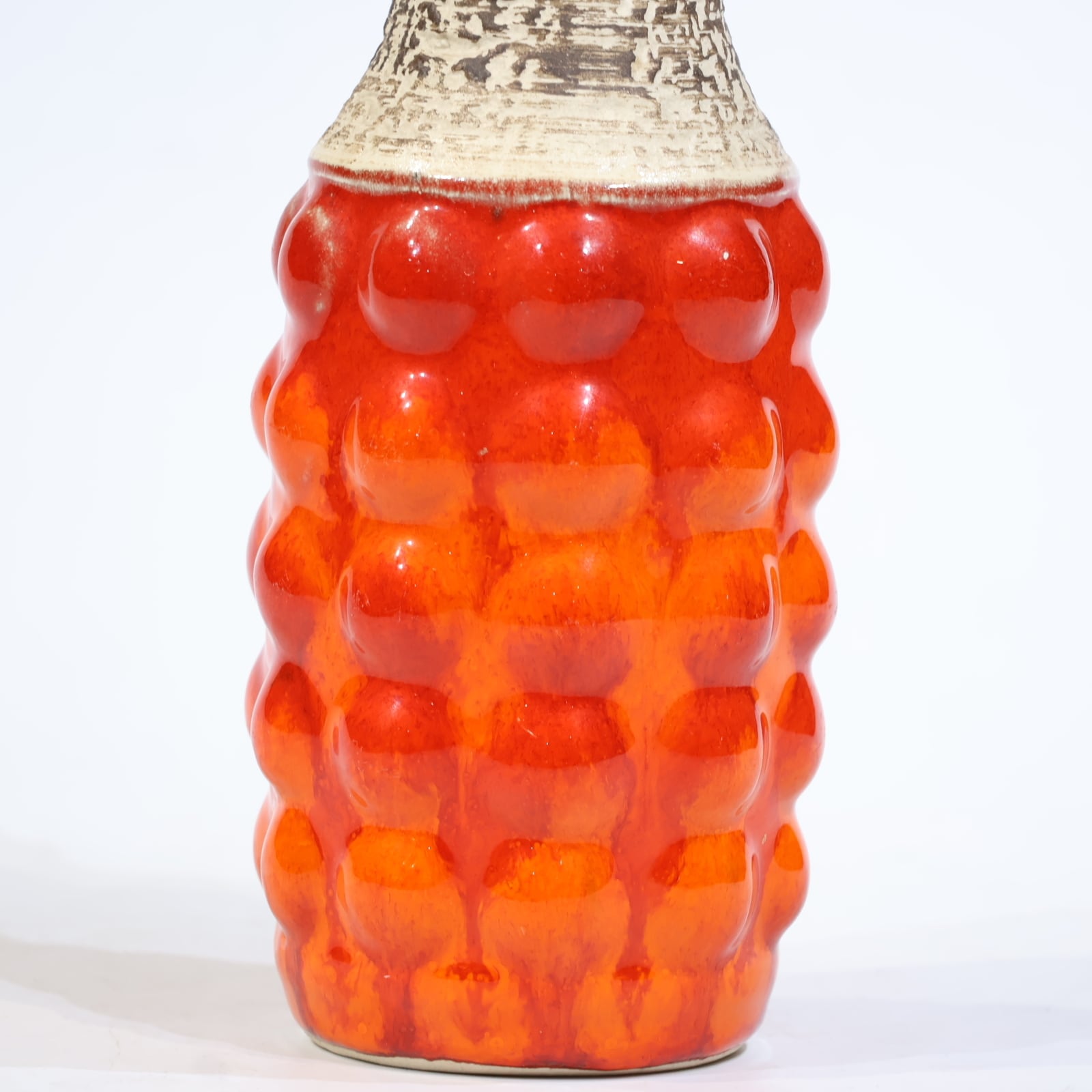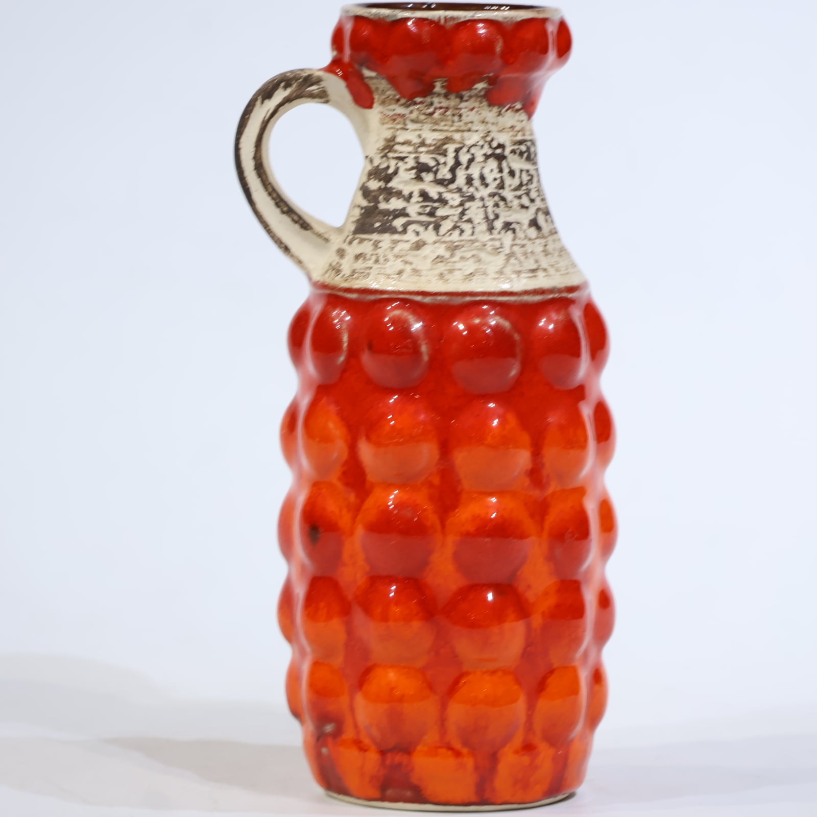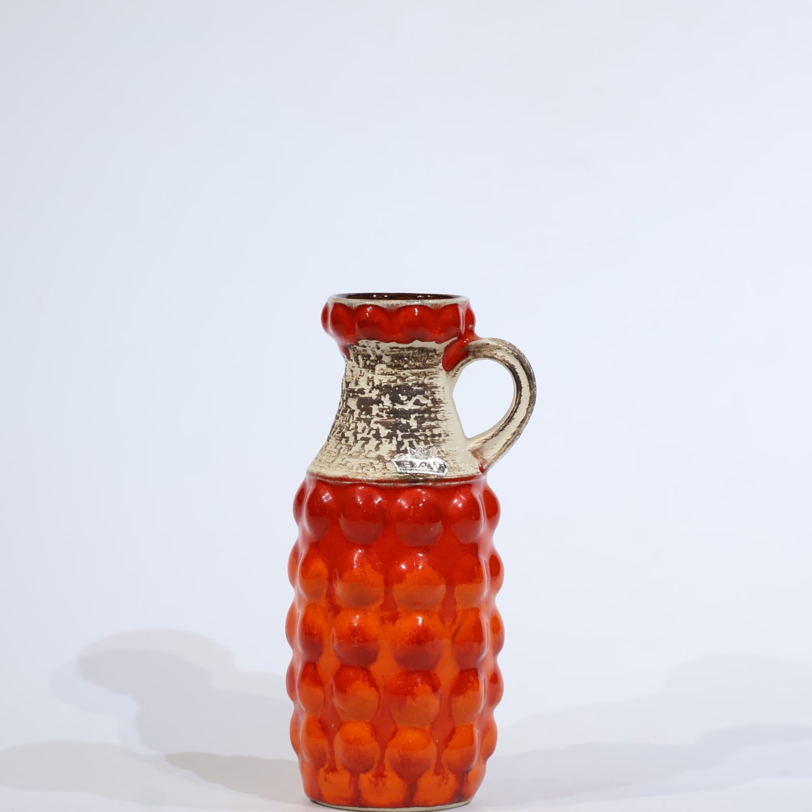 1960年代からのスタイルとしては、 当時広く流行していた色彩の釉薬(マットまたは 光沢あり)を使用し、シンプルなフォルムの上に様 式化した花の図柄の型押しや幾何学模様をあし らったものが多く、Scheurichのも のと混同されがちです。