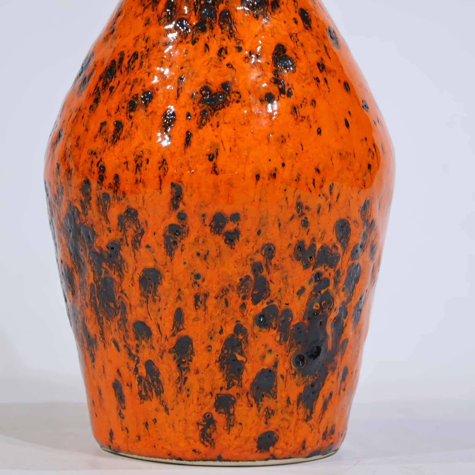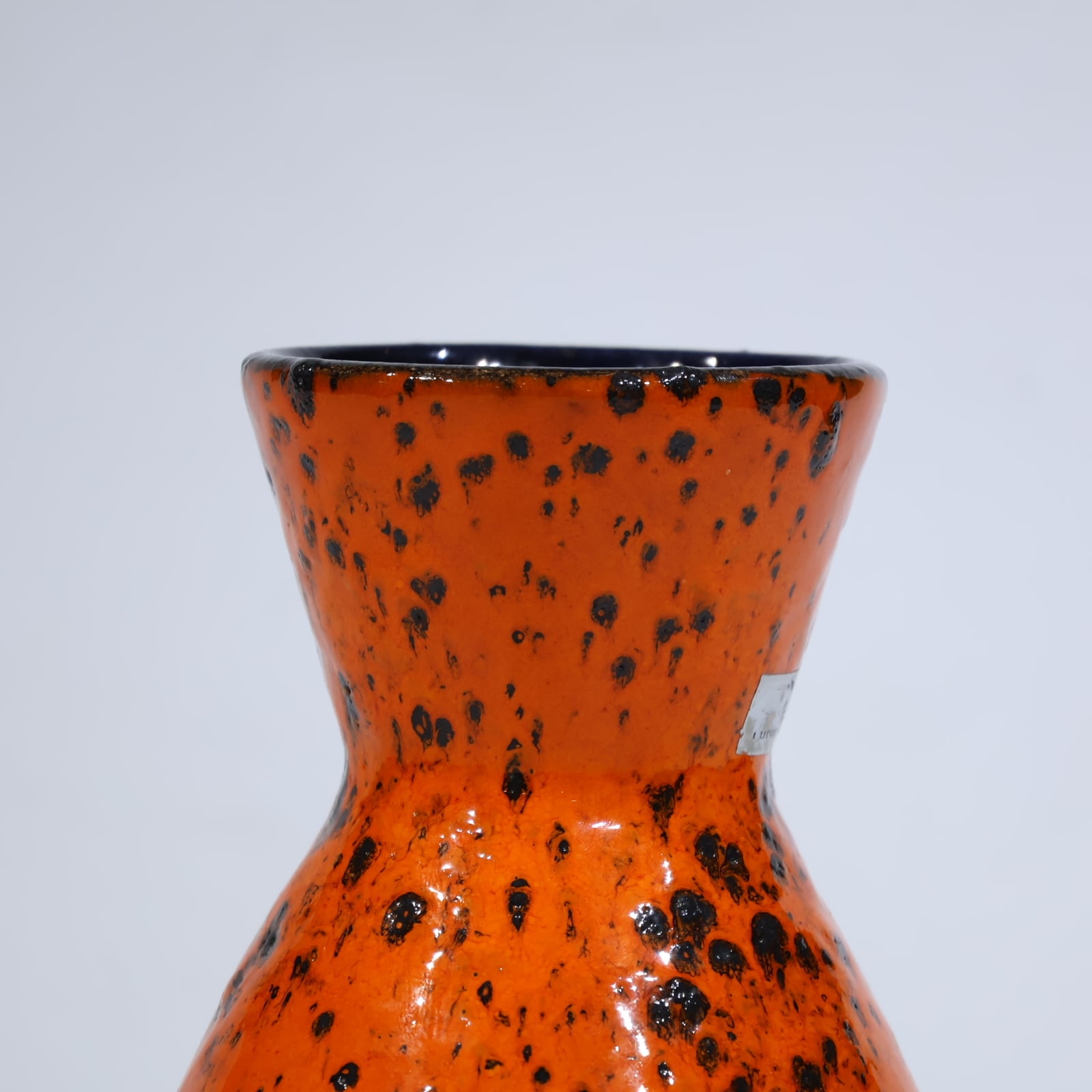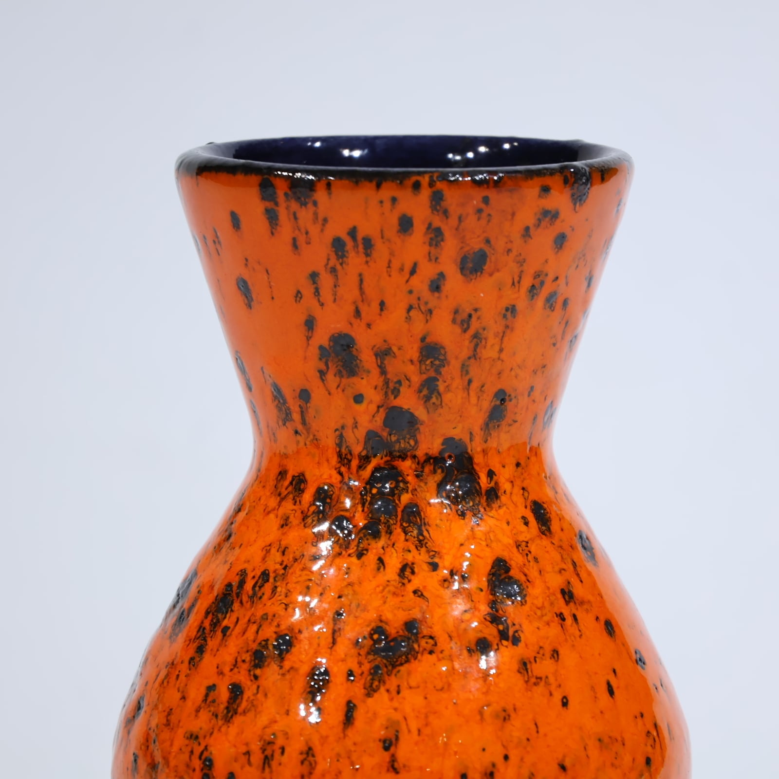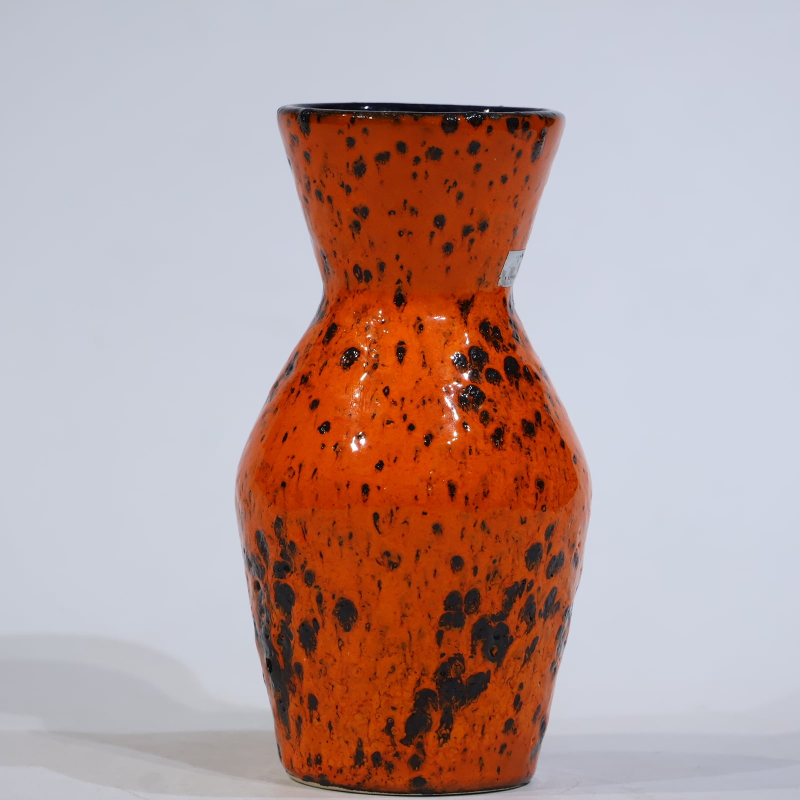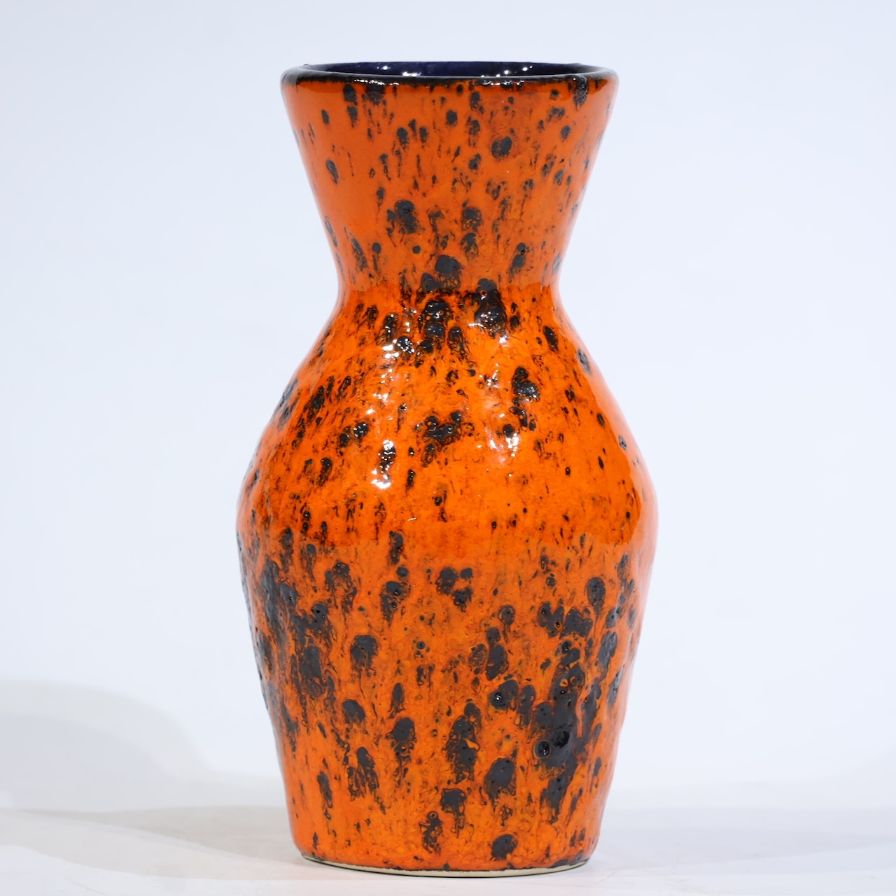 同社は急速に成長し、1950~80年代には陶 器製造の分野でドイツ最大のメーカーとなり、今日も確固たる地位を維持しています。形状に加えて釉薬でも、当時は最も幅広い品揃えを誇った他、輸出量も最大だったため、現在でも同社の製品はよく見られます。特に円筒形を基調にし たシンプルな形状で、型押し模様のある床置き 花瓶が代表的。色彩については当時主流だっ た赤やオレンジから、クリーム、ベージュ、茶色 などが多くを占めています。