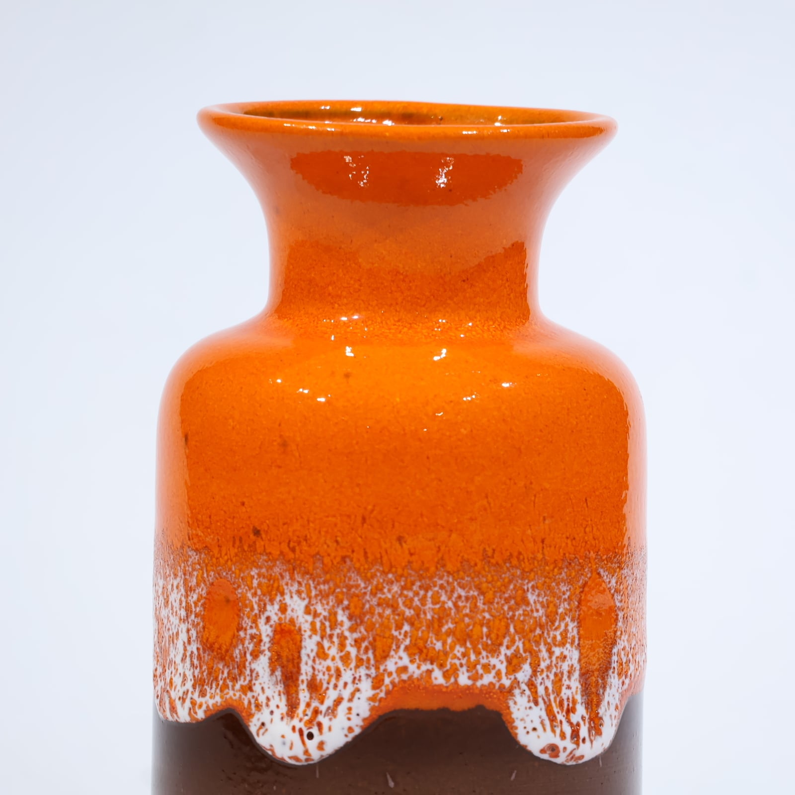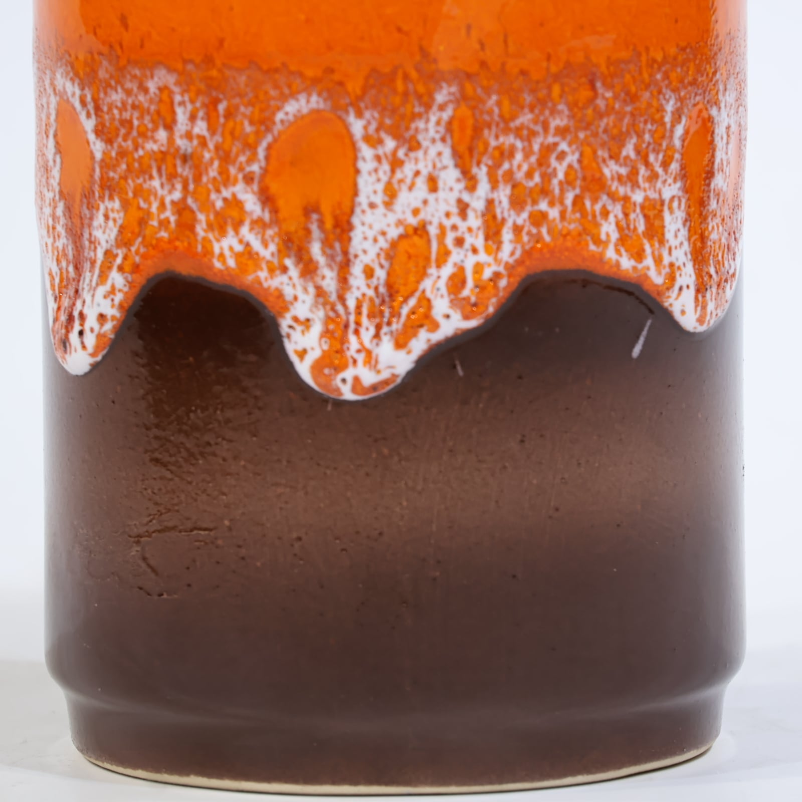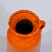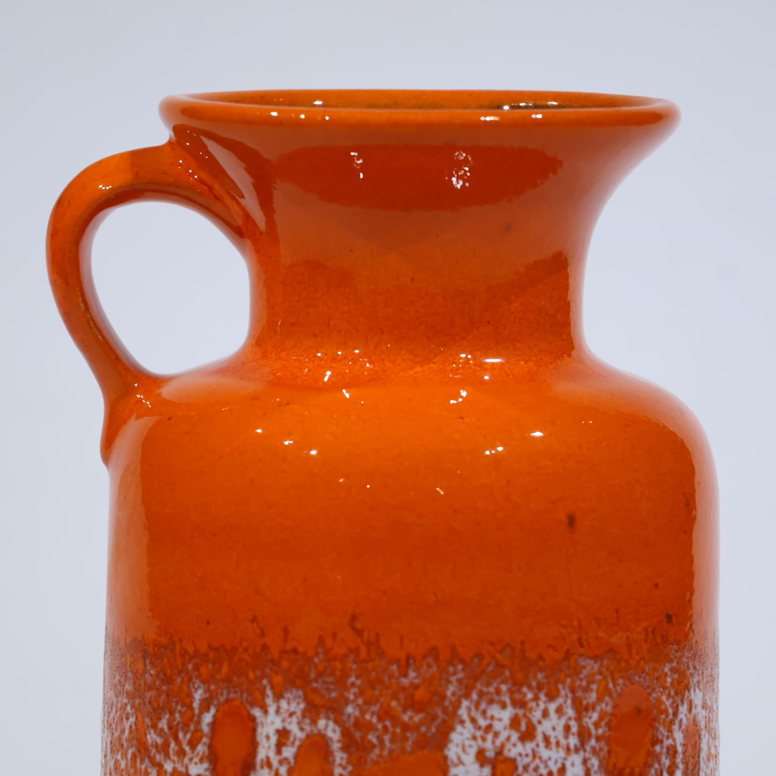 Fat Lava期特有の力強い釉薬表現と、Jasbaらしい造形の美しさが見事に調和した作品。視線を奪う鮮烈な色彩ながら、陰影のある質感が空間に深みを与えます。1970年代ドイツ陶芸のエネルギーをそのまま封じ込めたような一点です。