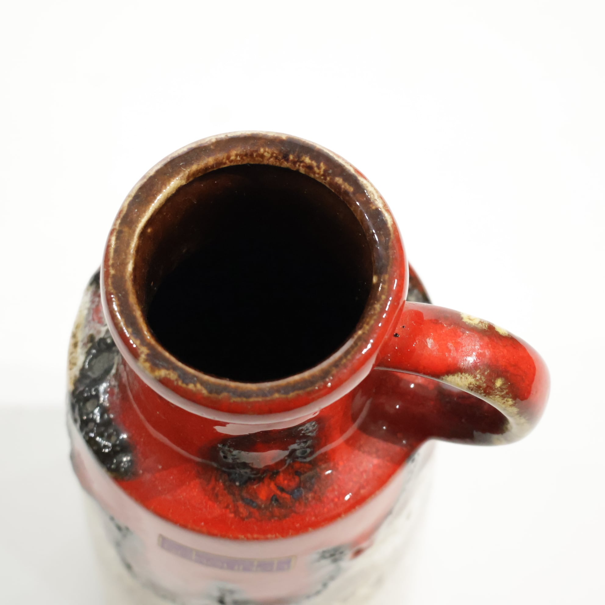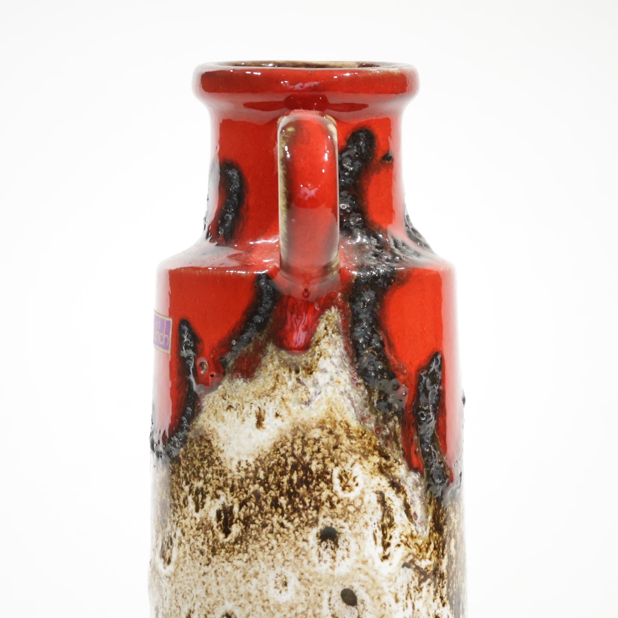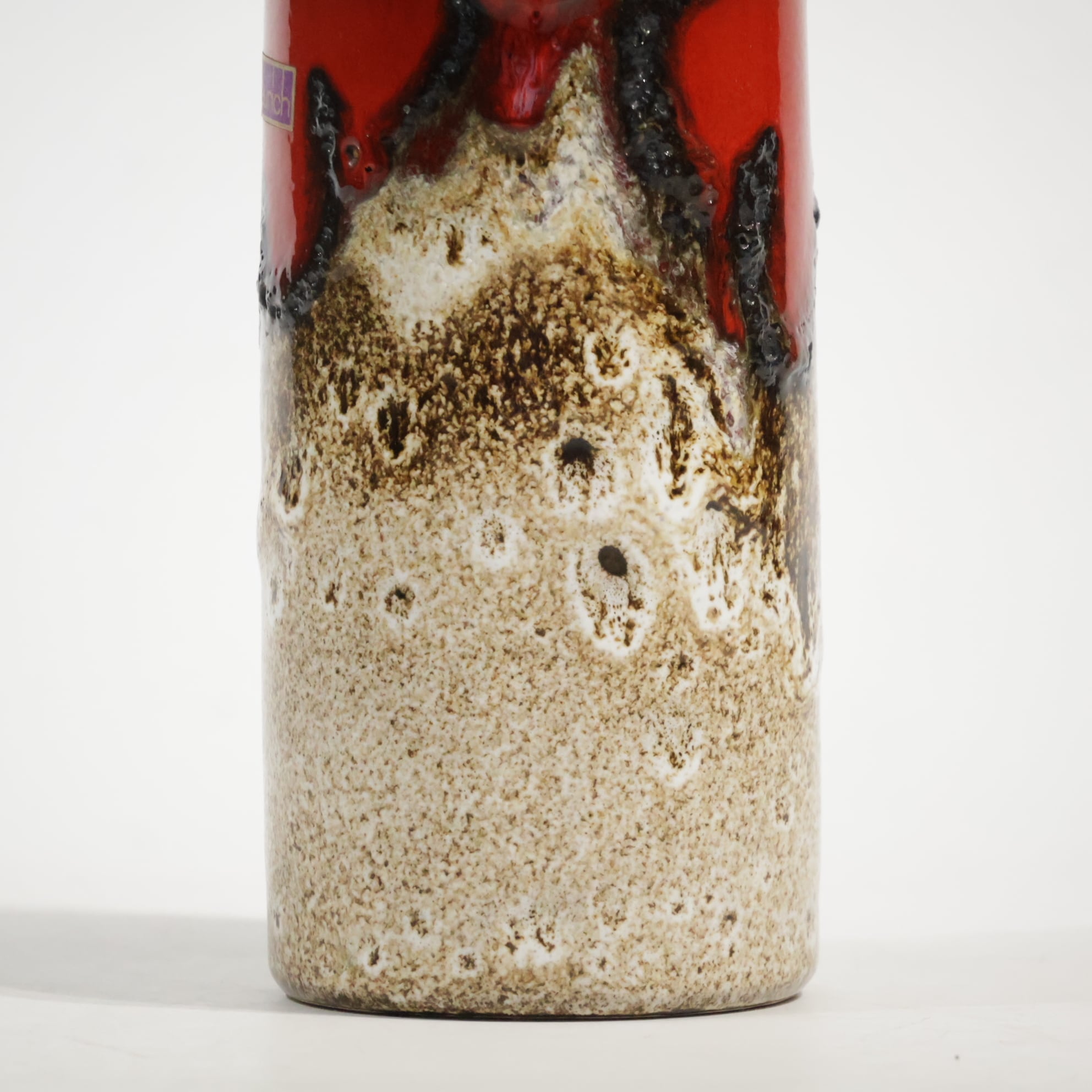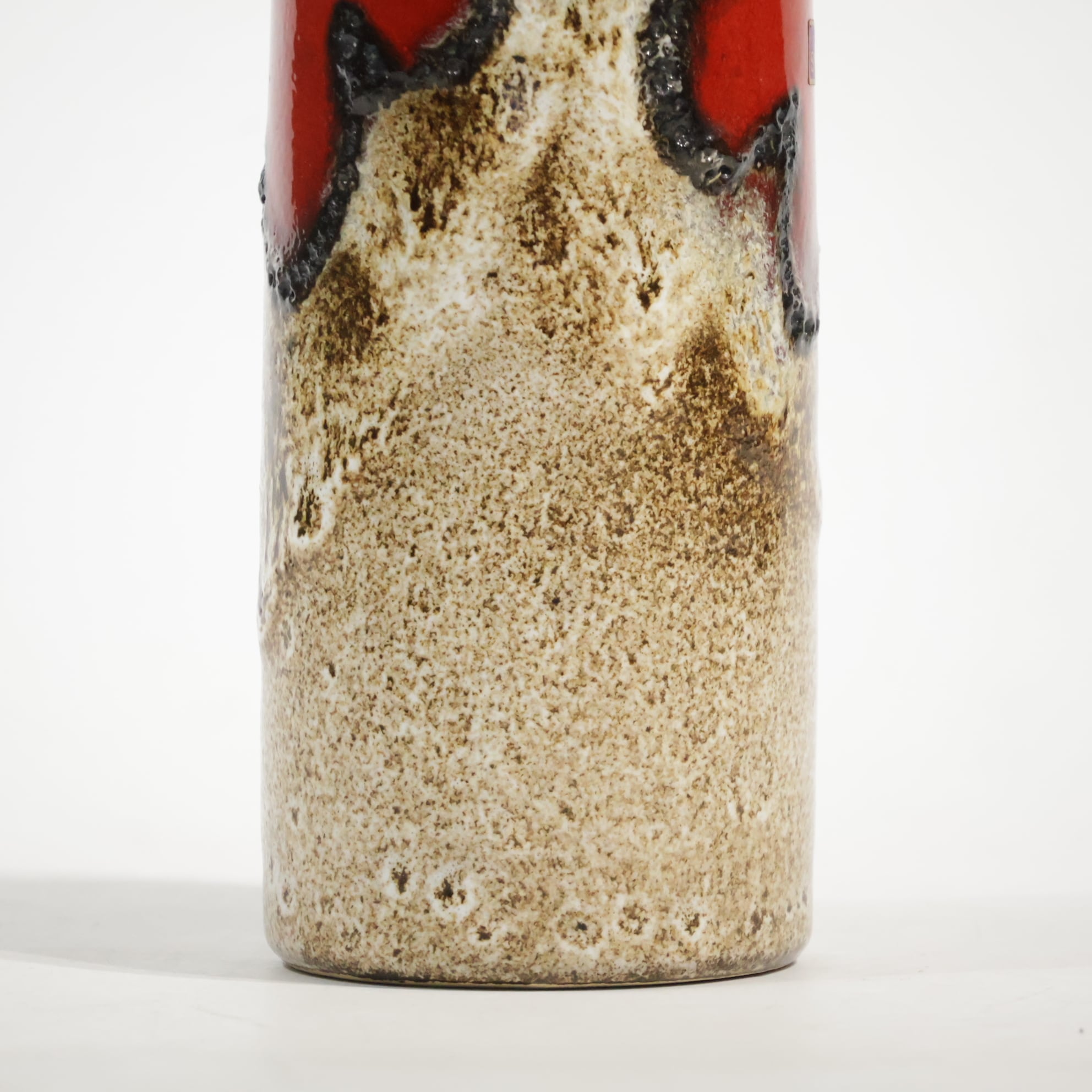 同社は急速に成長し、1950~80年代には陶 器製造の分野でドイツ最大のメーカーとなり、今日も確固たる地位を維持しています。形状に加えて釉薬でも、当時は最も幅広い品揃えを誇った他、輸出量も最大だったため、現在でも同社の製品はよく見られます。特に円筒形を基調にし たシンプルな形状で、型押し模様のある床置き 花瓶が代表的。色彩については当時主流だっ た赤やオレンジから、クリーム、ベージュ、茶色 などが多くを占めています。
