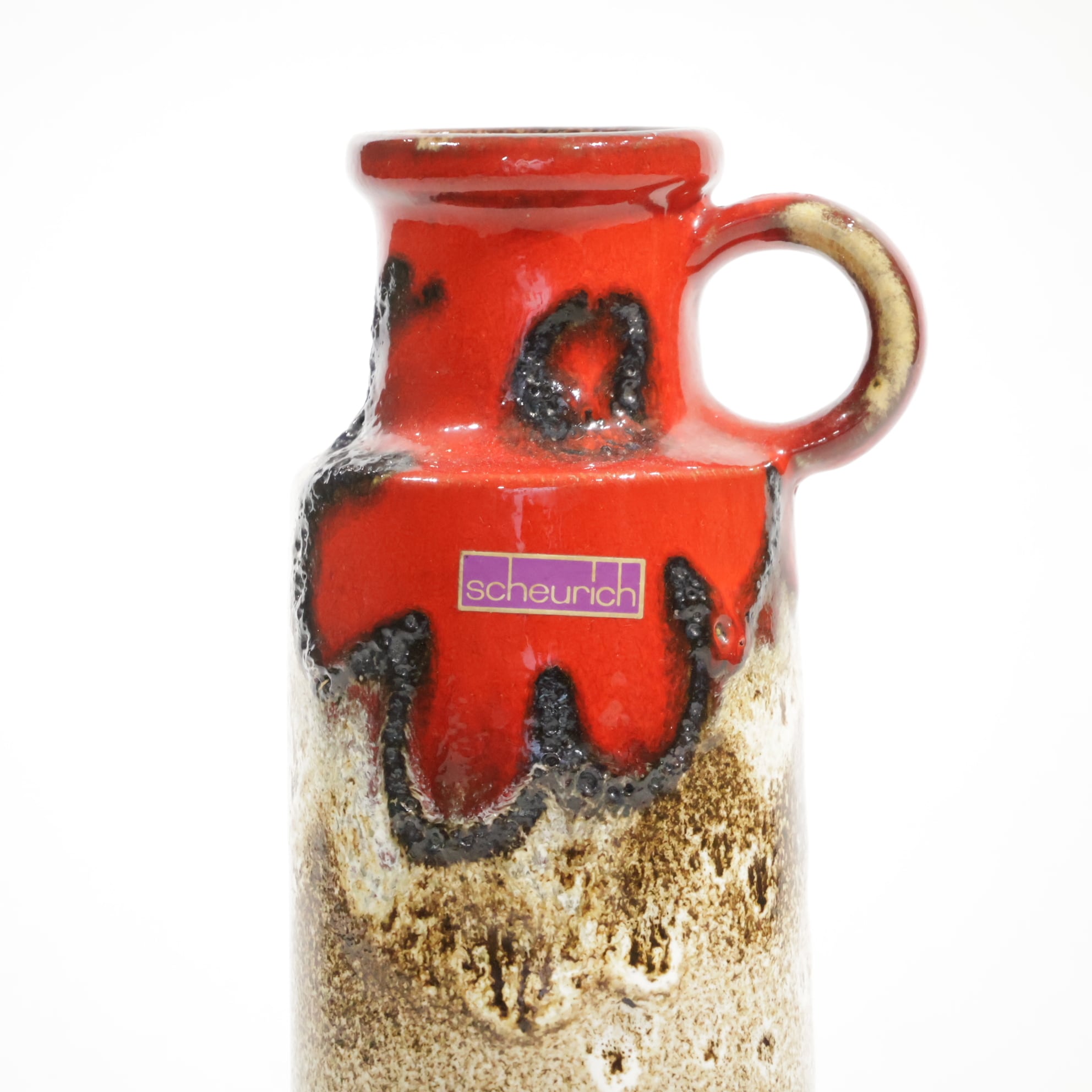 当時のドイツの窯業の黄金期を支えた最もメジャーなレーベルの一つです。(現在は園芸用品の生産にシフトチェンジ)。Scheurich(シューリッヒ)は、元々1927年 にAlois Scheurich(アロイス・シューリッヒ)に よって創 設され 、手頃な価格の陶器やガラス製の装飾品 、家 庭用品などを幅広販売していた。共同運営者が参画してからはScheurich&Greulich( シューリッヒ &グロイリッヒ 、Greulichは独語で“凄まじい”の意)という社名 で知られ、この頃の作品には「S&G」のラベルが 貼られたものが多く見られます。