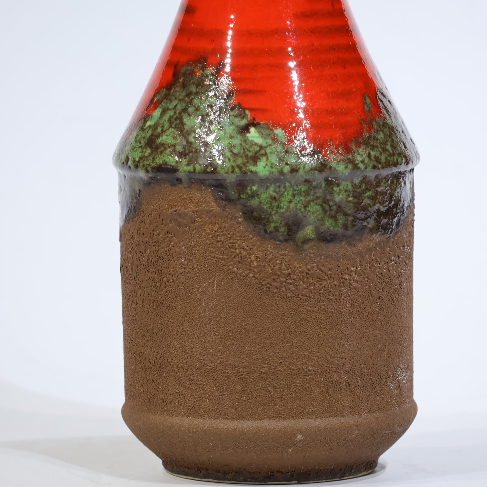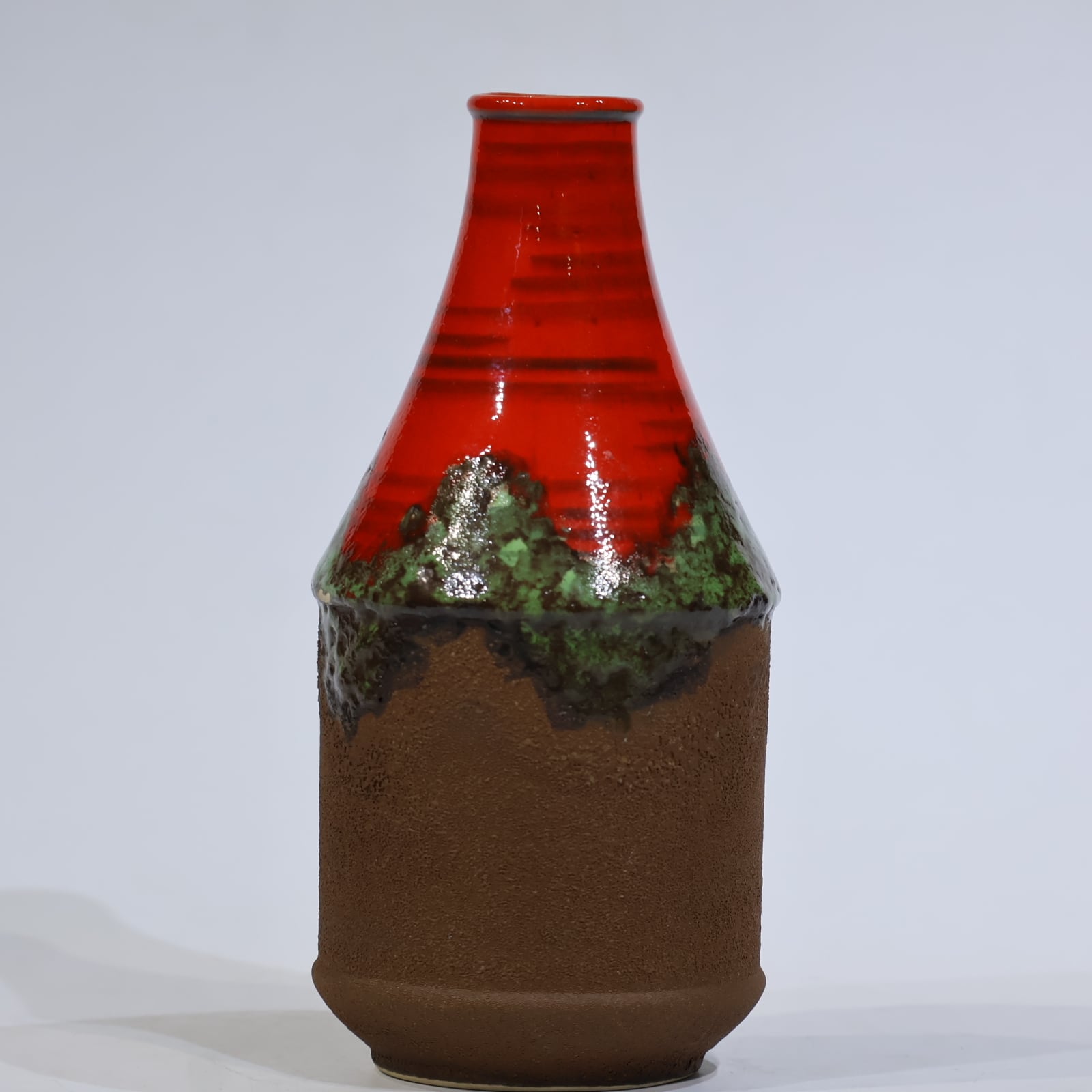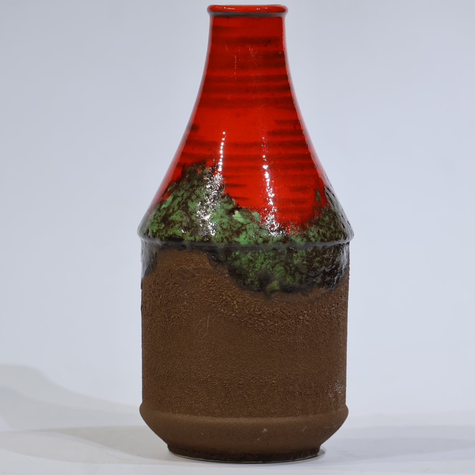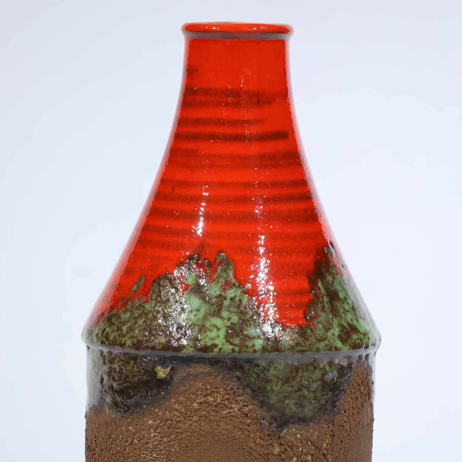 釉薬の重なりと立体的な構成が印象的な、Dümler & Breiden社製の一点。高さ25.1cm、すらりと伸びた縦長のフォルムが空間に垂直のリズムをもたらし、ディスプレイ性の高い造形です。