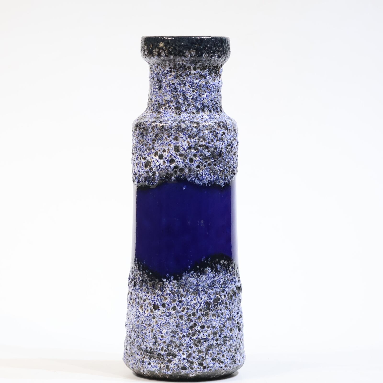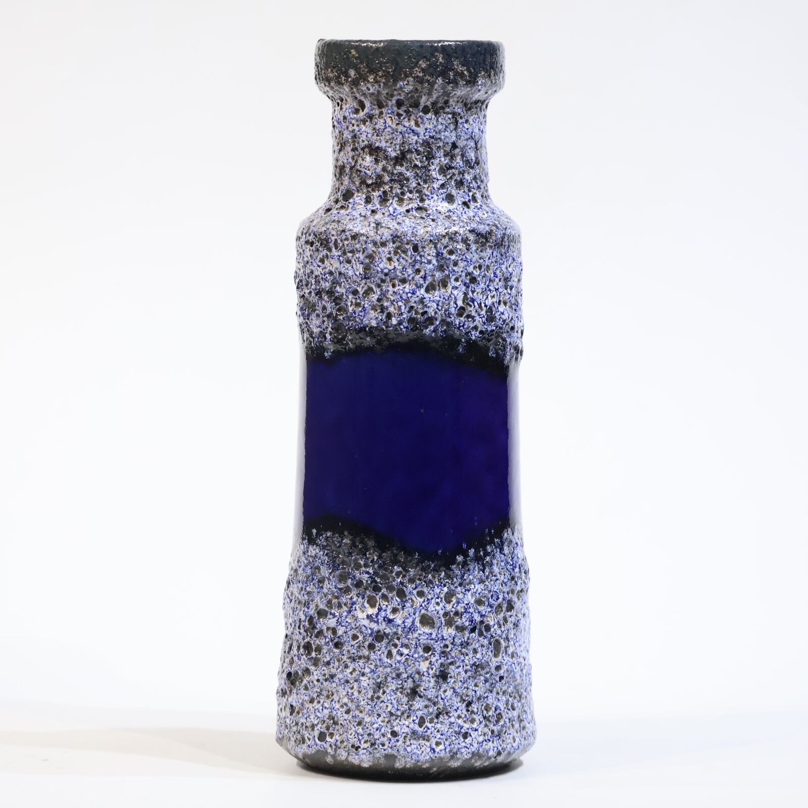 同社は急速に成長し、1950~80年代には陶 器製造の分野でドイツ最大のメーカーとなり、今日も確固たる地位を維持しています。形状に加えて釉薬でも、当時は最も幅広い品揃えを誇った他、輸出量も最大だったため、現在でも同社の製品はよく見られます。特に円筒形を基調にし たシンプルな形状で、型押し模様のある床置き 花瓶が代表的。色彩については当時主流だっ た赤やオレンジから、クリーム、ベージュ、茶色 などが多くを占めています。