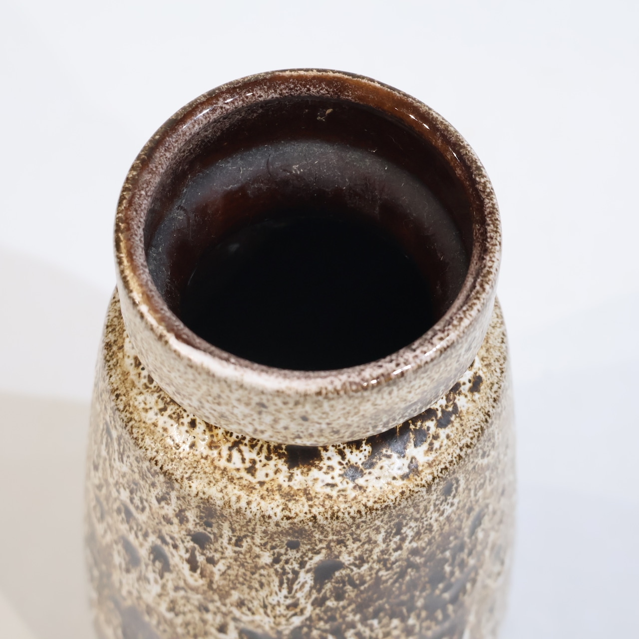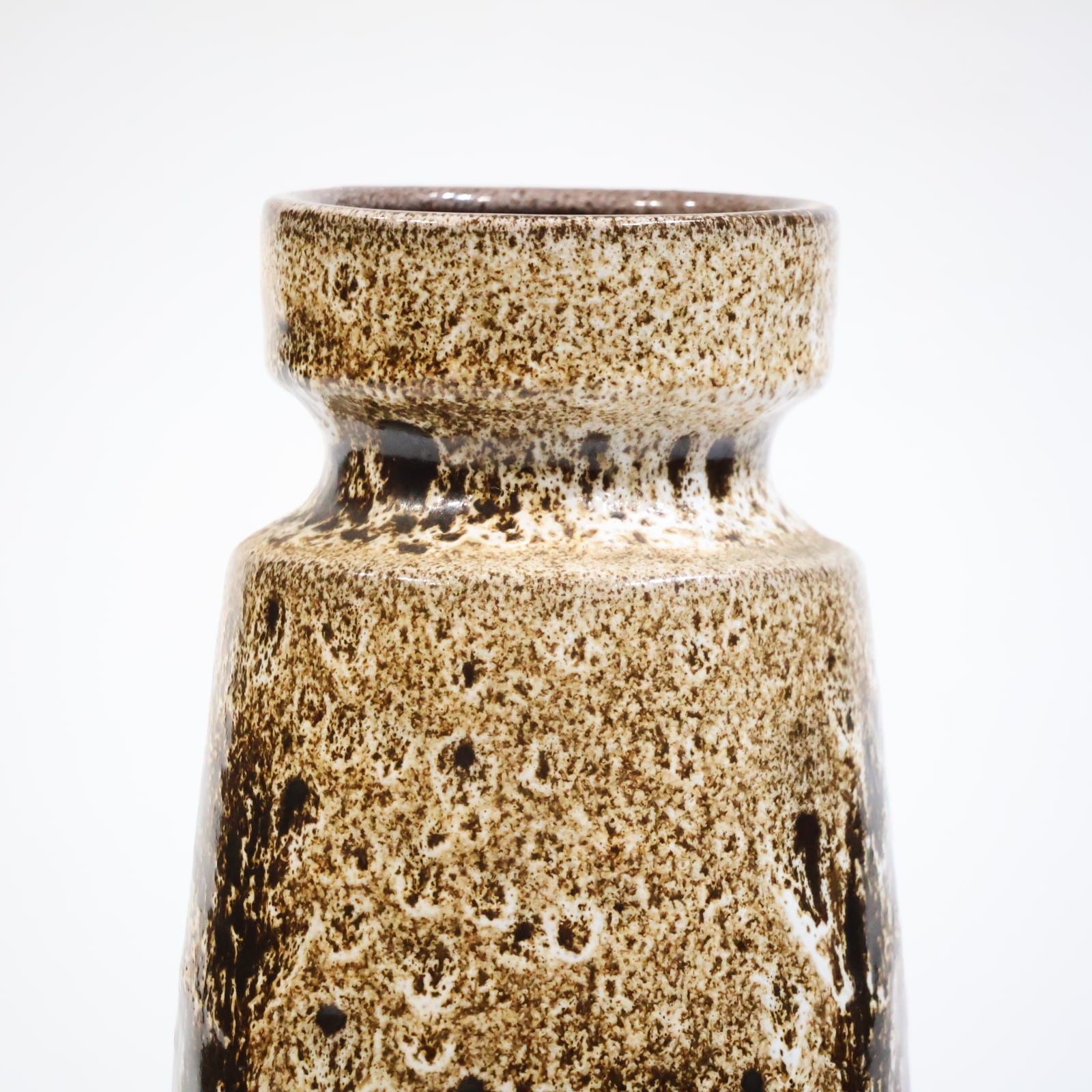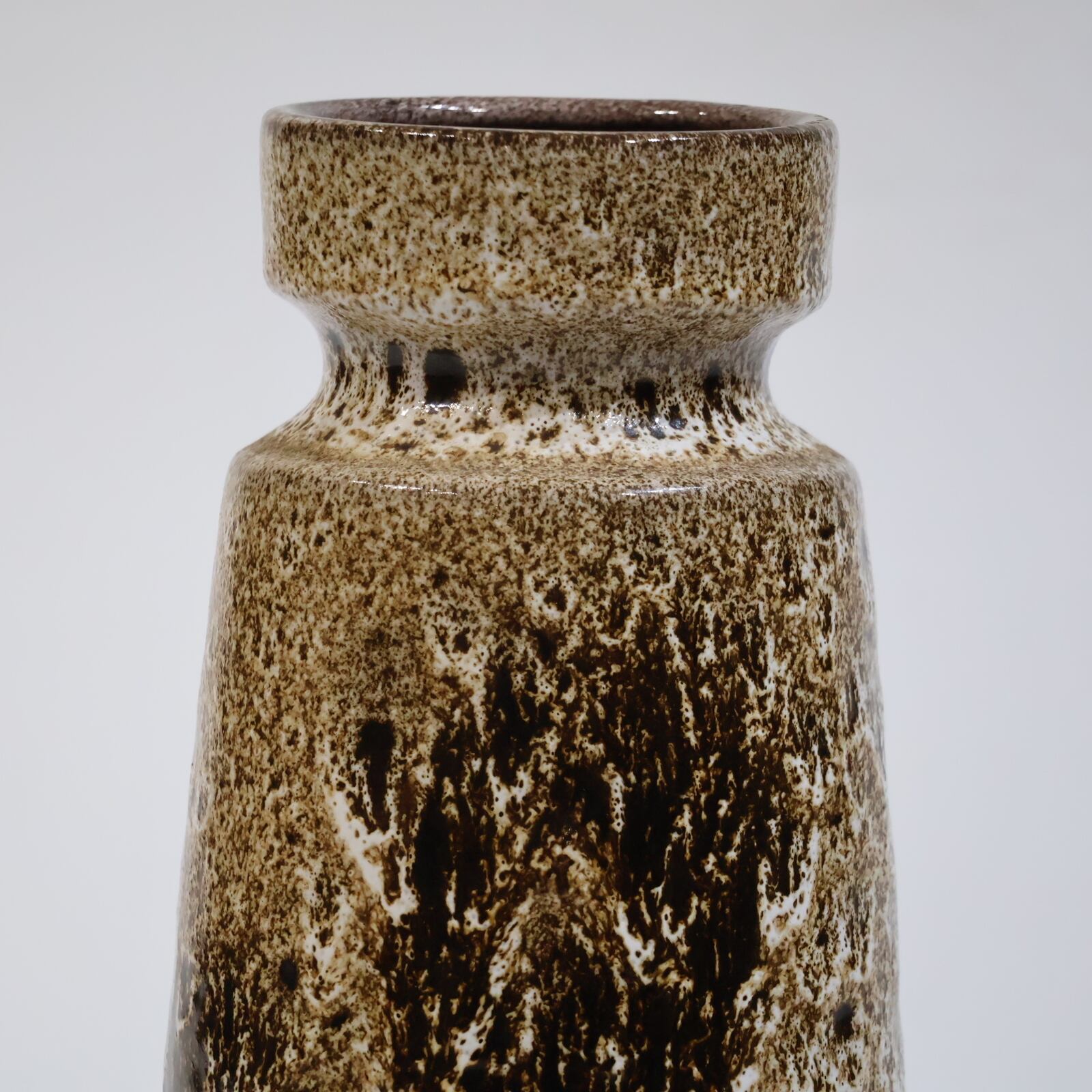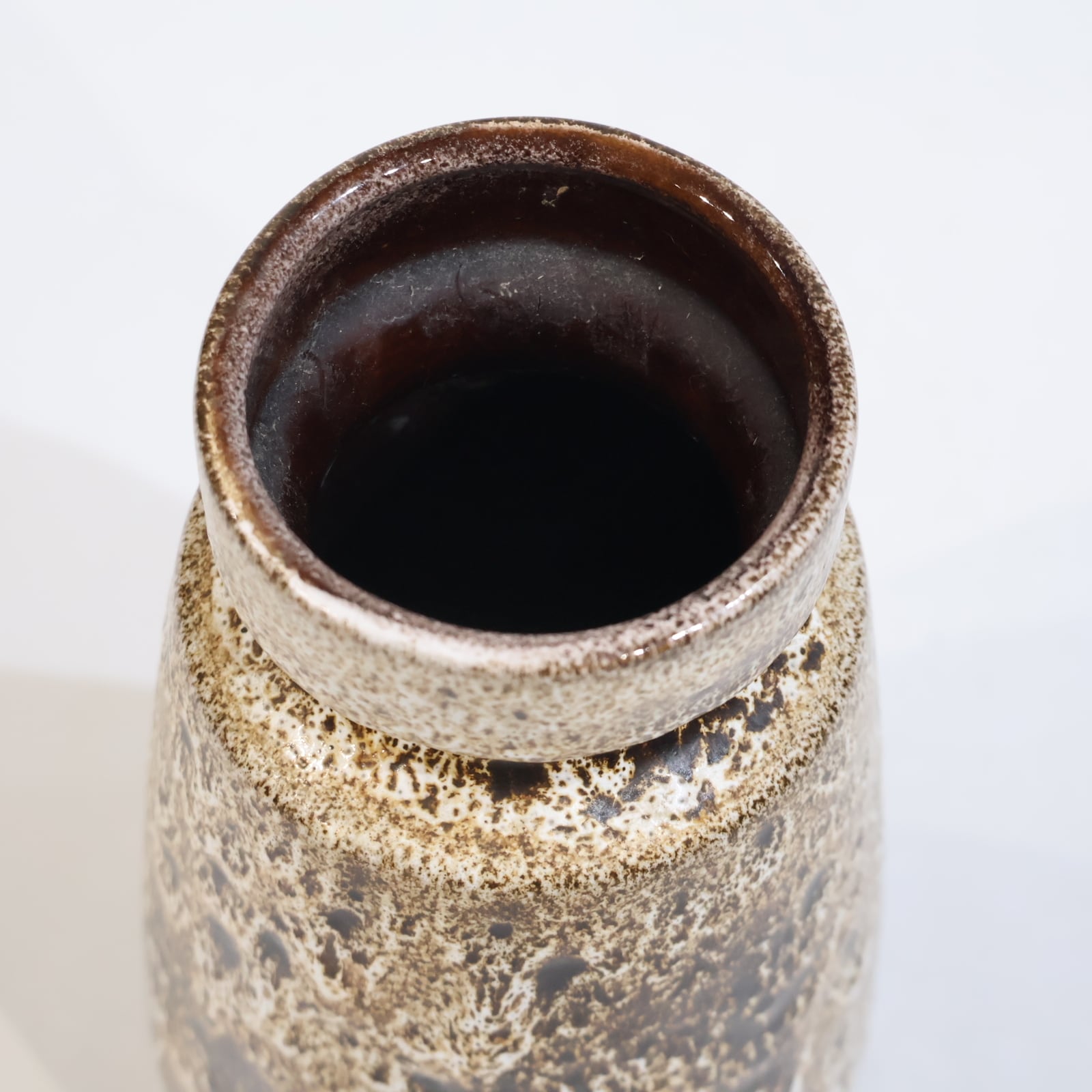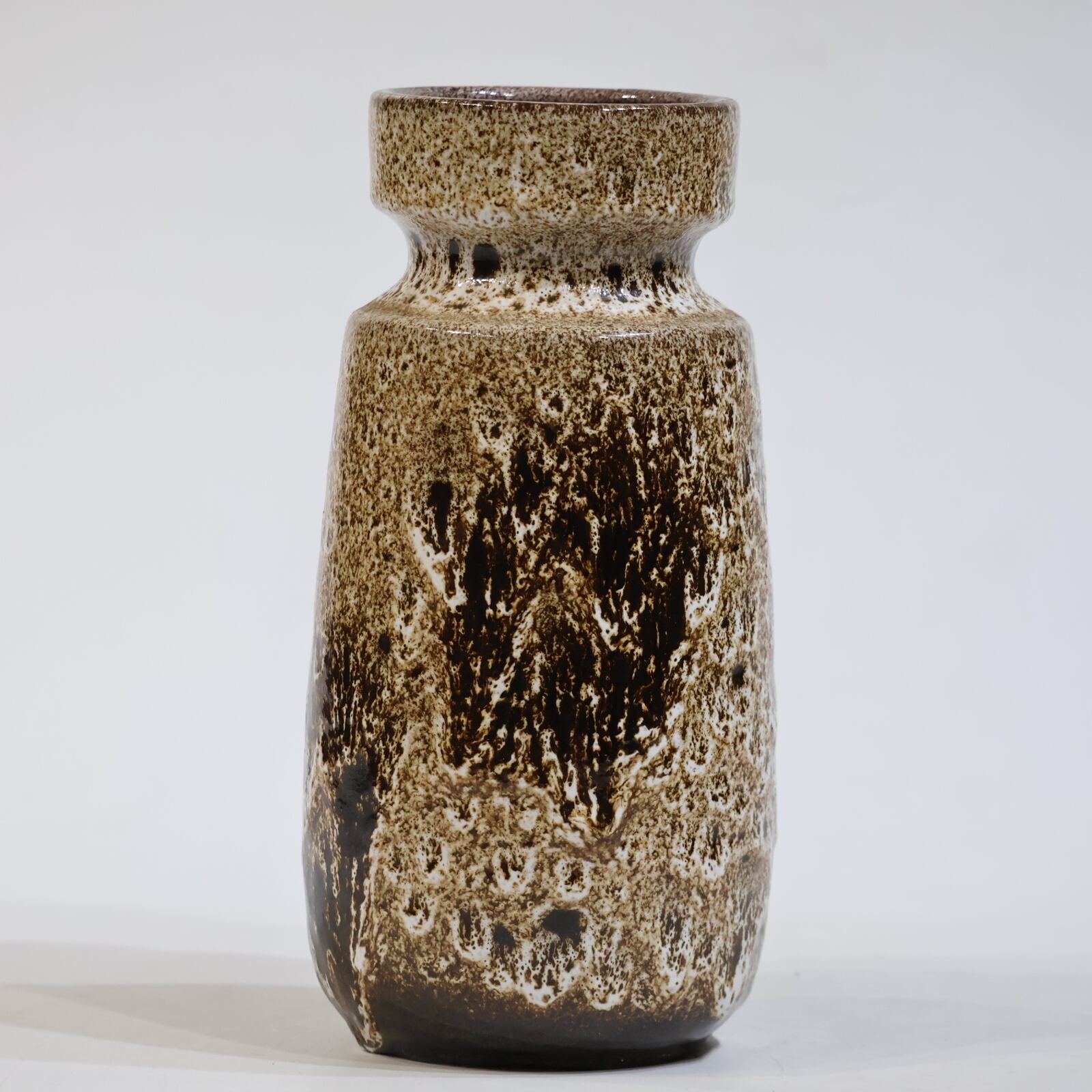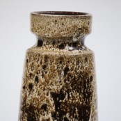 同社は急速に成長し、1950~80年代には陶 器製造の分野でドイツ最大のメーカーとなり、今日も確固たる地位を維持しています。形状に加えて釉薬でも、当時は最も幅広い品揃えを誇った他、輸出量も最大だったため、現在でも同社の製品はよく見られます。特に円筒形を基調にし たシンプルな形状で、型押し模様のある床置き 花瓶が代表的。色彩については当時主流だっ た赤やオレンジから、クリーム、ベージュ、茶色 などが多くを占めています。