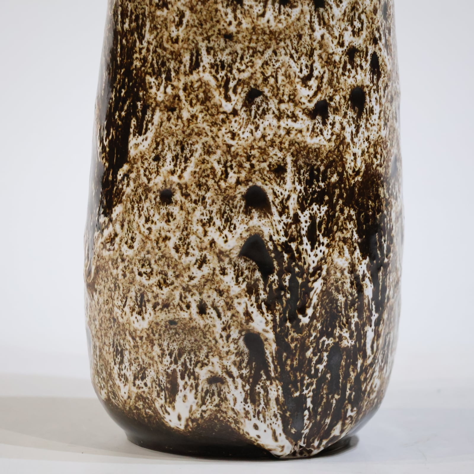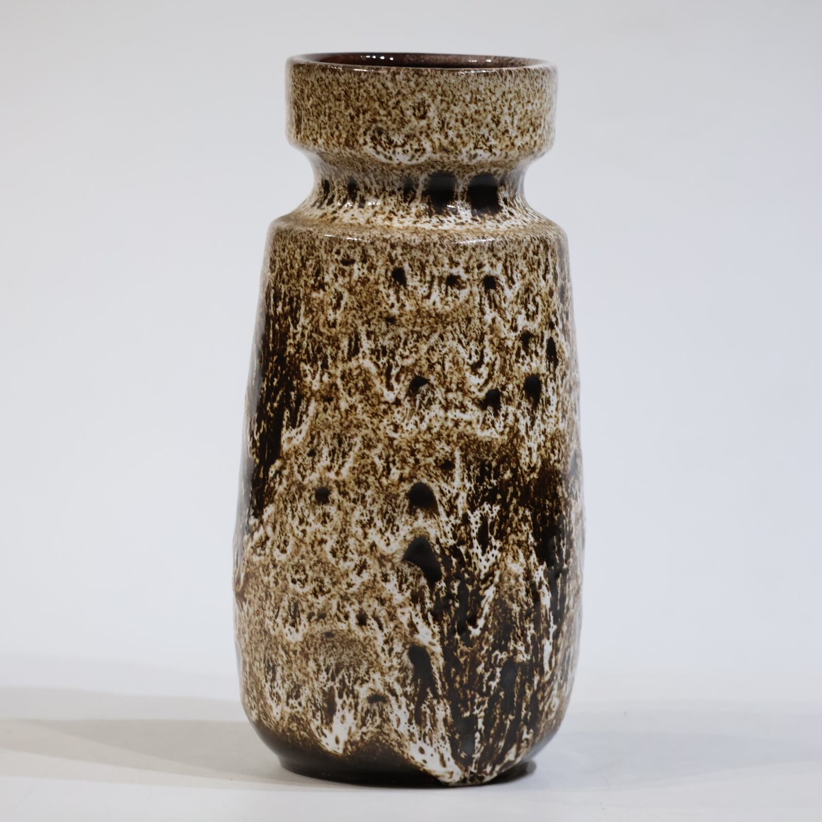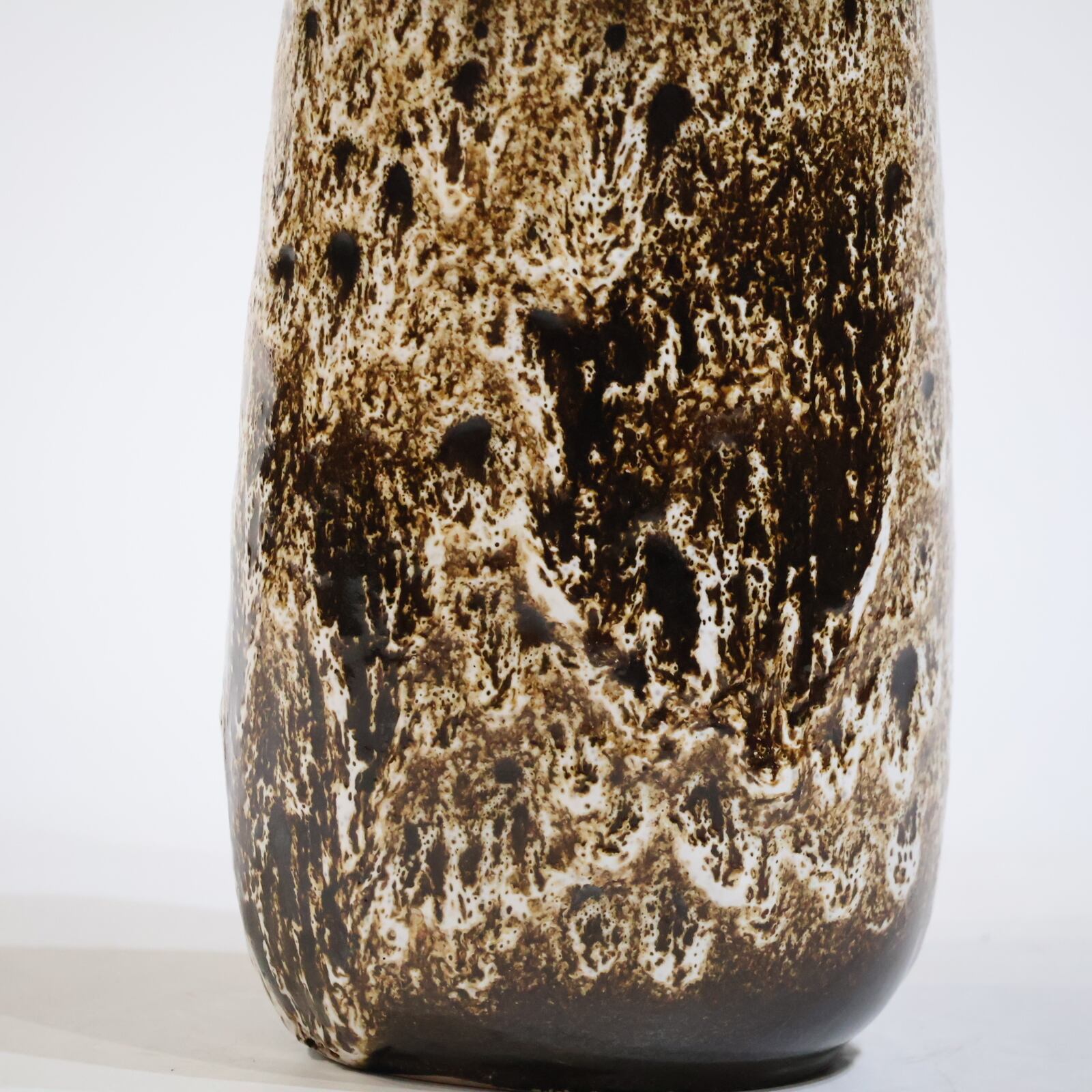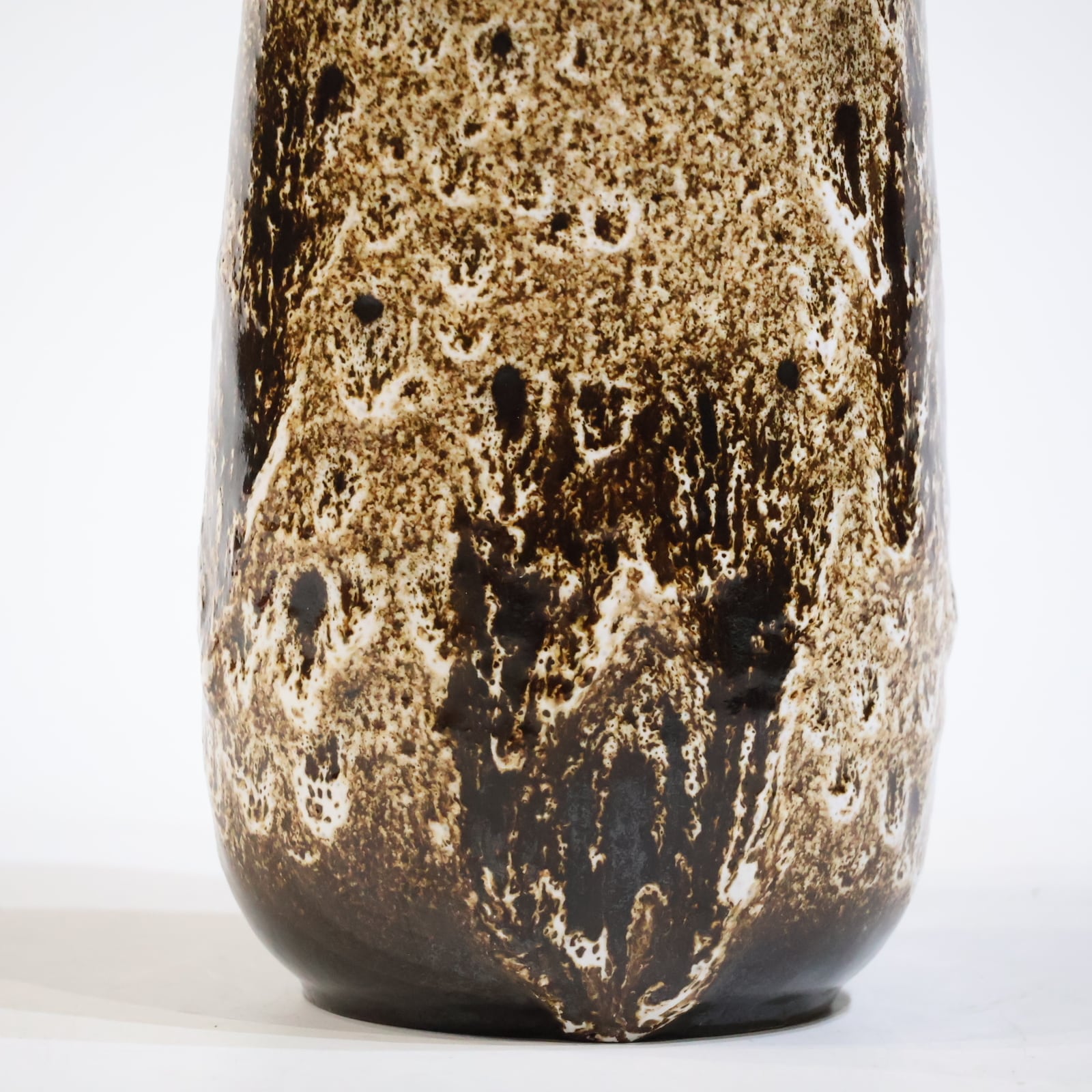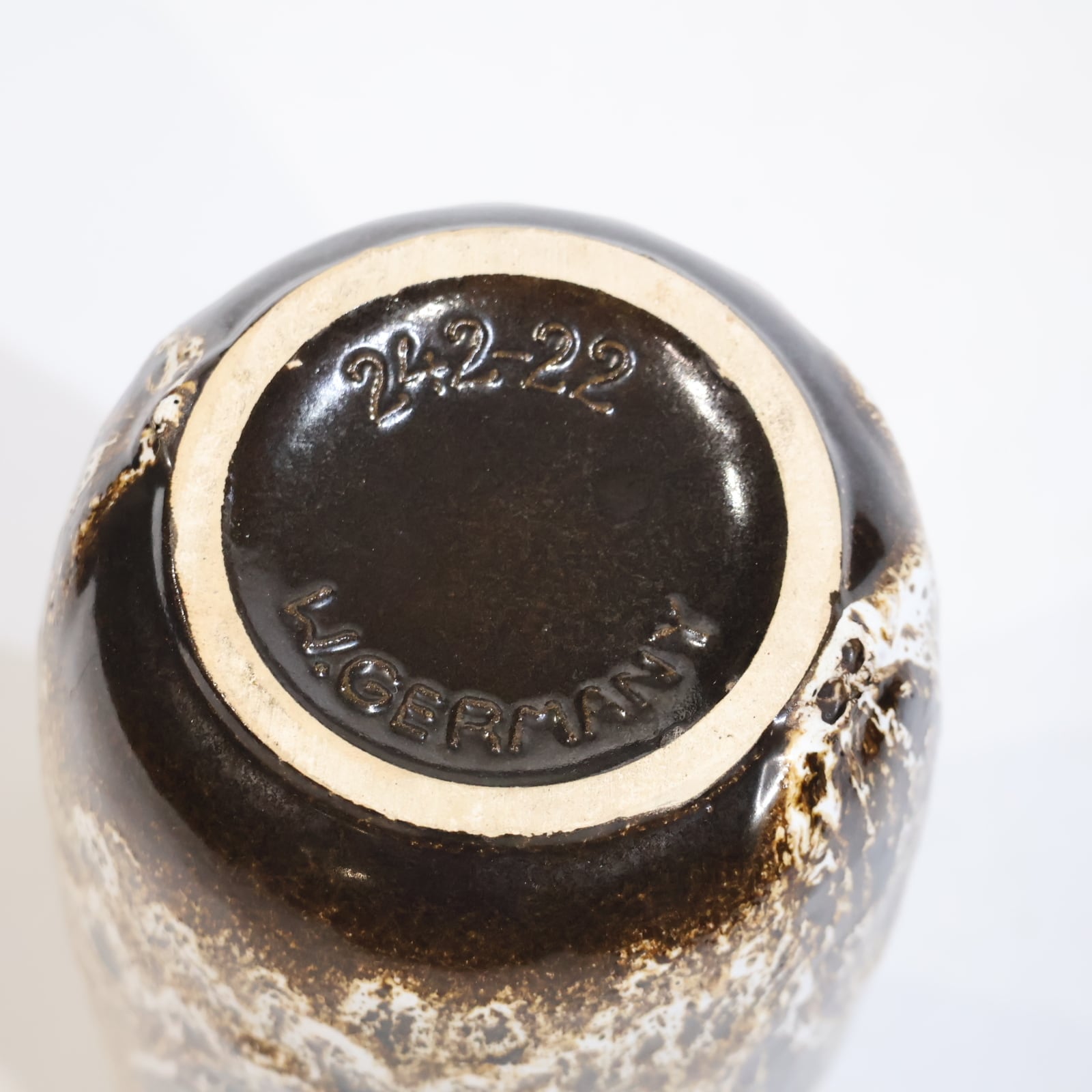 同社は急速に成長し、1950~80年代には陶 器製造の分野でドイツ最大のメーカーとなり、今日も確固たる地位を維持しています。形状に加えて釉薬でも、当時は最も幅広い品揃えを誇った他、輸出量も最大だったため、現在でも同社の製品はよく見られます。特に円筒形を基調にし たシンプルな形状で、型押し模様のある床置き 花瓶が代表的。色彩については当時主流だっ た赤やオレンジから、クリーム、ベージュ、茶色 などが多くを占めています。