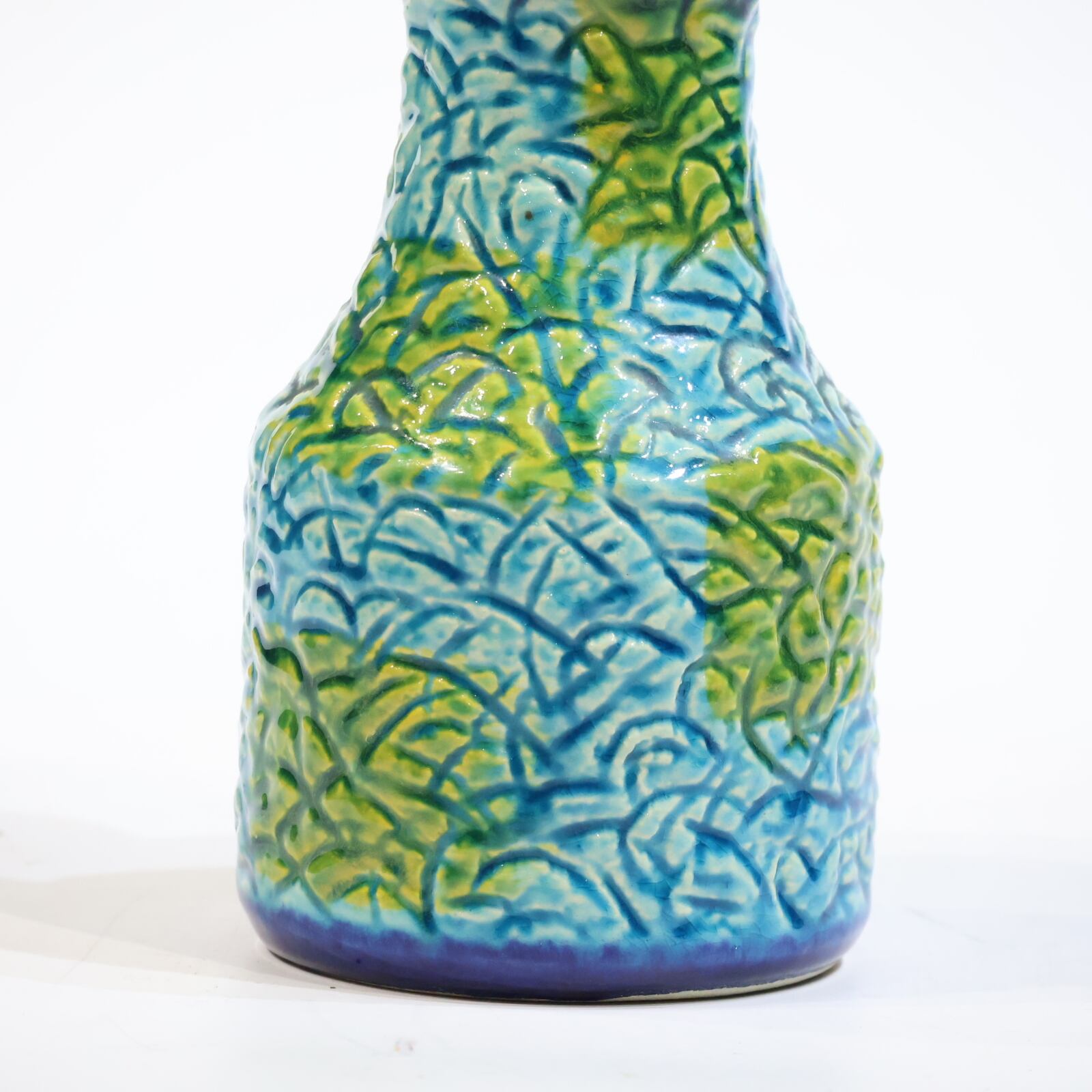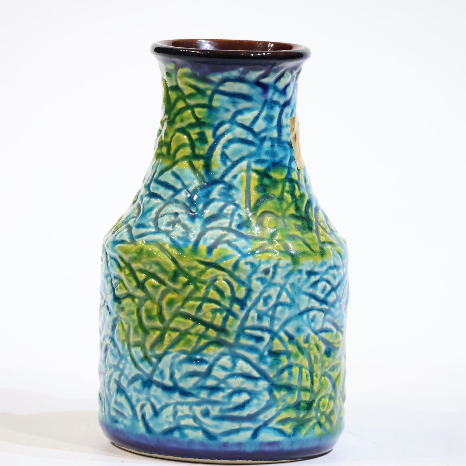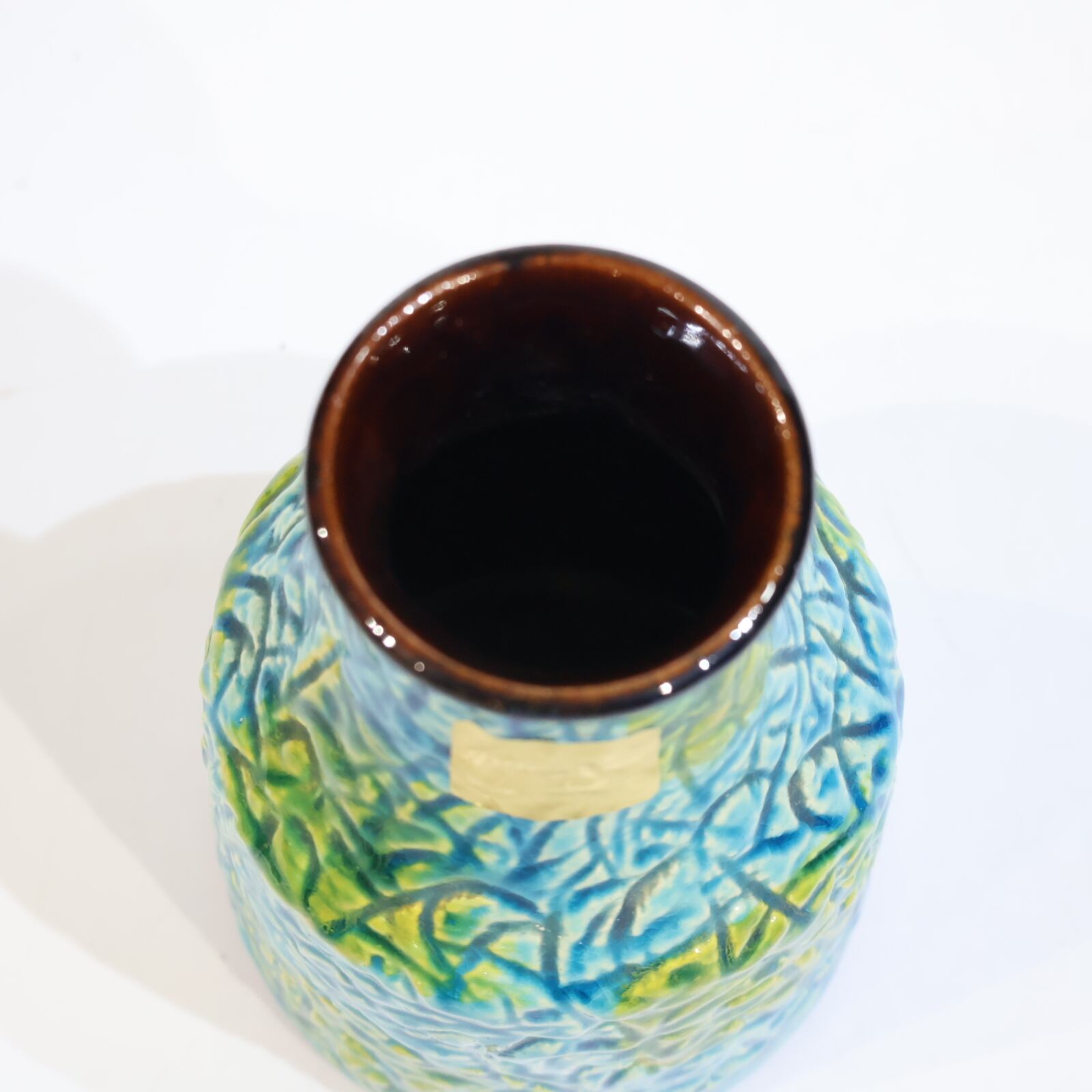 1960年代からのスタイルとしては、 当時広く流行していた色彩の釉薬(マットまたは 光沢あり)を使用し、シンプルなフォルムの上に様 式化した花の図柄の型押しや幾何学模様をあし らったものが多く、Scheurichのも のと混同されがちです。