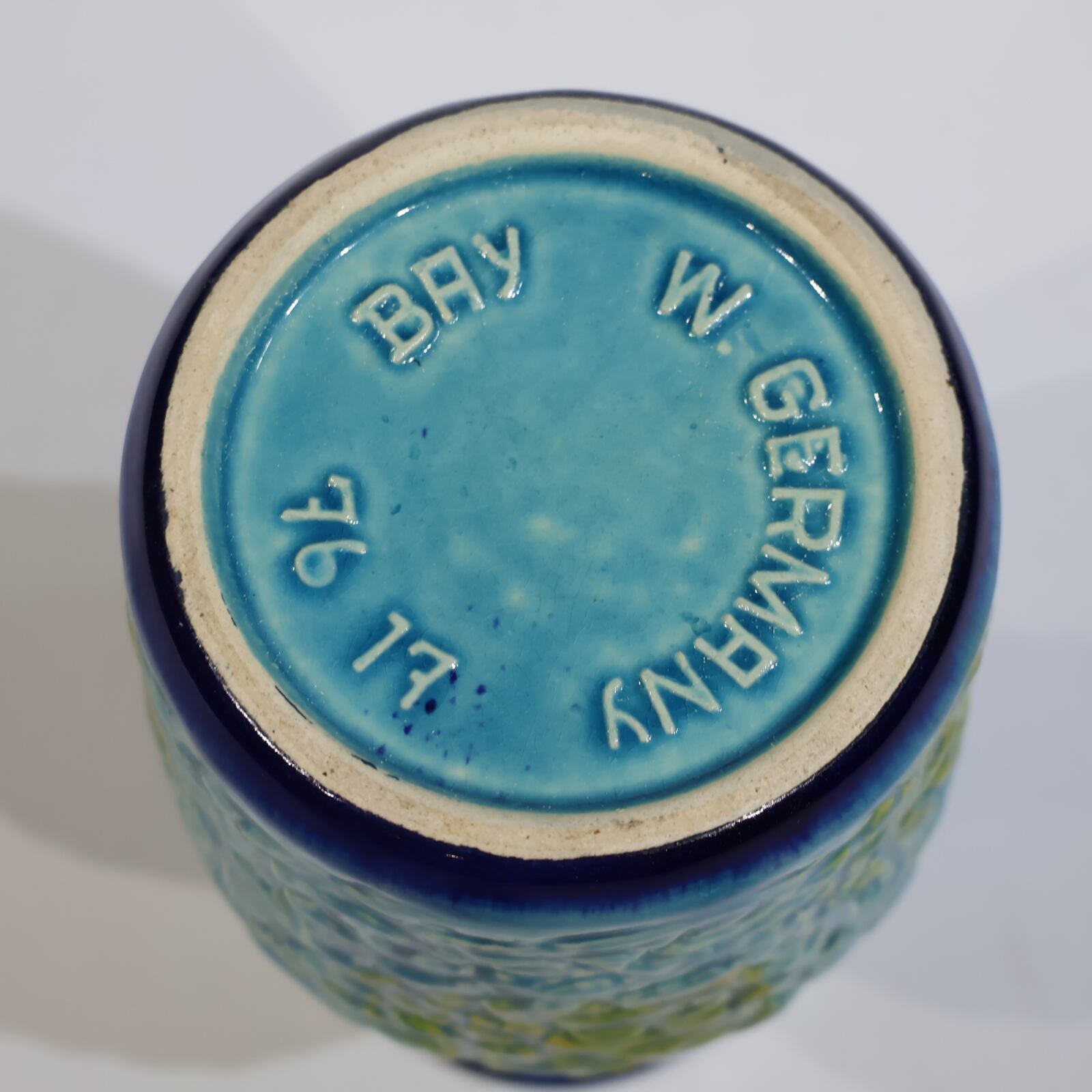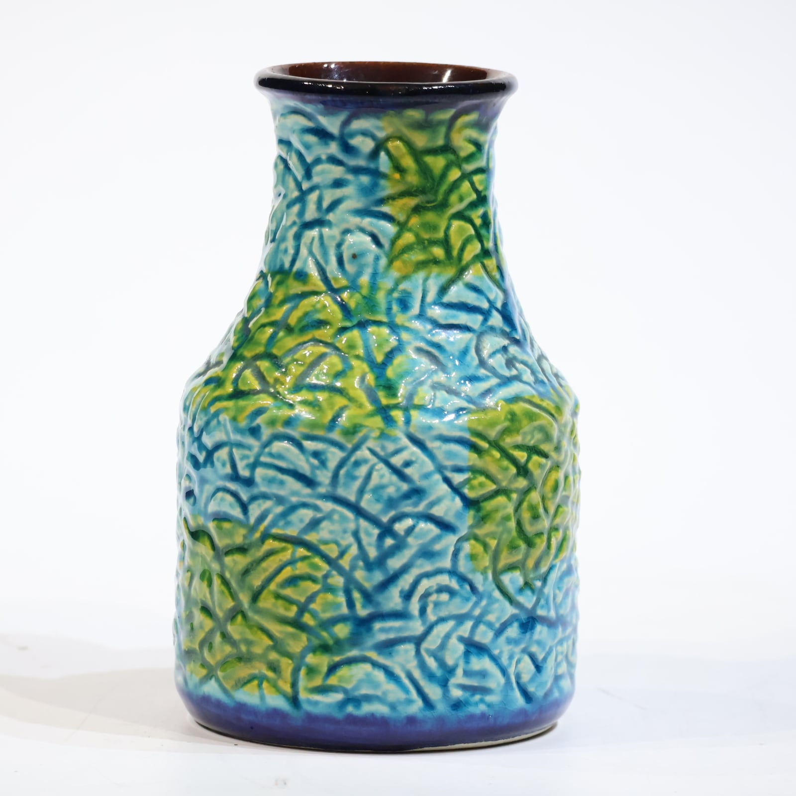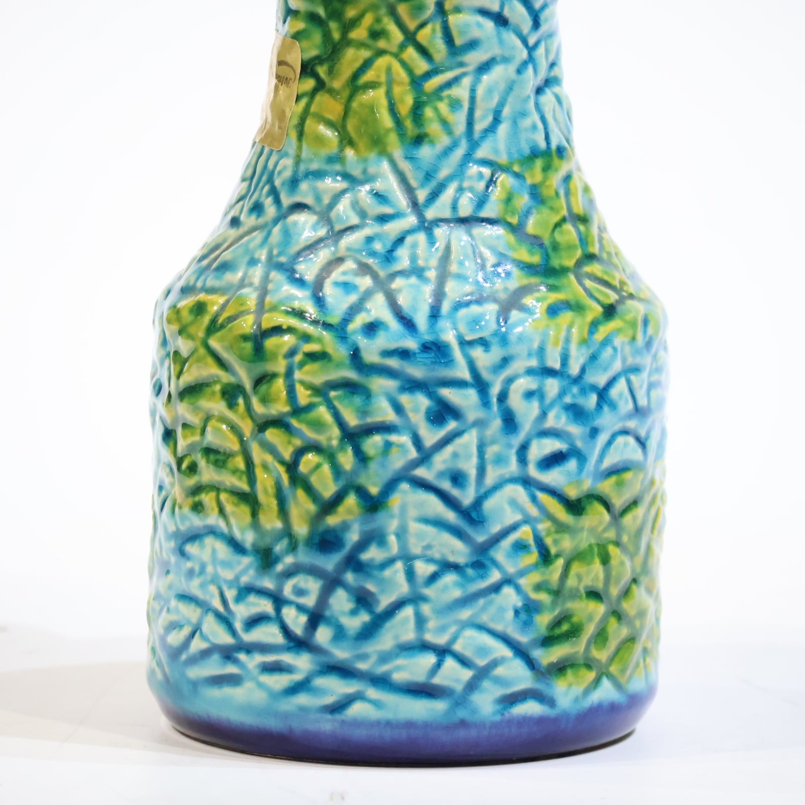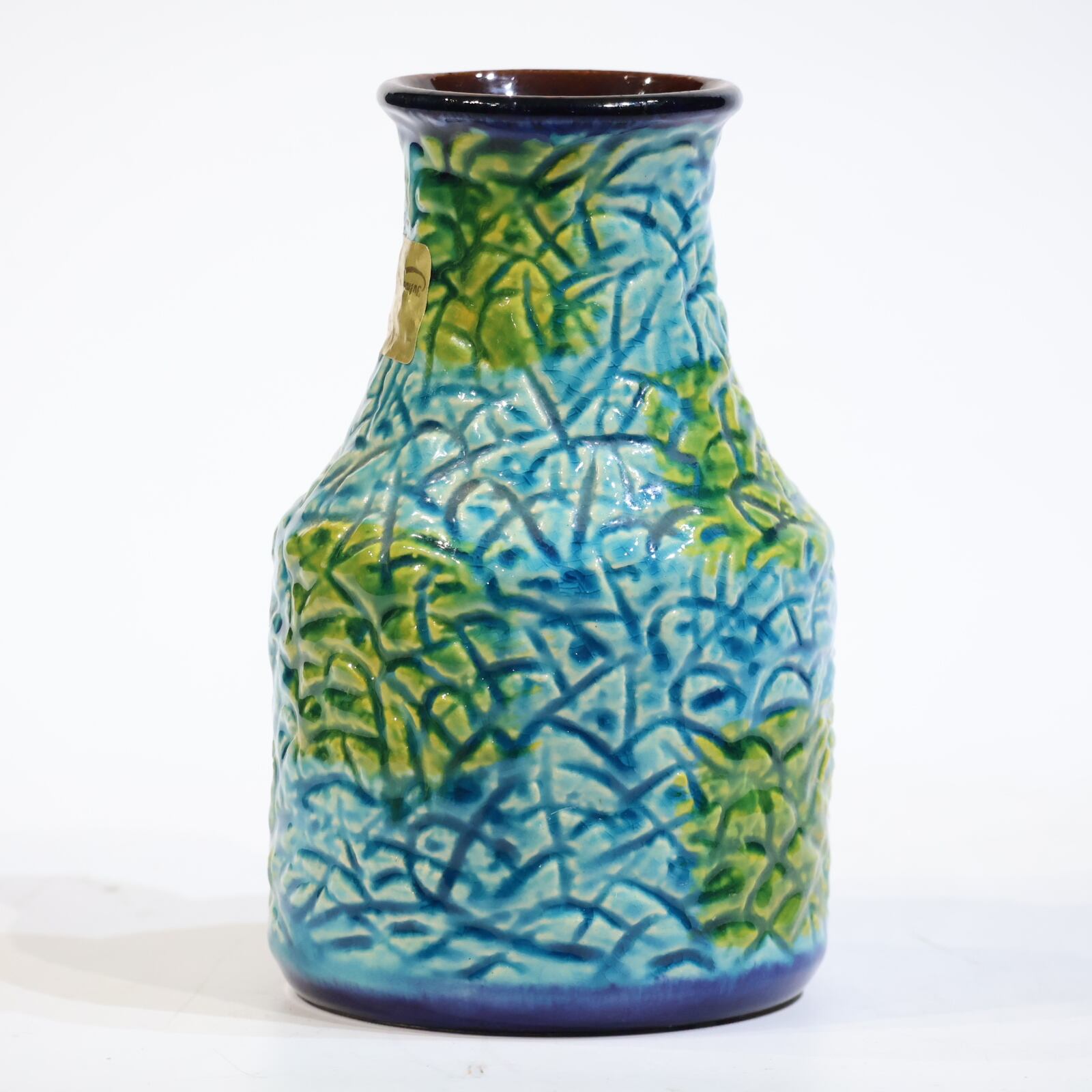 1960年代からのスタイルとしては、 当時広く流行していた色彩の釉薬(マットまたは 光沢あり)を使用し、シンプルなフォルムの上に様 式化した花の図柄の型押しや幾何学模様をあし らったものが多く、Scheurichのも のと混同されがちです。