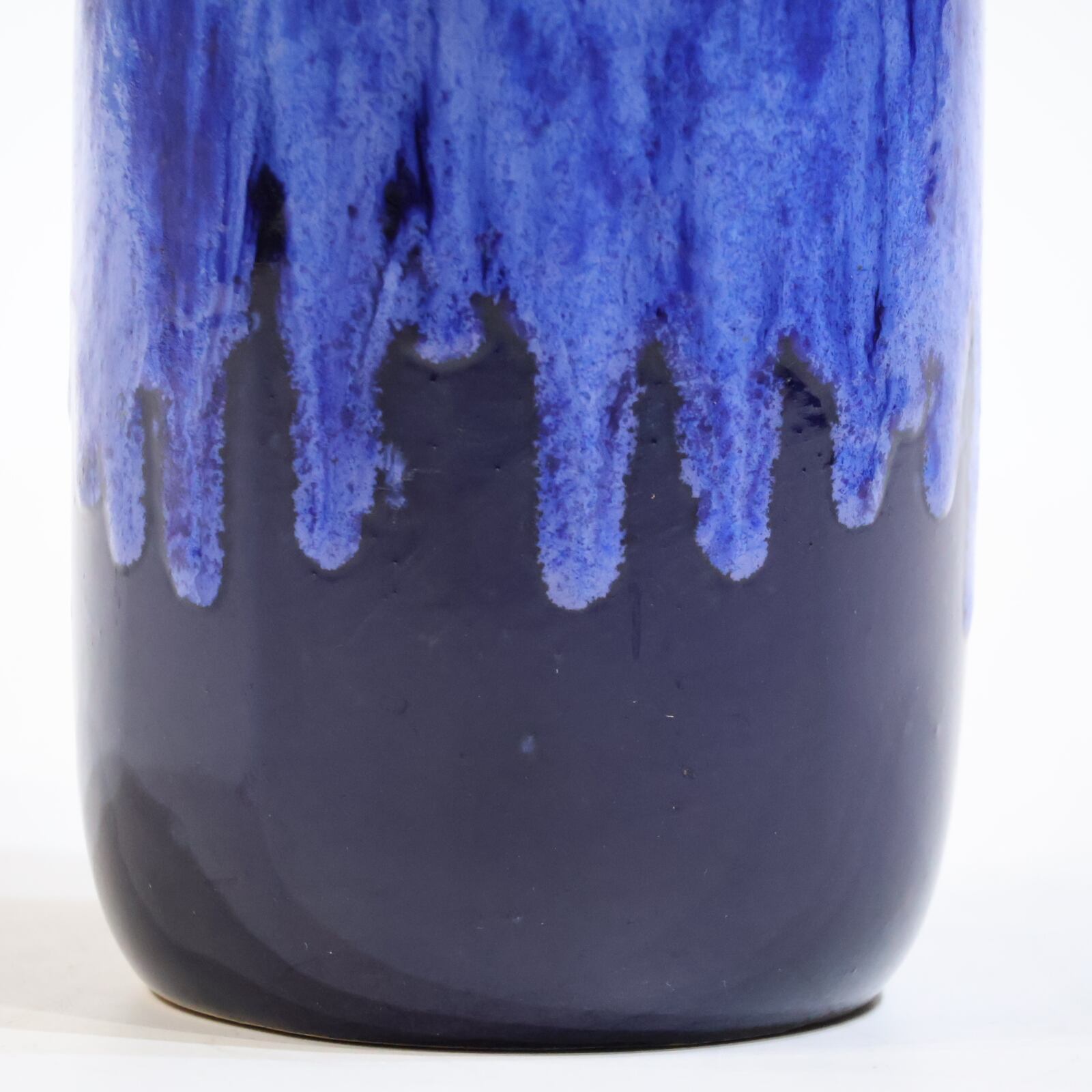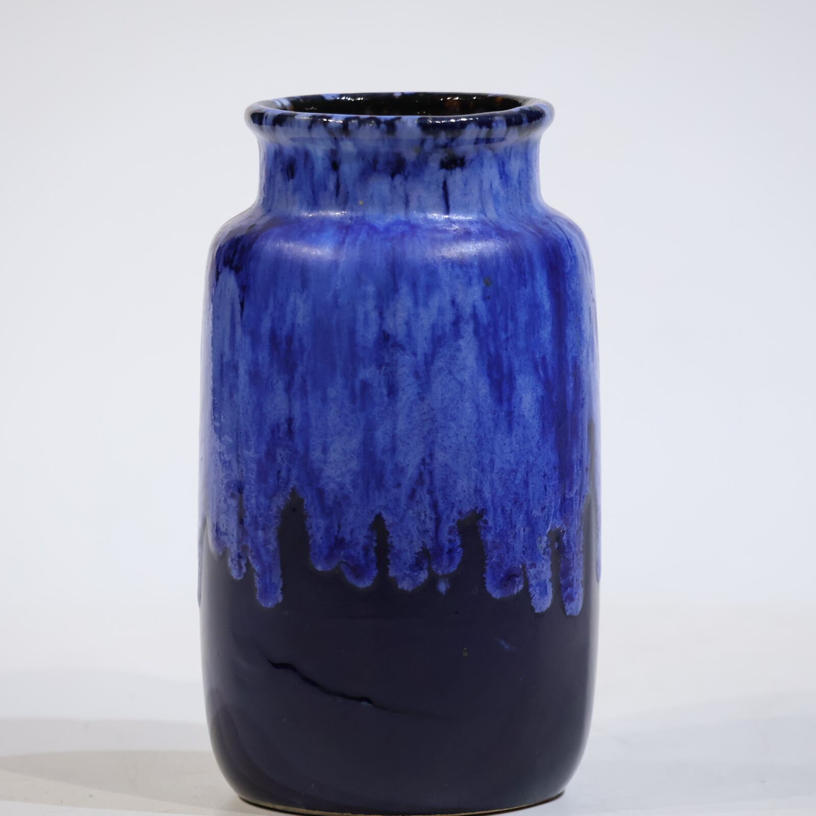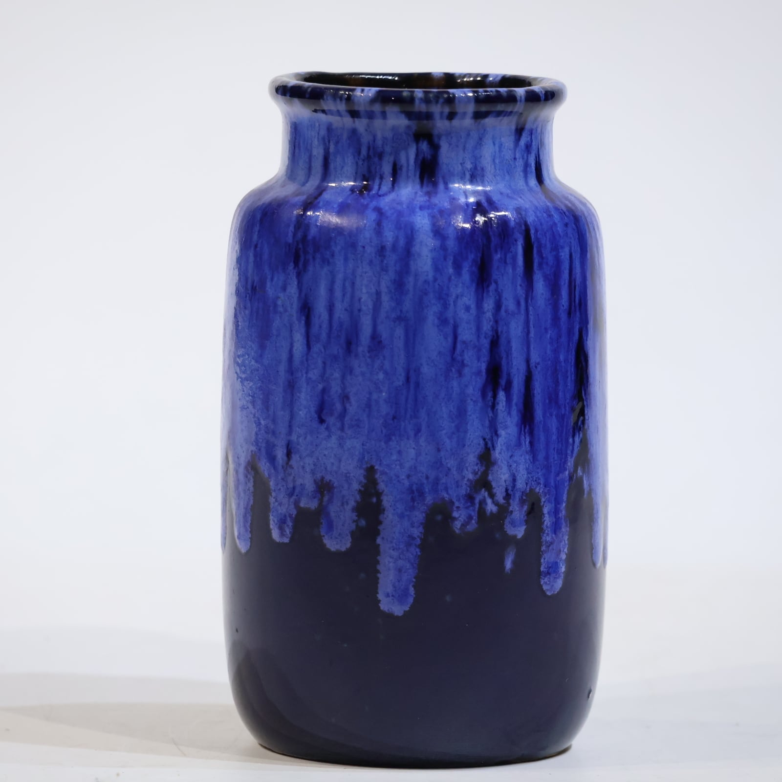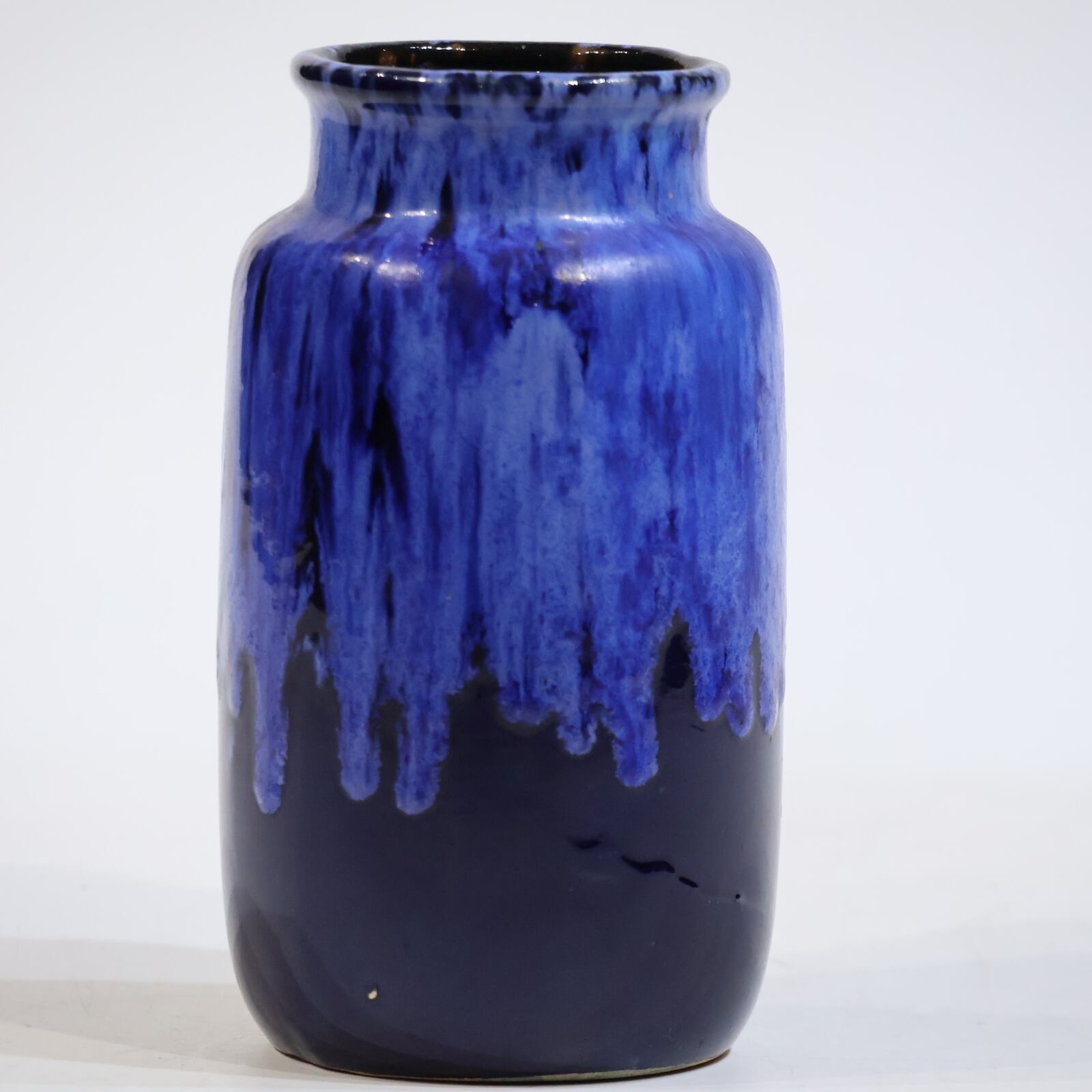 濃紺のボディに、上部から流れ落ちる青の釉が印象的な一点。