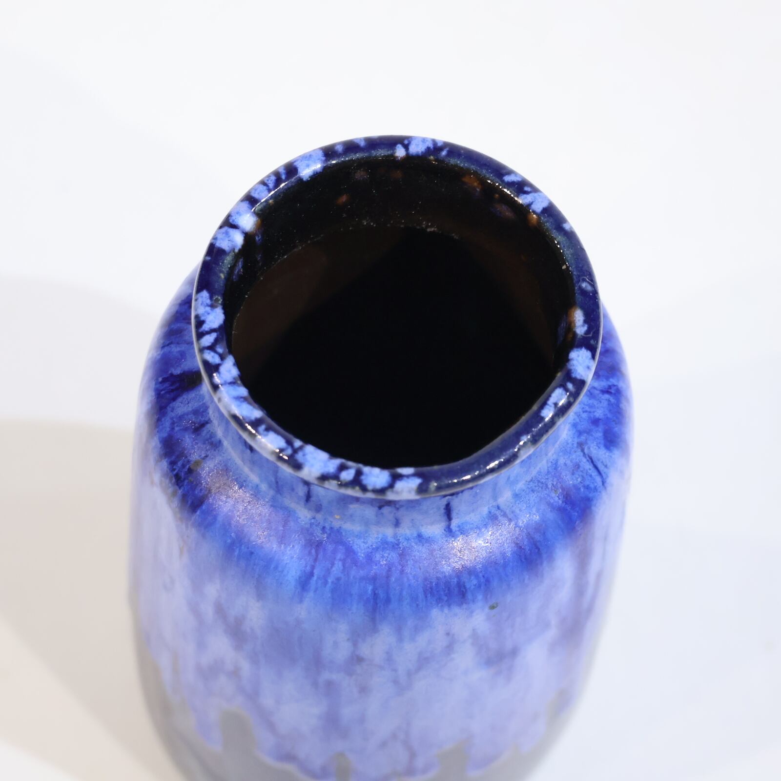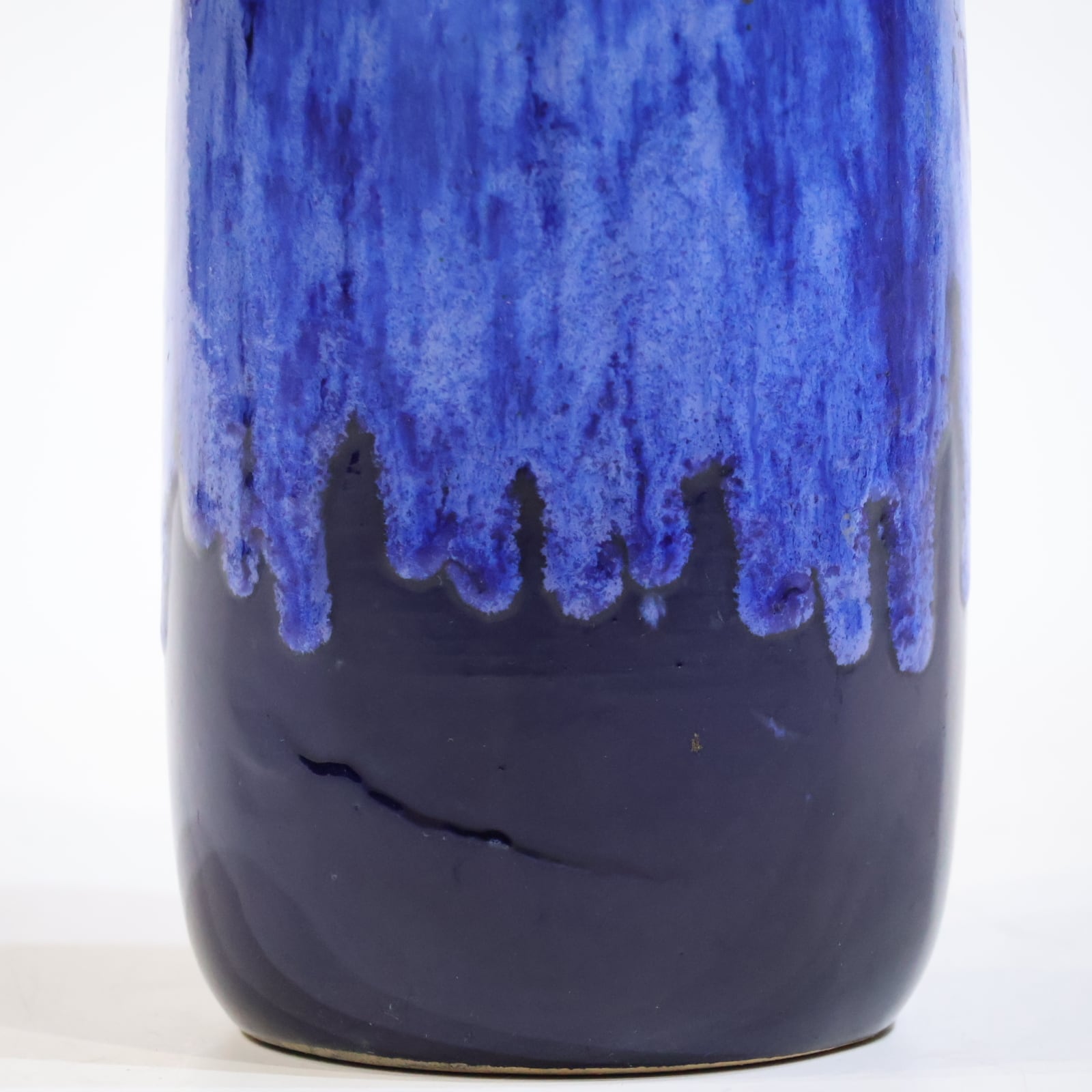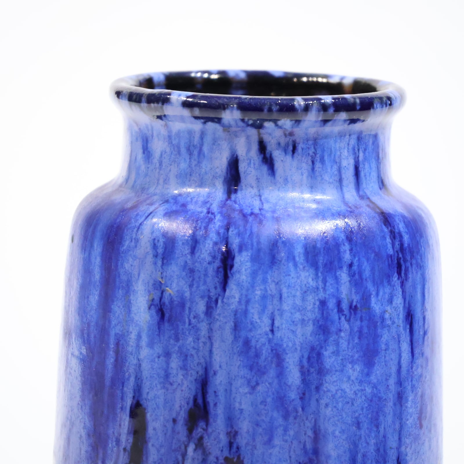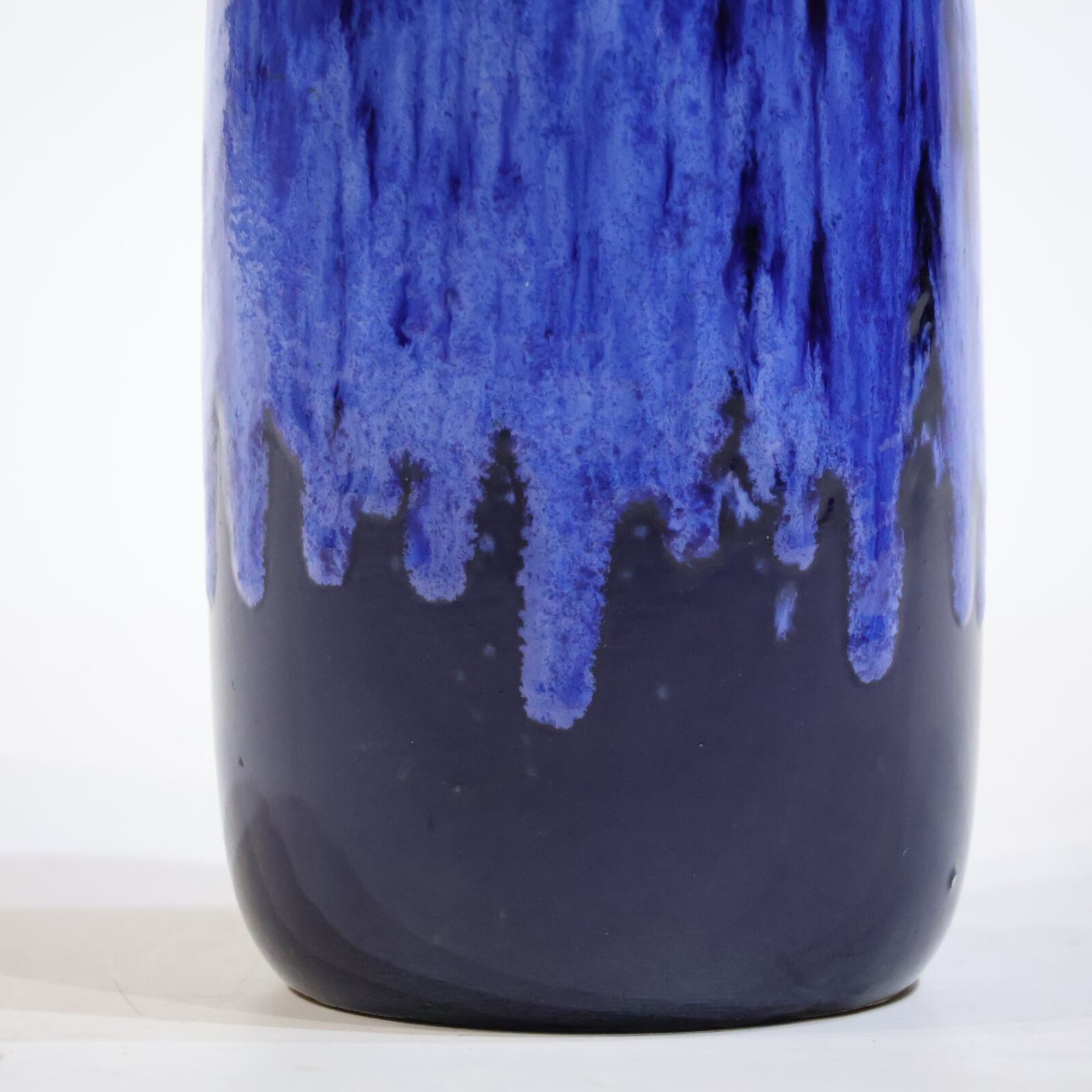 濃紺のボディに、上部から流れ落ちる青の釉が印象的な一点。
