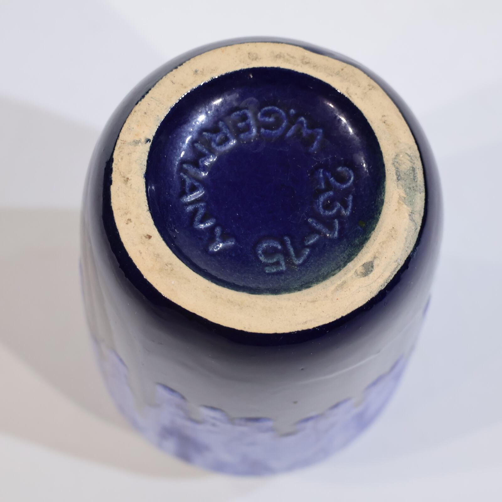 Scheurichの製品には白い粘土が使われて おり、マークは型押しされています。マークには3 ~4桁の型番、その後ハイフンに続いてセンチ メートル単位でのサイズと「W.GERMANY」の表 記があり、底の縁に沿って半円形にマークが型 押しされている場合が多い。その他のマークが 型押しされているのは後期の作品である。品質 は高水準で安定しており、多くの型が同じフォ ルムでさまざまな装飾パターンを展開しているため、同一の型で数多くの作品を揃えるコレク ターも少なくないです。