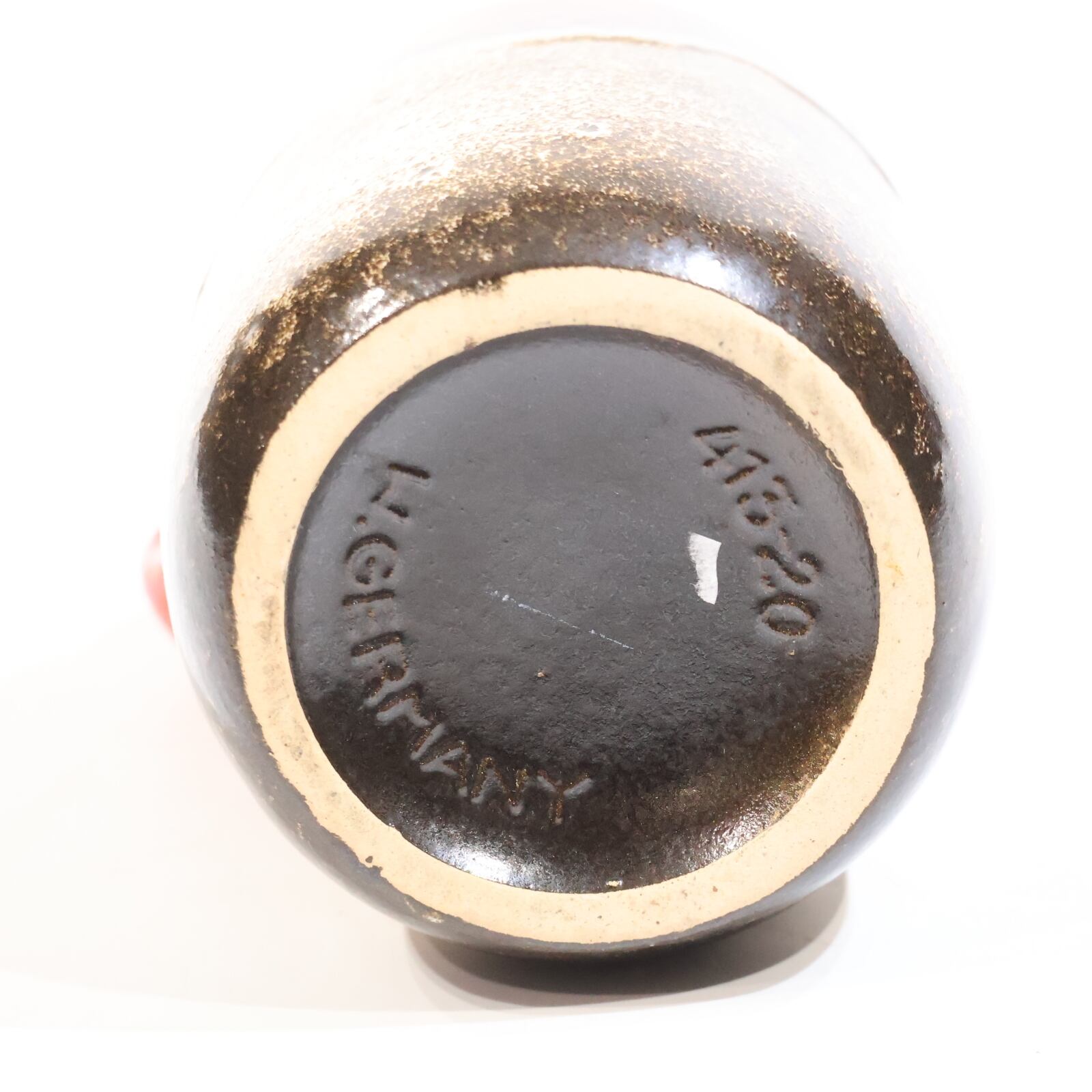 当時のドイツの窯業の黄金期を支えた最もメジャーなレーベルの一つです。(現在は園芸用品の生産にシフトチェンジ)。Scheurich(シューリッヒ)は、元々1927年 にAlois Scheurich(アロイス・シューリッヒ)に よって創 設され 、手頃な価格の陶器やガラス製の装飾品 、家 庭用品などを幅広販売していた。共同運営者が参画してからはScheurich&Greulich( シューリッヒ &グロイリッヒ 、Greulichは独語で“凄まじい”の意)という社名 で知られ、この頃の作品には「S&G」のラベルが 貼られたものが多く見られます。