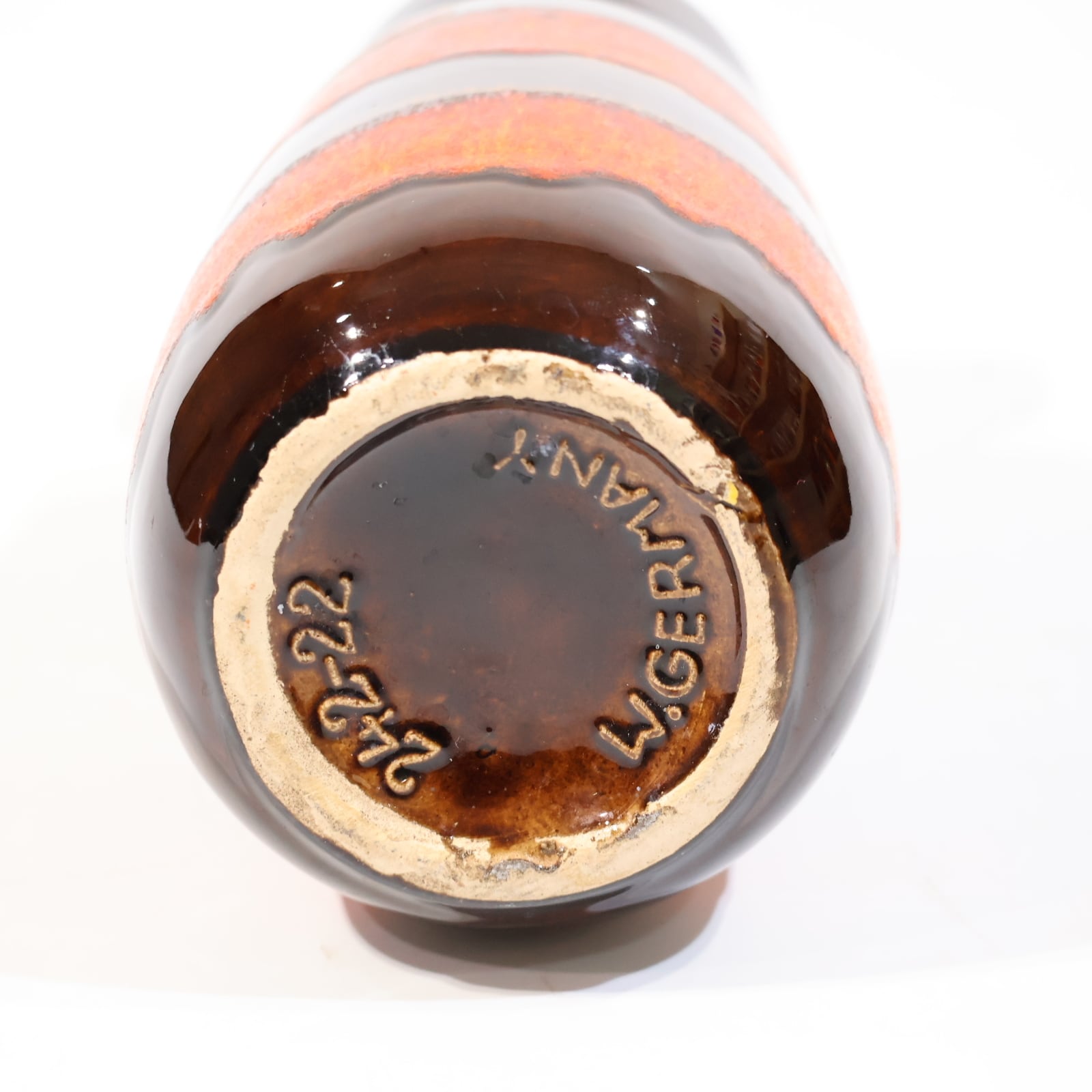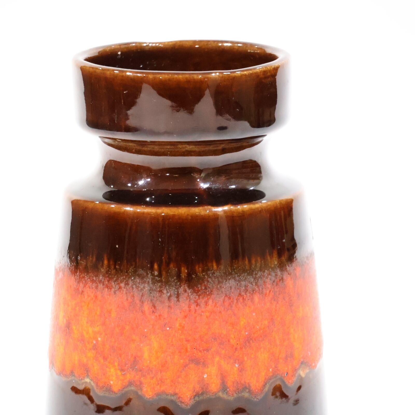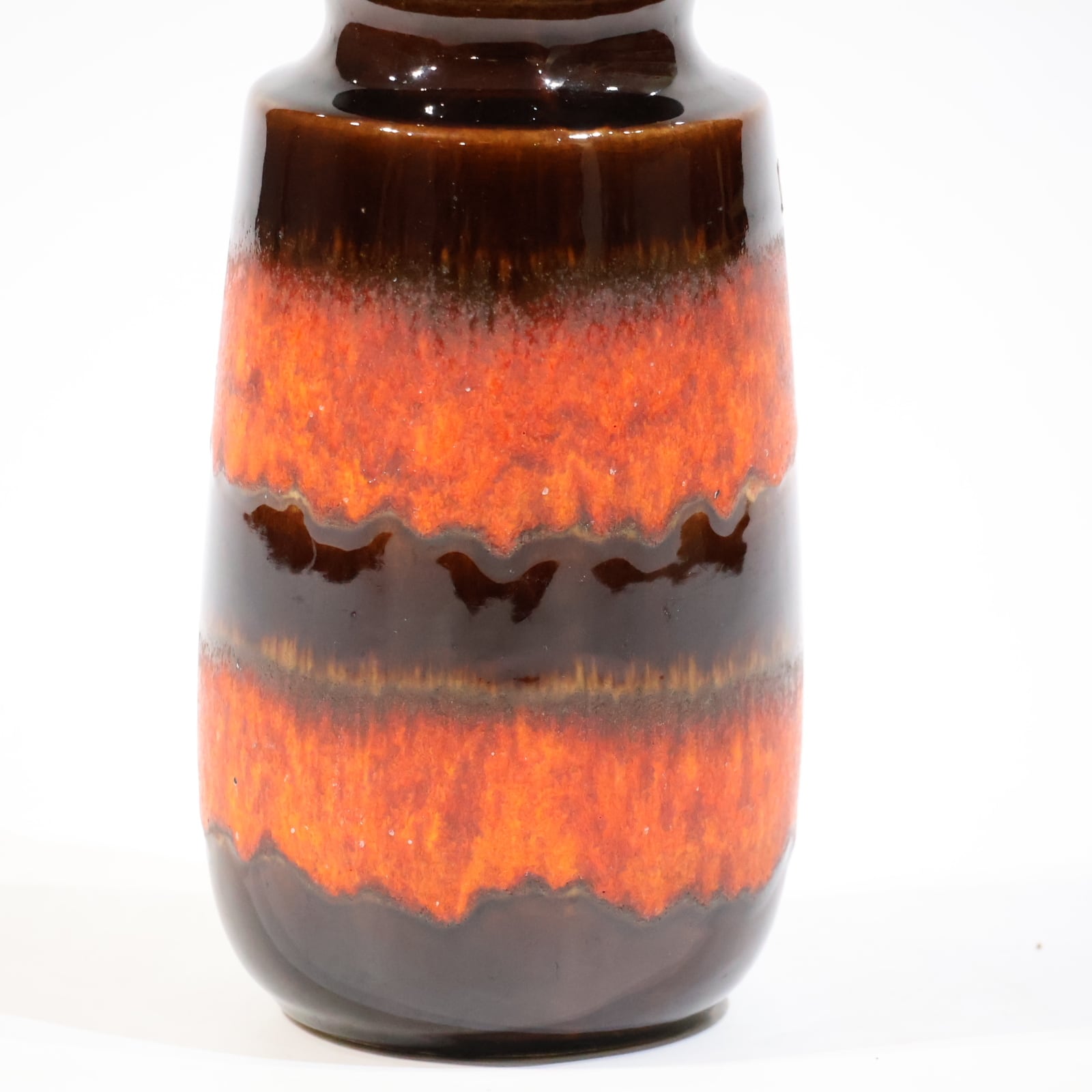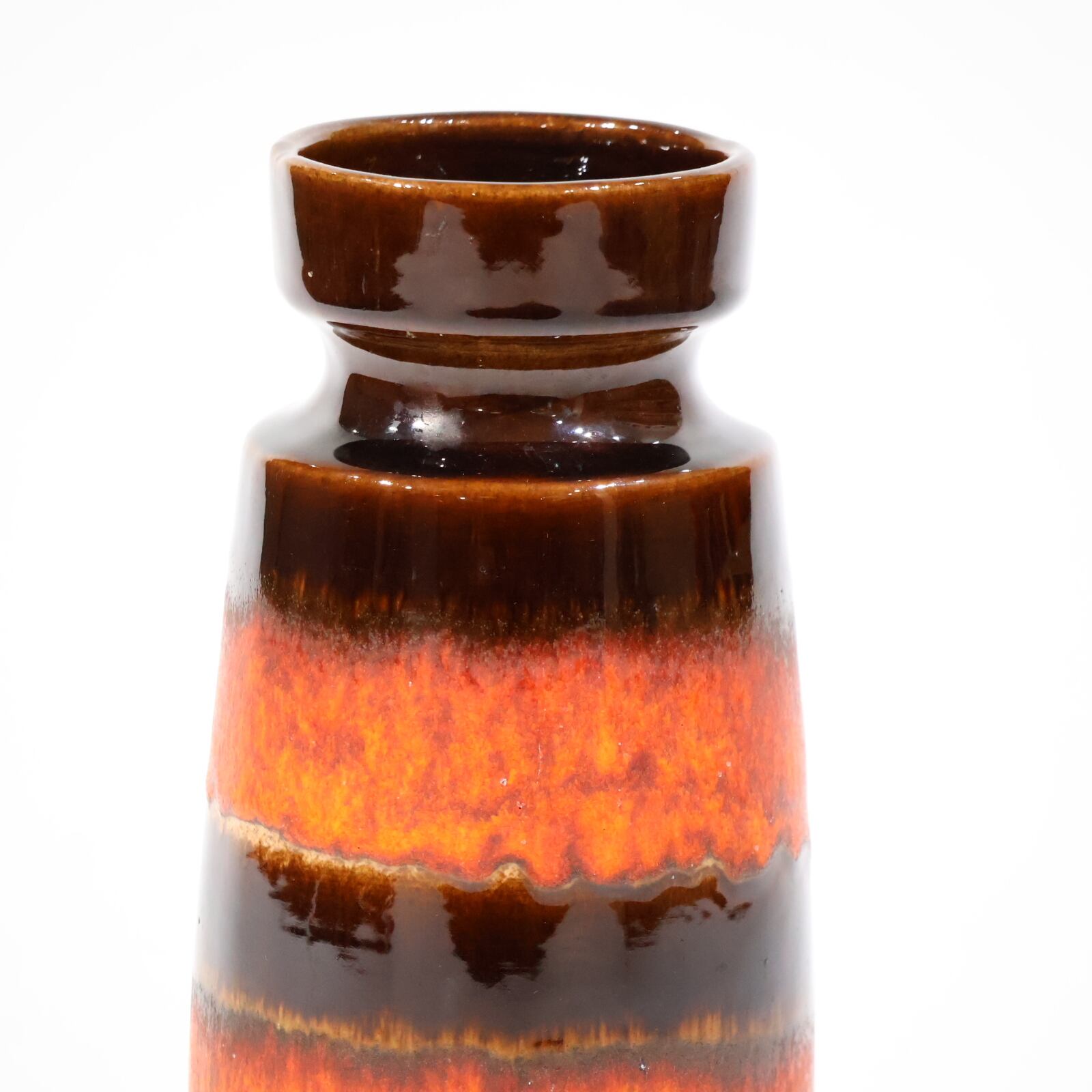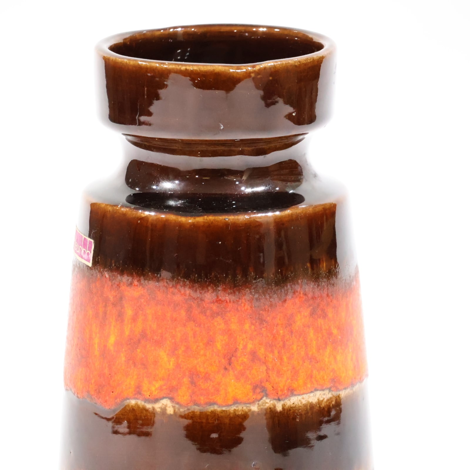 同社は急速に成長し、1950~80年代には陶 器製造の分野でドイツ最大のメーカーとなり、今日も確固たる地位を維持しています。形状に加えて釉薬でも、当時は最も幅広い品揃えを誇った他、輸出量も最大だったため、現在でも同社の製品はよく見られます。特に円筒形を基調にし たシンプルな形状で、型押し模様のある床置き 花瓶が代表的。色彩については当時主流だっ た赤やオレンジから、クリーム、ベージュ、茶色 などが多くを占めています。