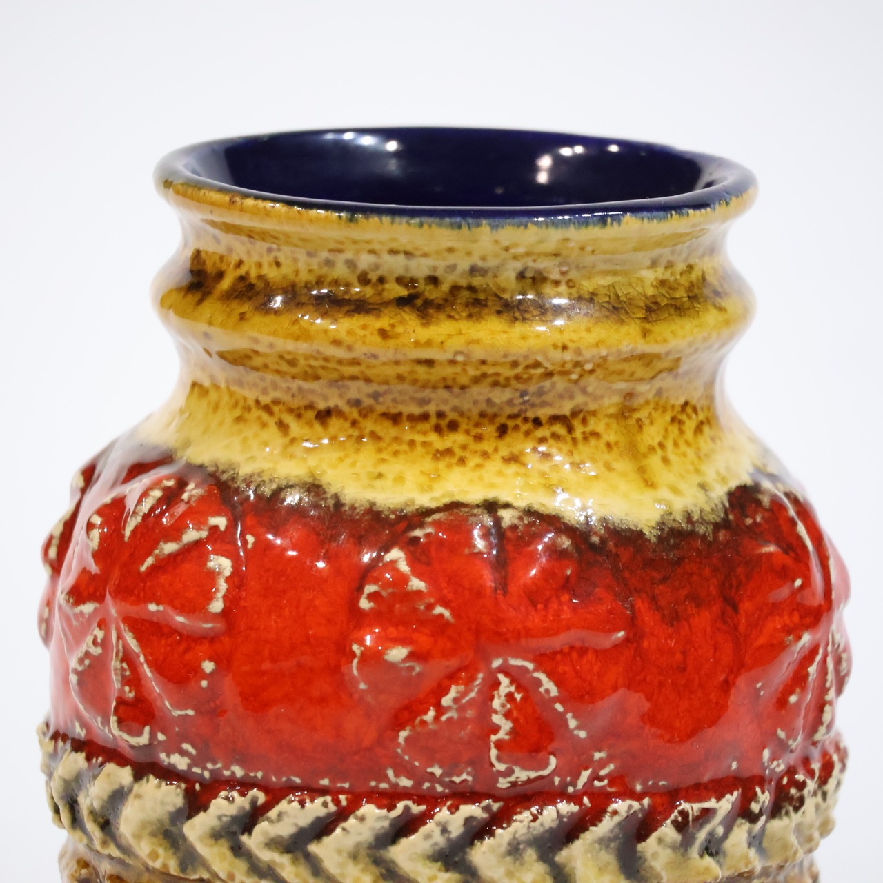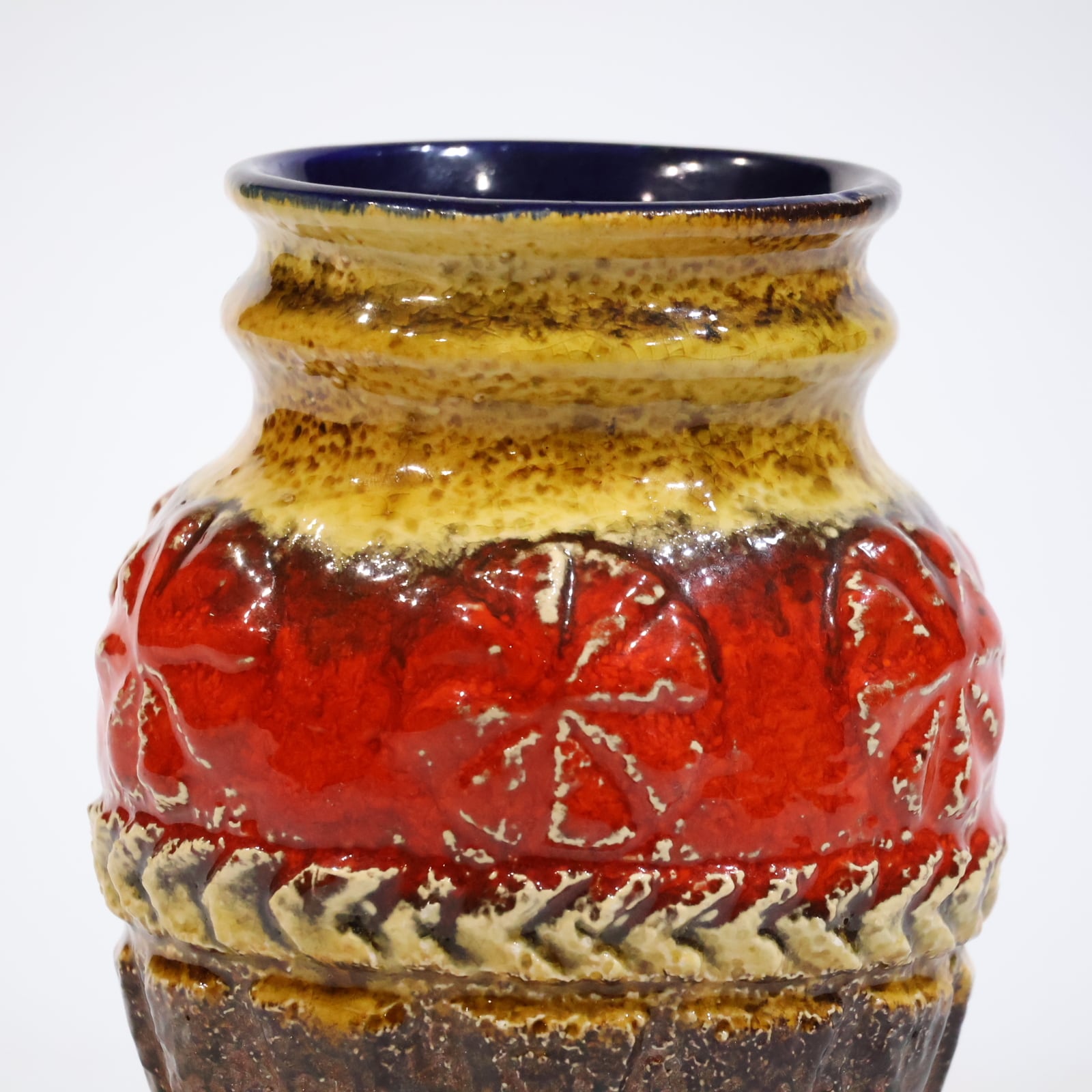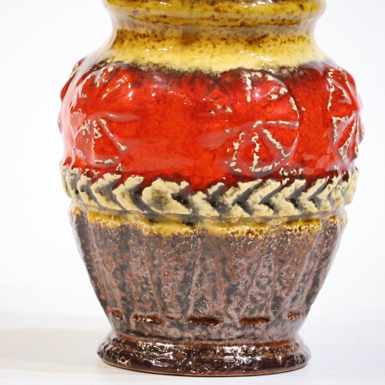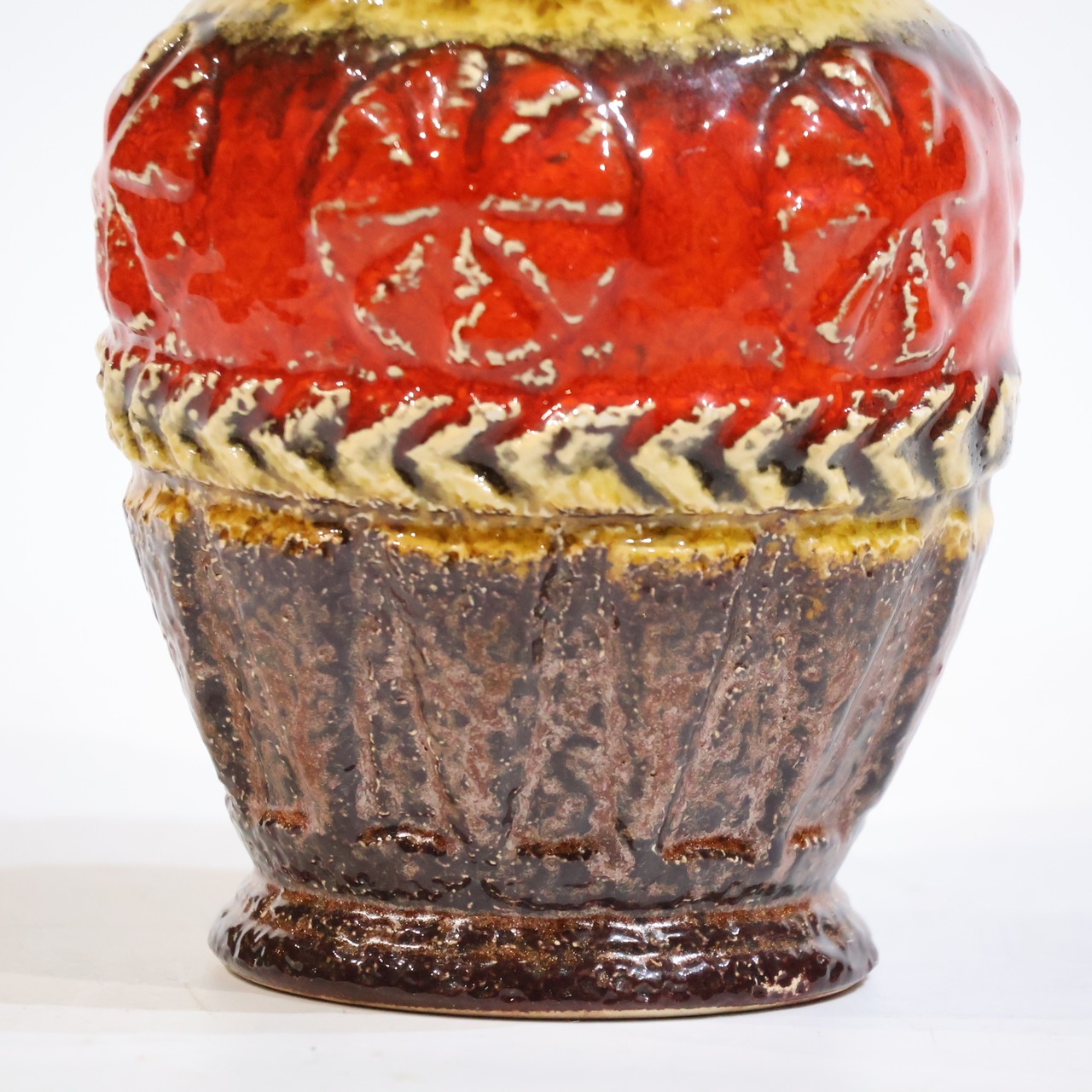 1960年代からのスタイルとしては、 当時広く流行していた色彩の釉薬(マットまたは 光沢あり)を使用し、シンプルなフォルムの上に様 式化した花の図柄の型押しや幾何学模様をあし らったものが多く、Scheurichのも のと混同されがちです。